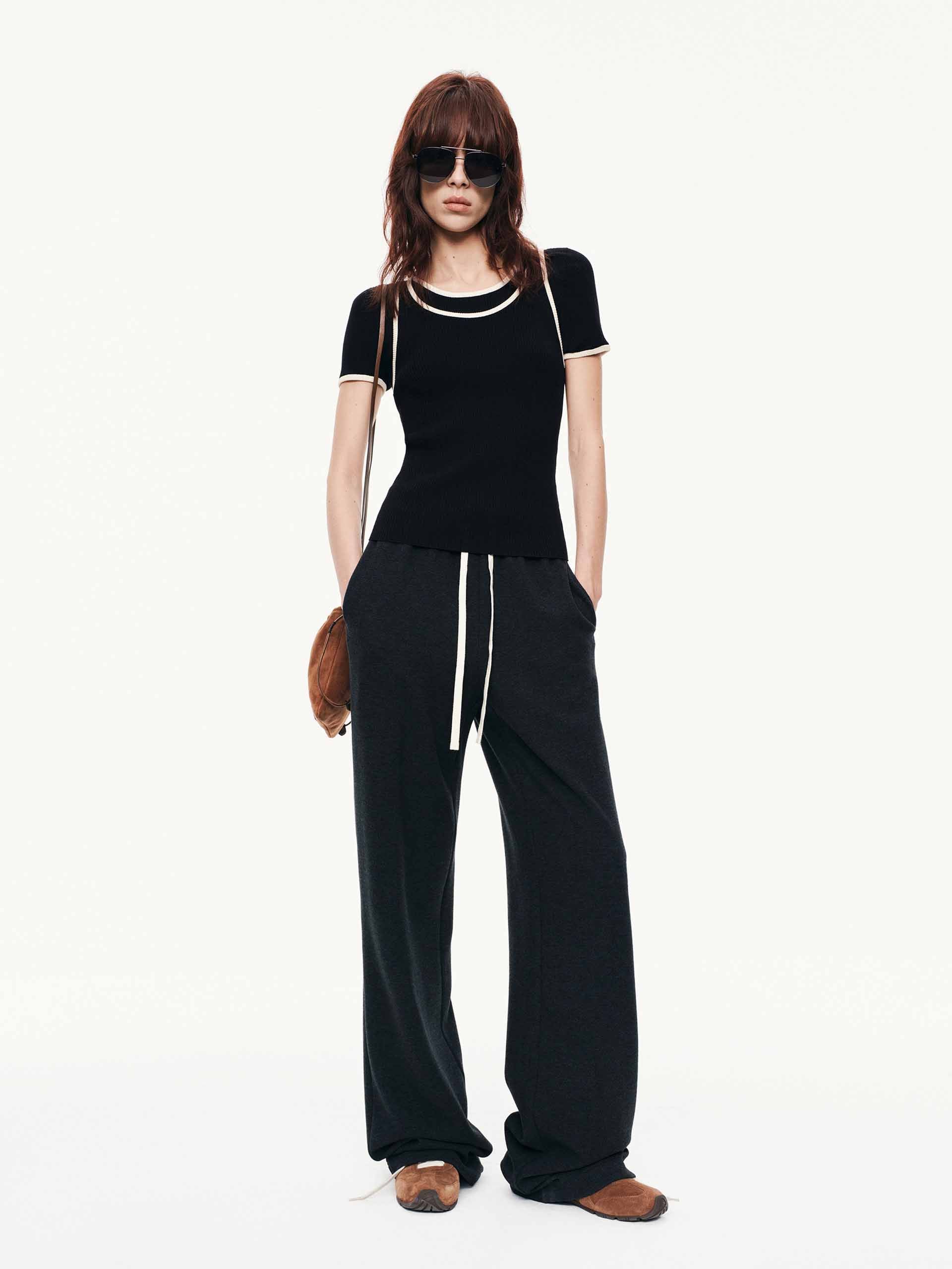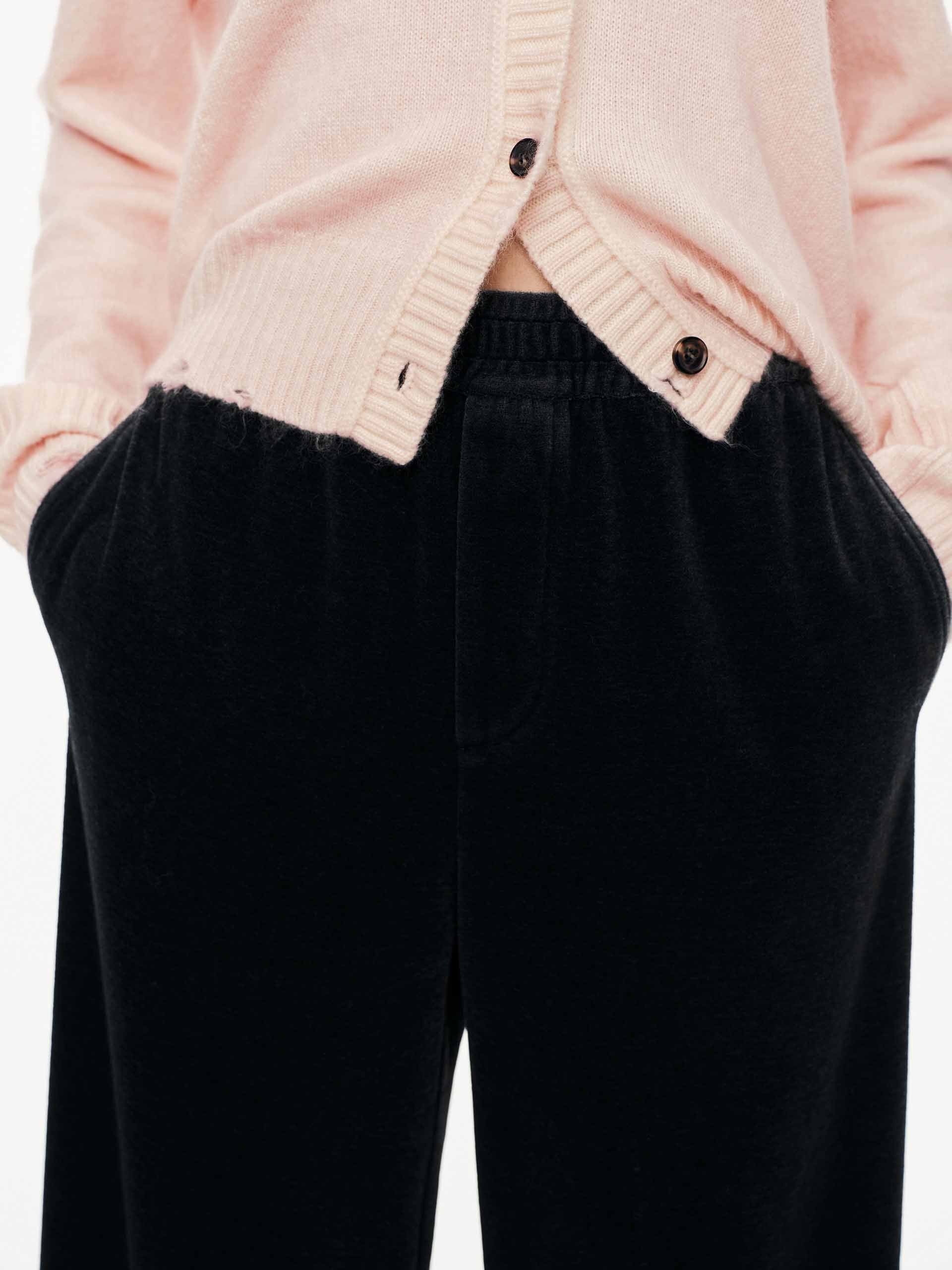 Designed for all-day ease without sacrificing sophistication, these trousers feature a regular fit that flatters every body type. The elasticated waistband with inner drawstring ensures a customizable, secure fit while maintaining a clean silhouette. Practical yet polished, the side pockets add functionality, keeping essentials within reach.