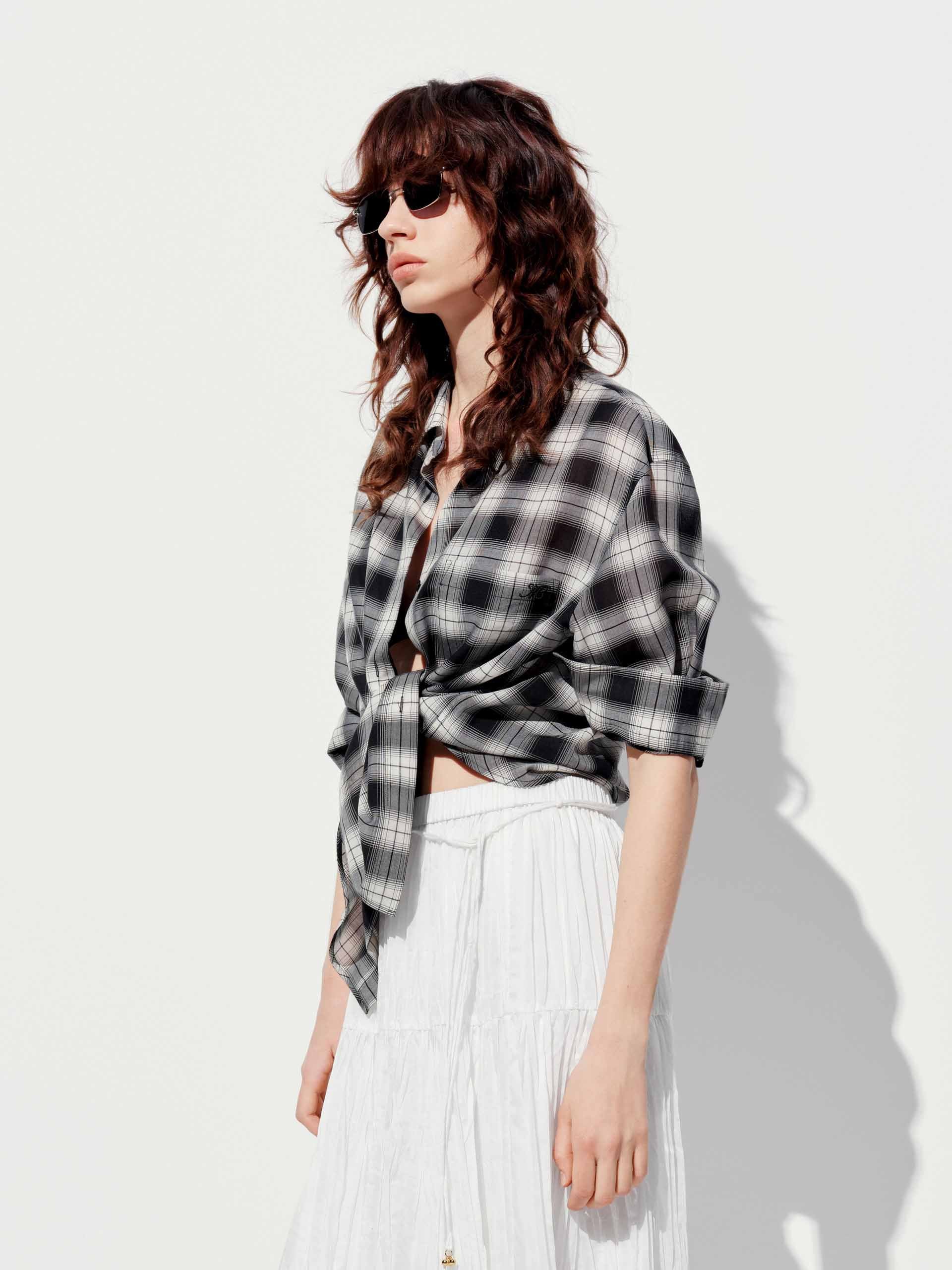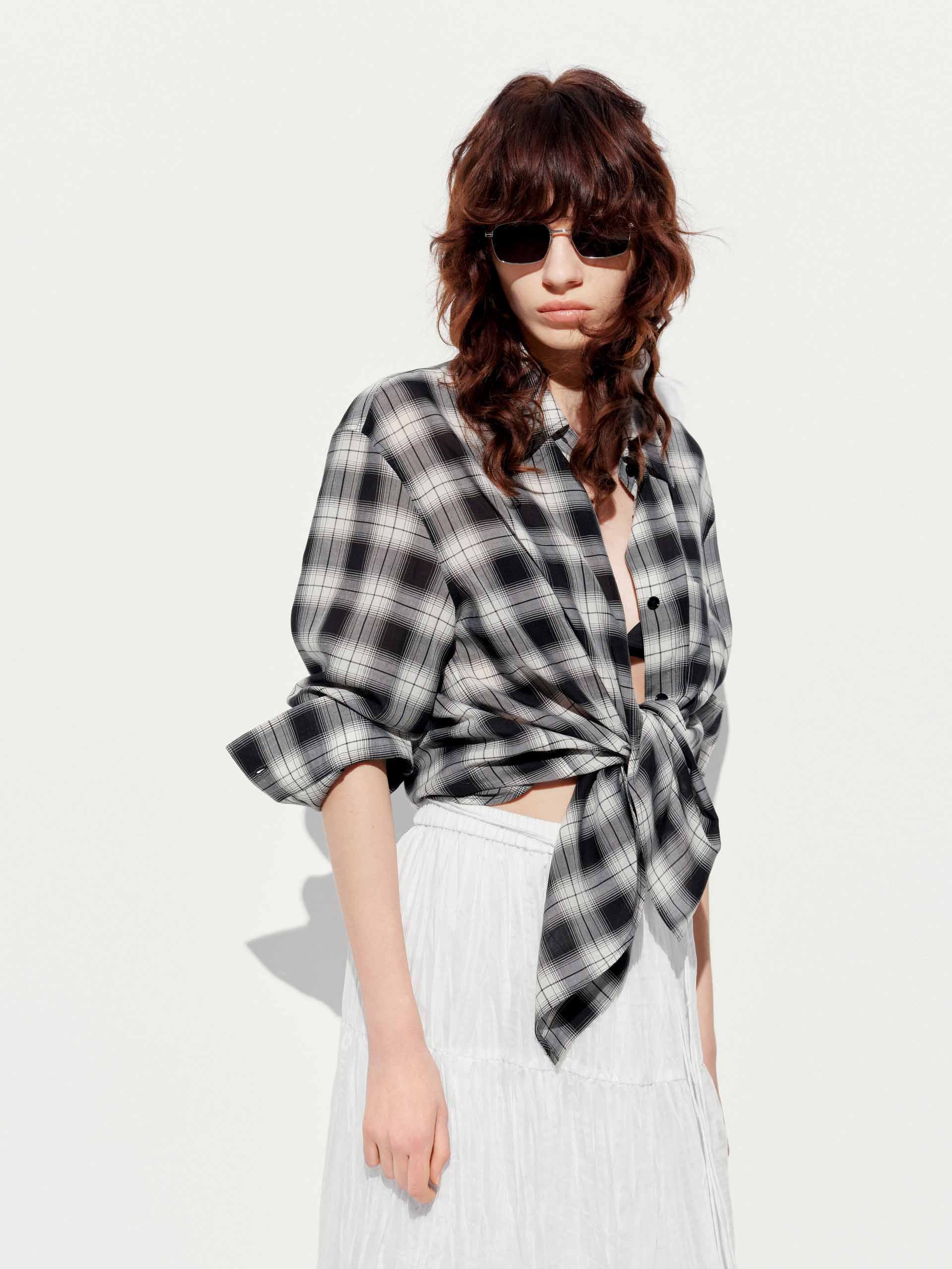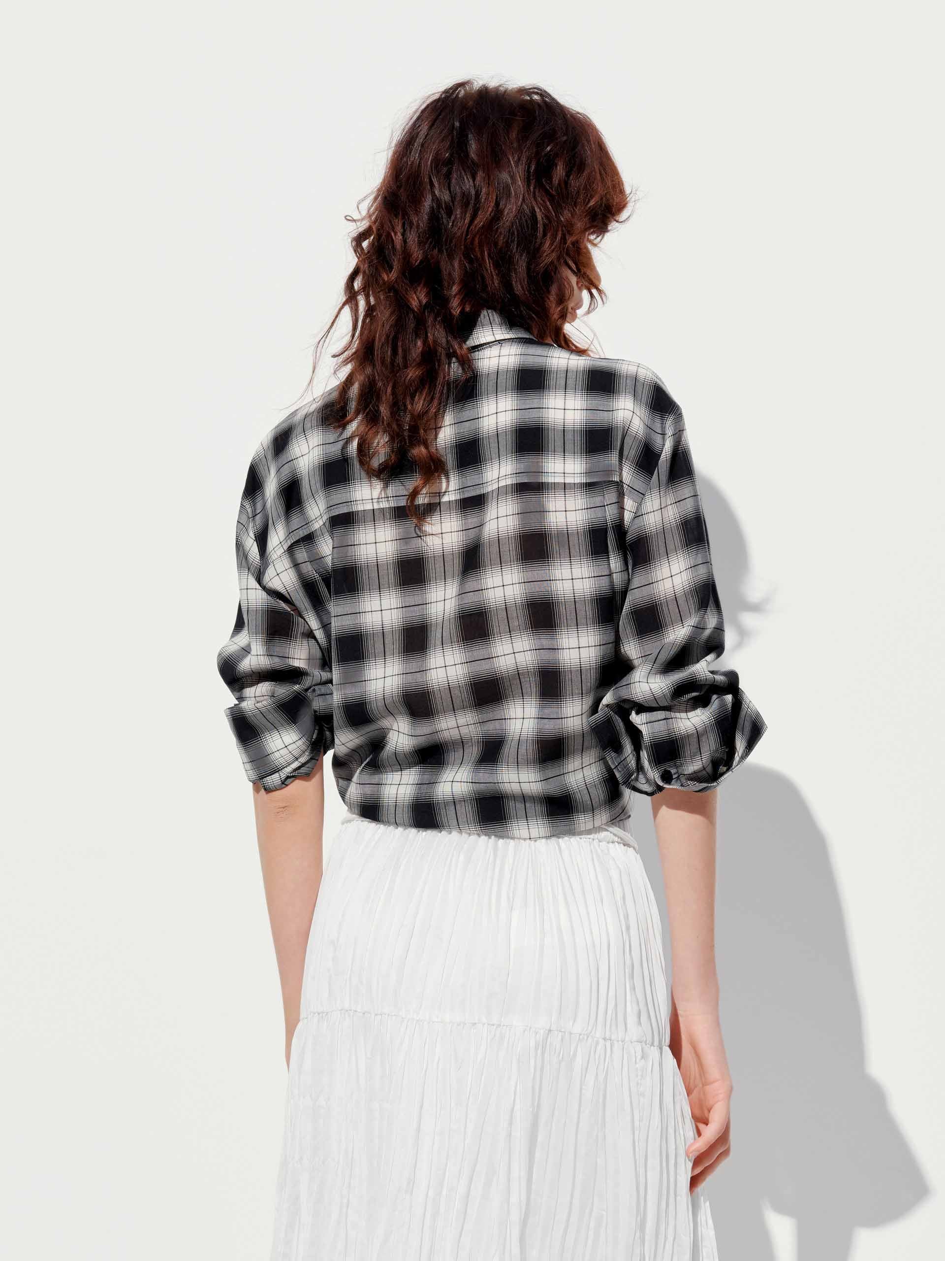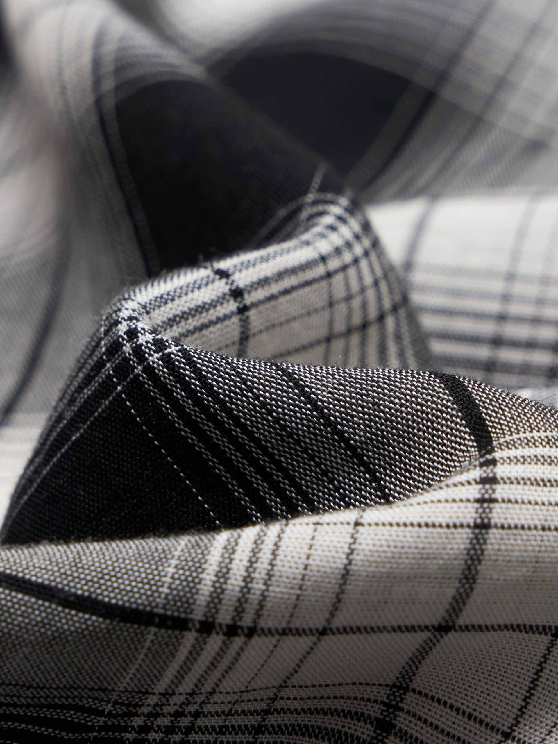 Elevate your wardrobe with this iconic black and white checked shirt, blending vintage charm with contemporary versatility. The regular fit ensures effortless comfort, while the long sleeves and full button closure offer polished sophistication for any occasion. Designed with a subtle curved hem, perfect for tucking in or wearing loose.