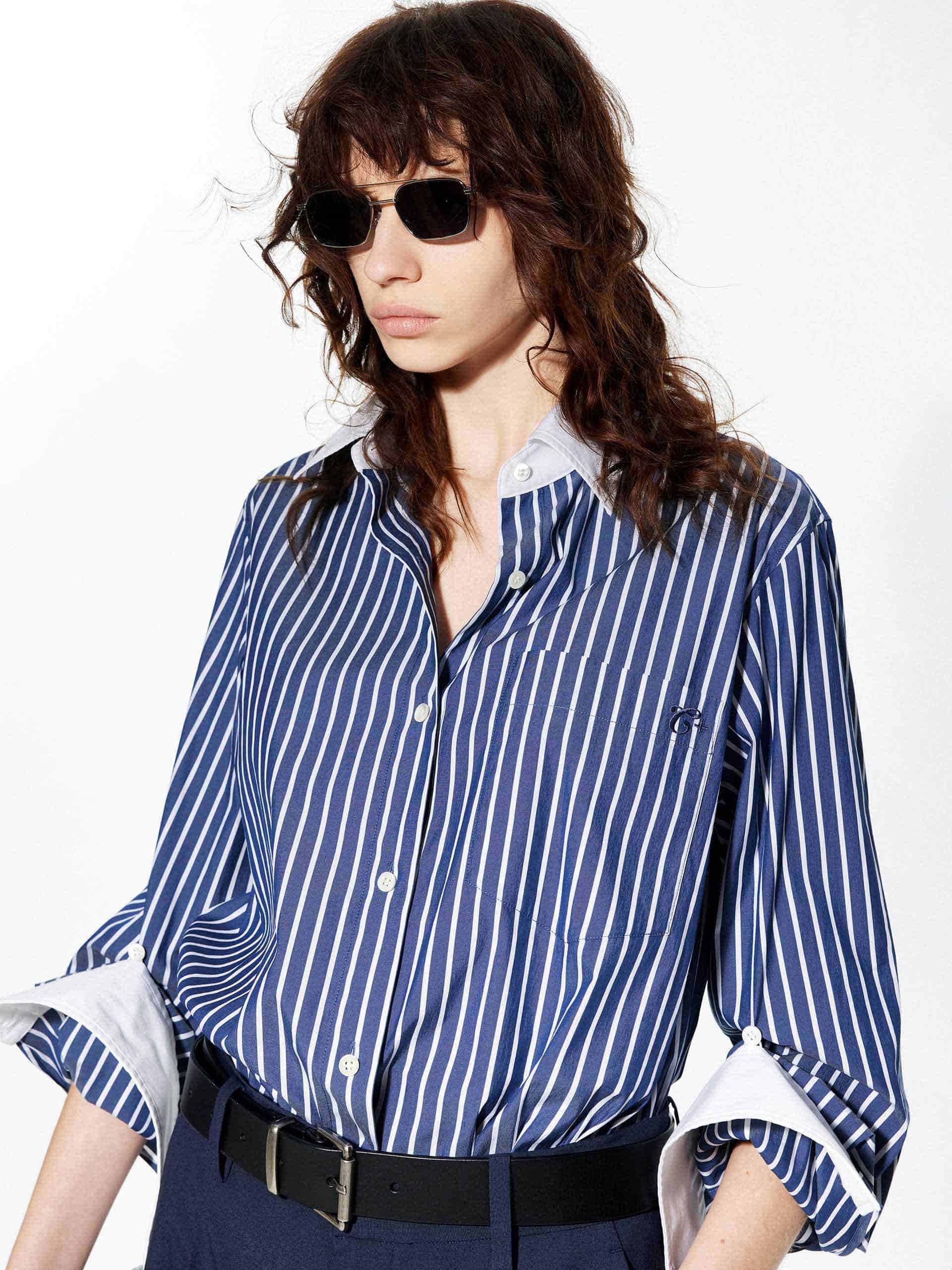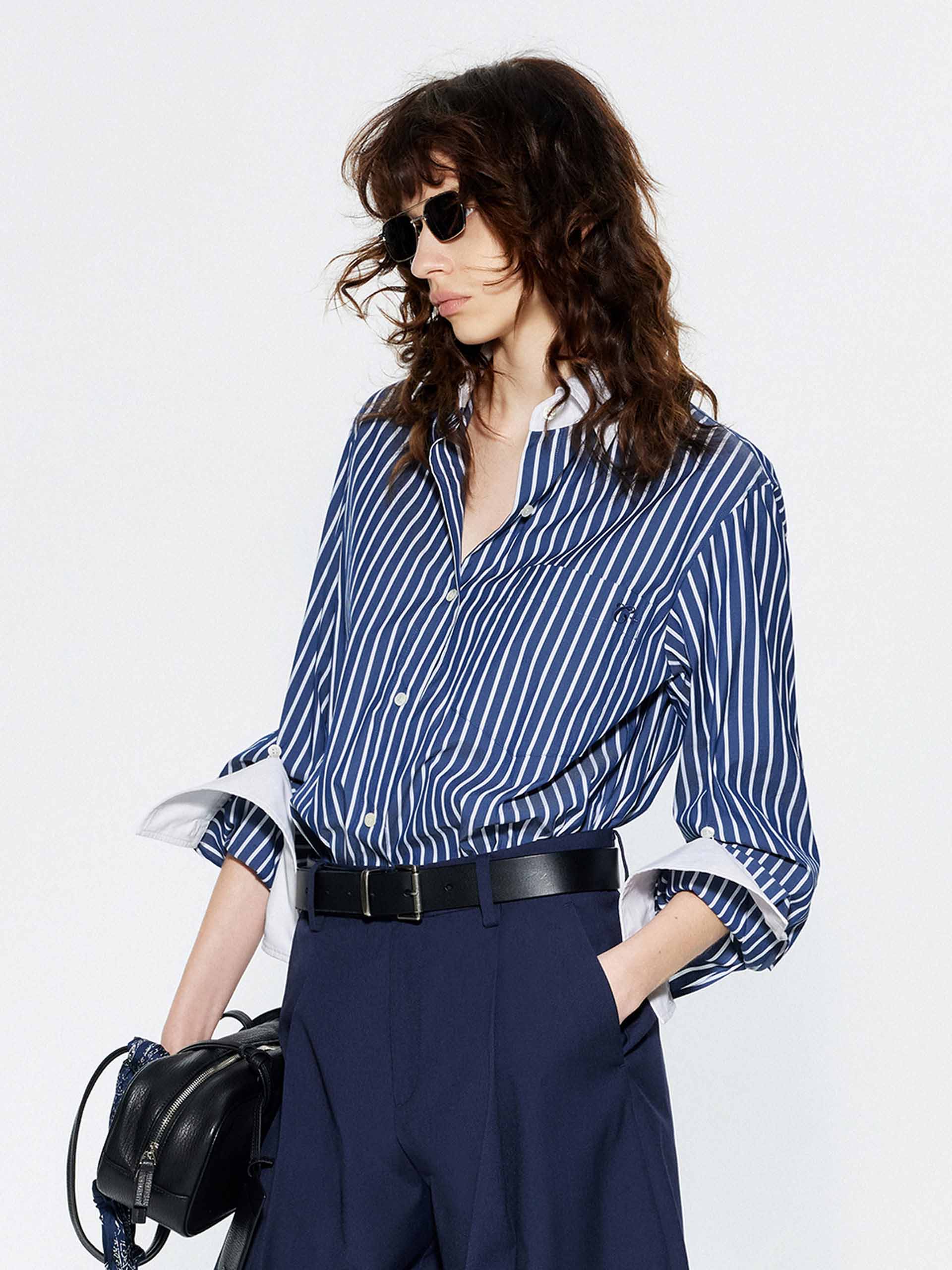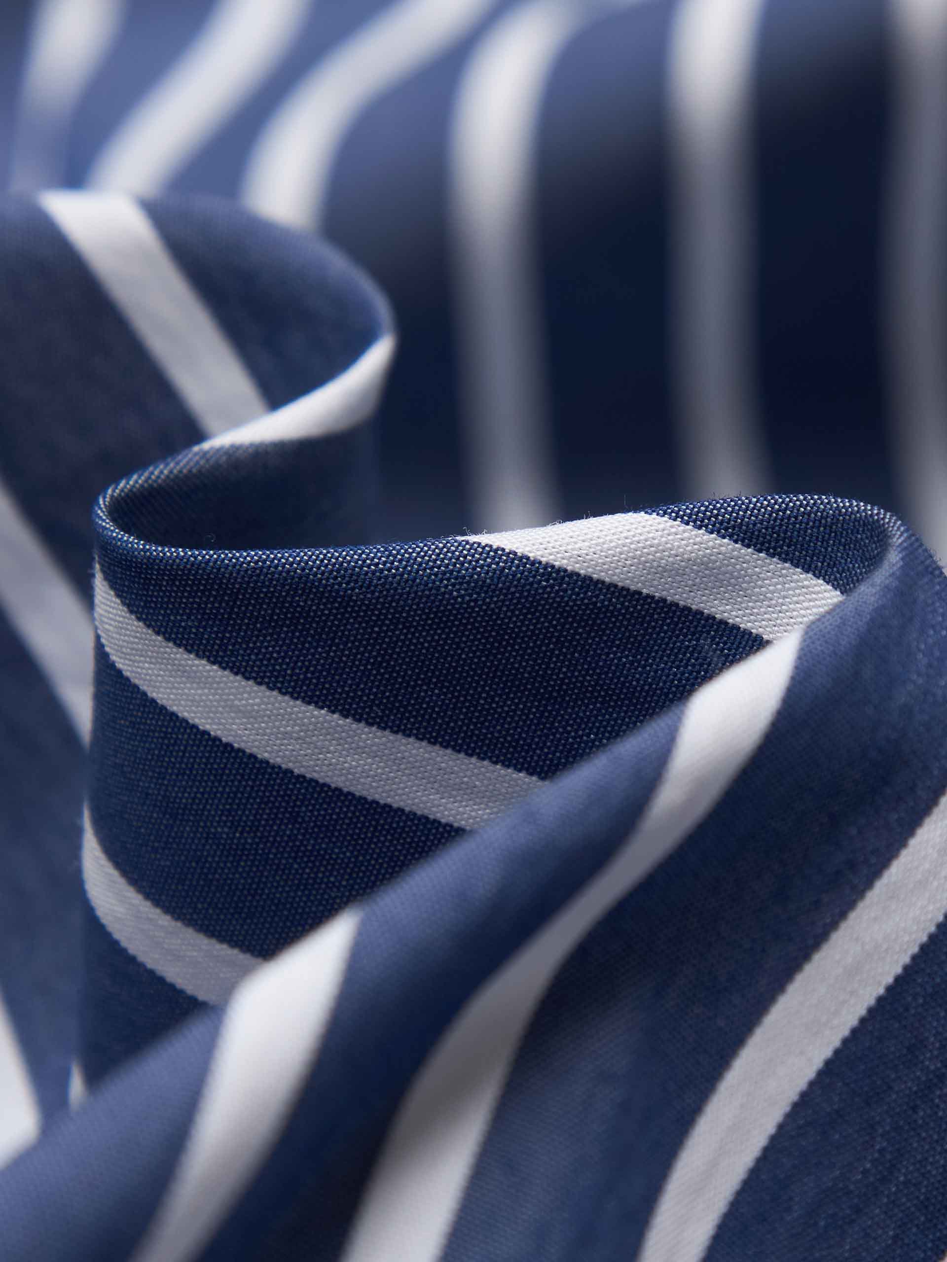 Expertly crafted from a cozy cotton blend, this shirt boasts a sleek pinstripe pattern and eye-catching contrast collar and cuffs details. With a convenient button closure, pair it with our casual shorts for a stylish, polished look.