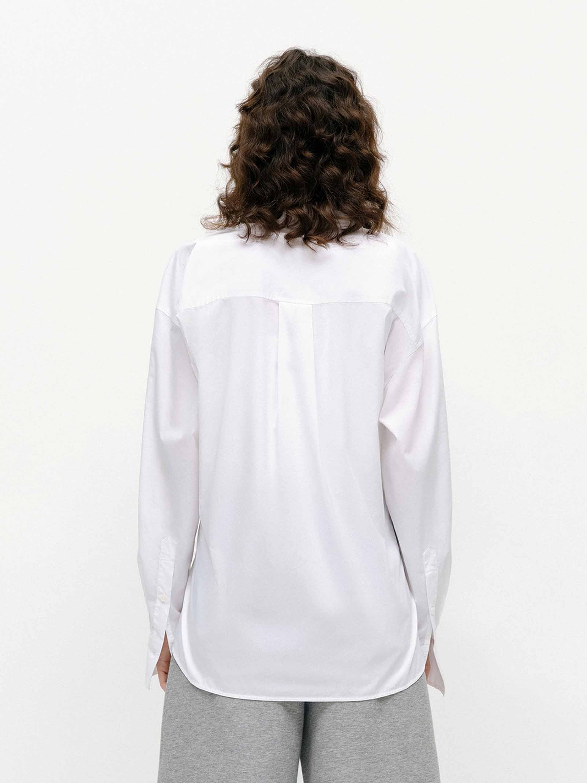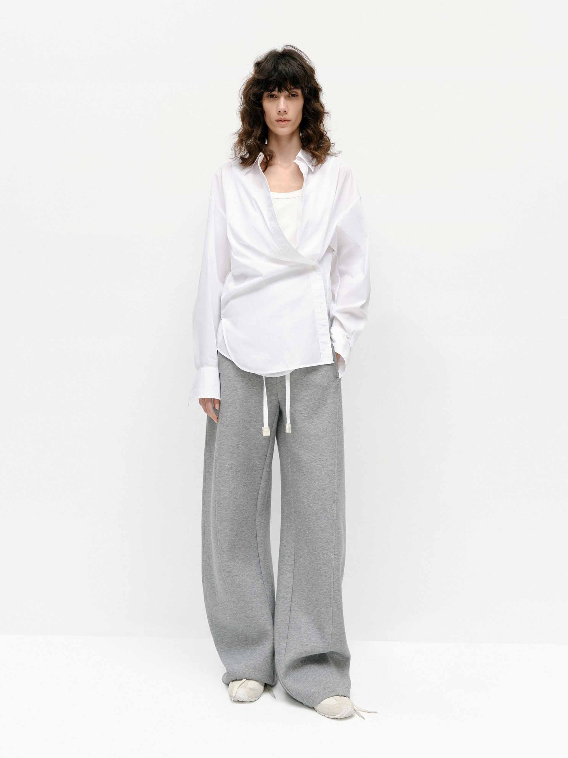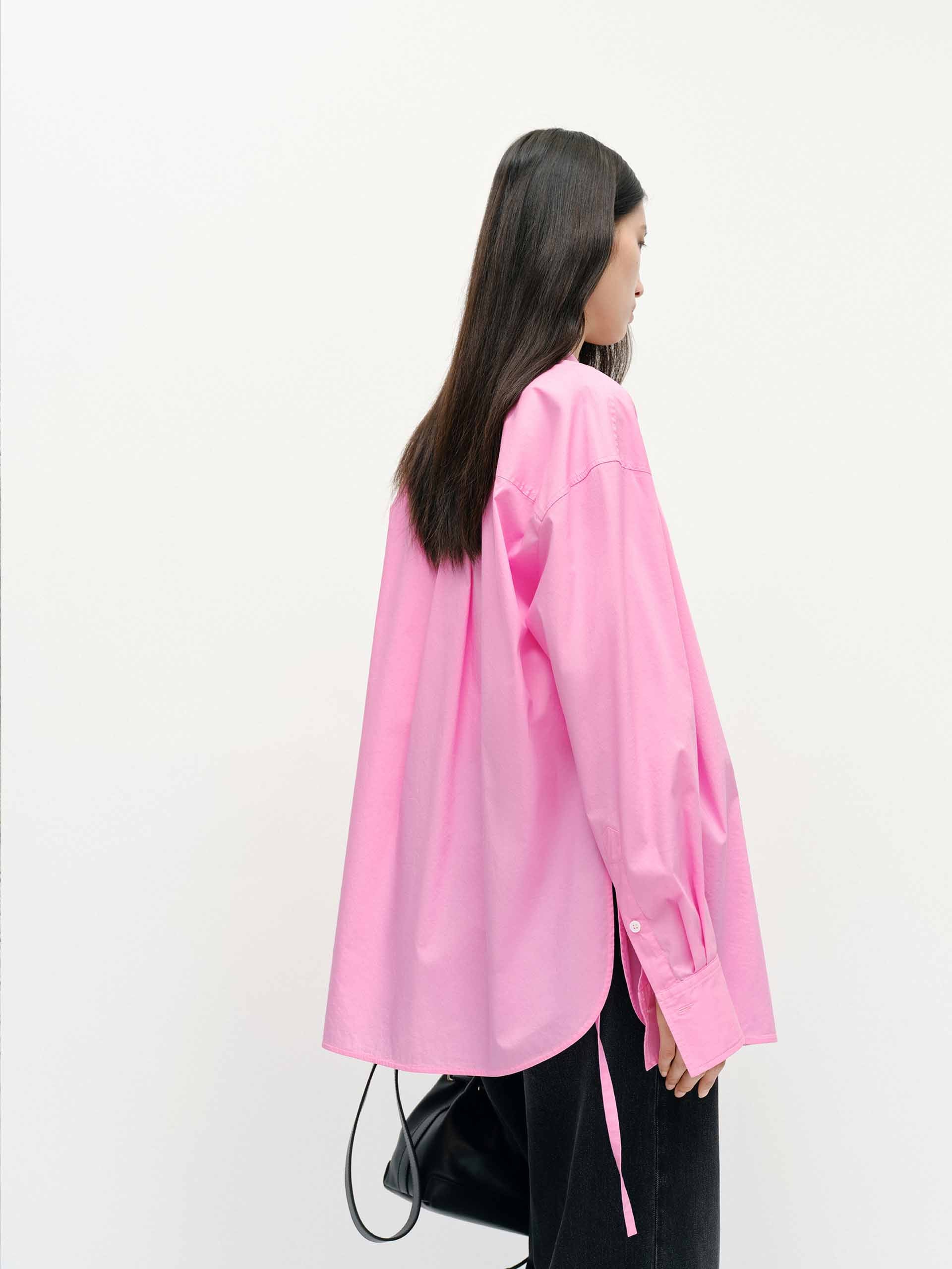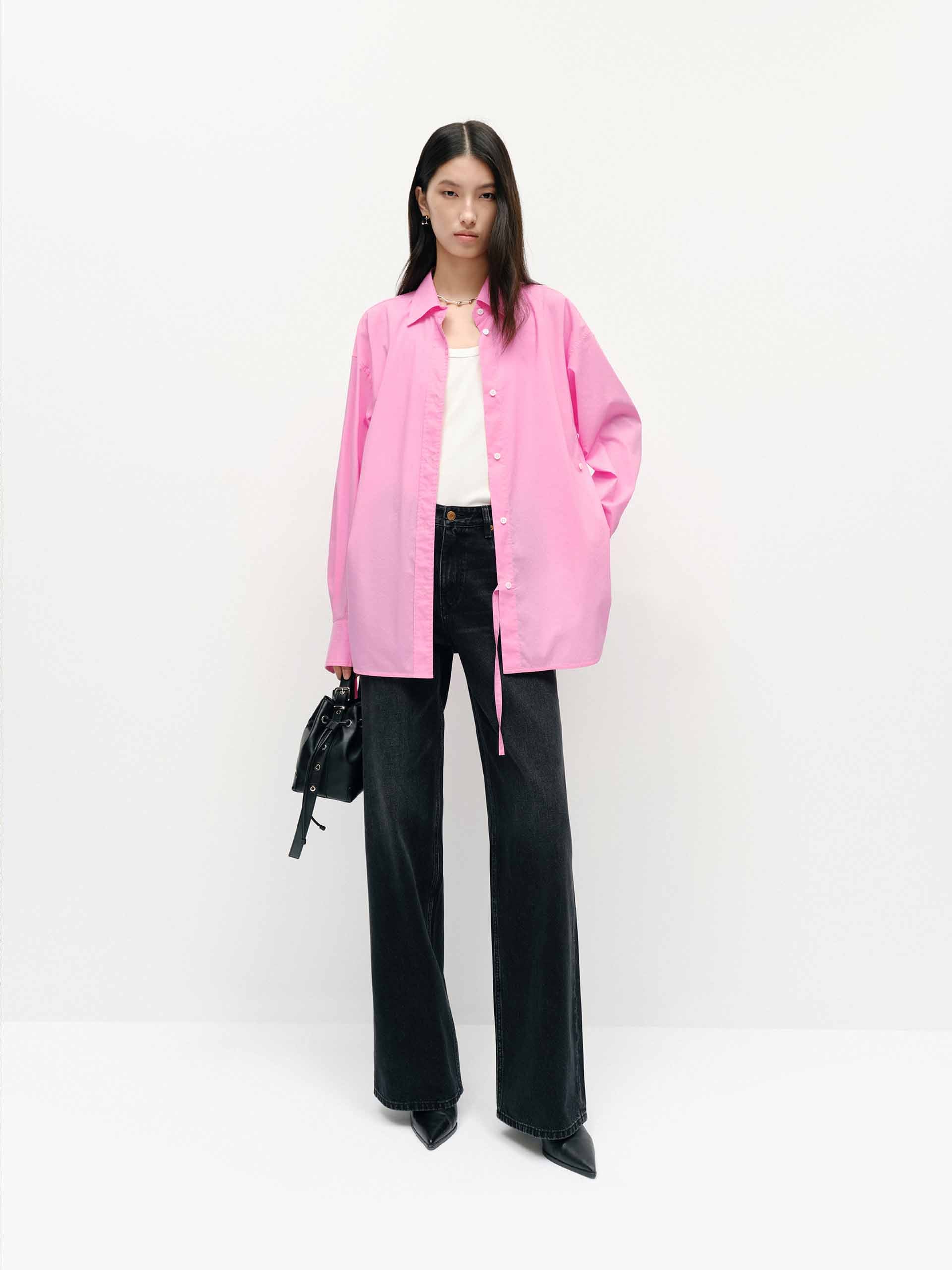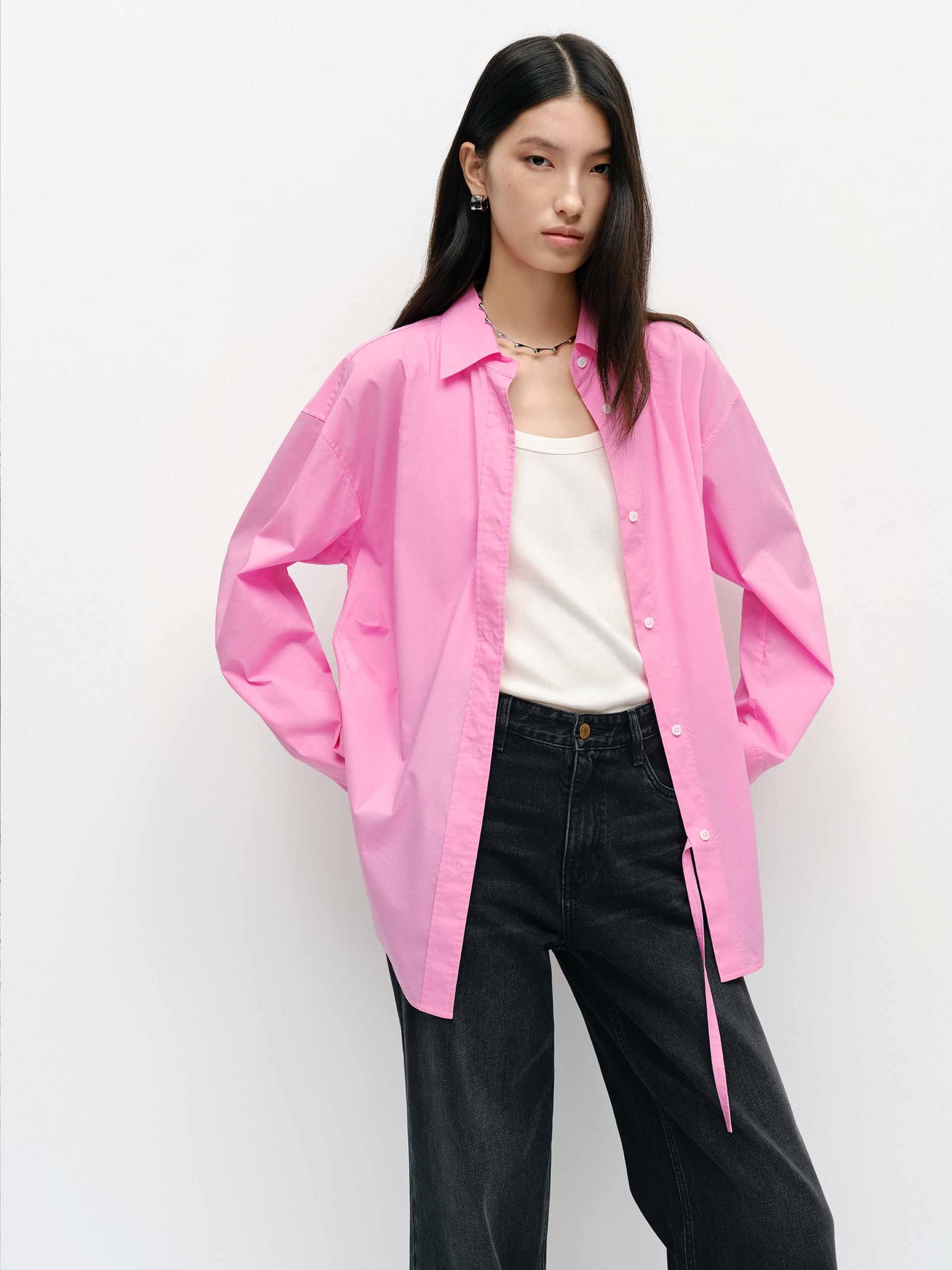 This shirt is made from a comfortable cotton blend, it offers a relaxed fit and versatile wearing options with its side pleated design and self-tie and button closure.