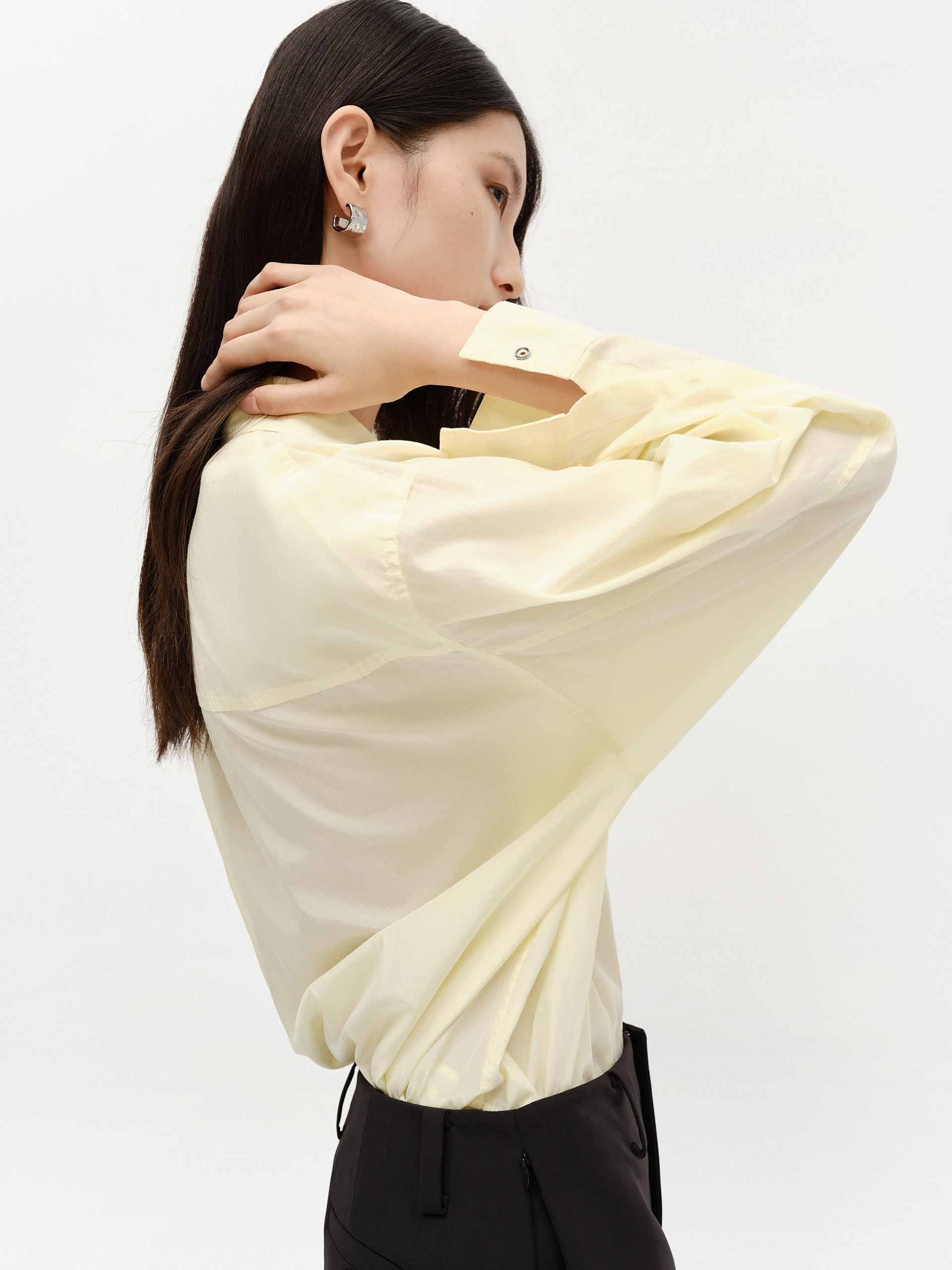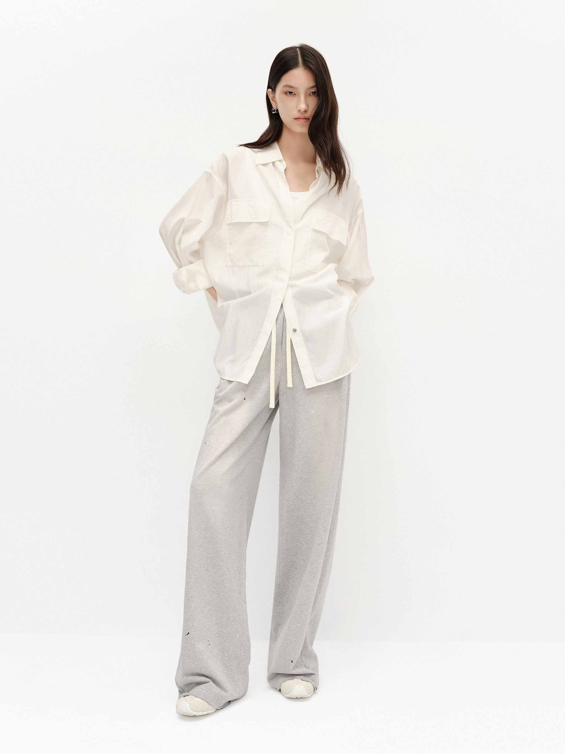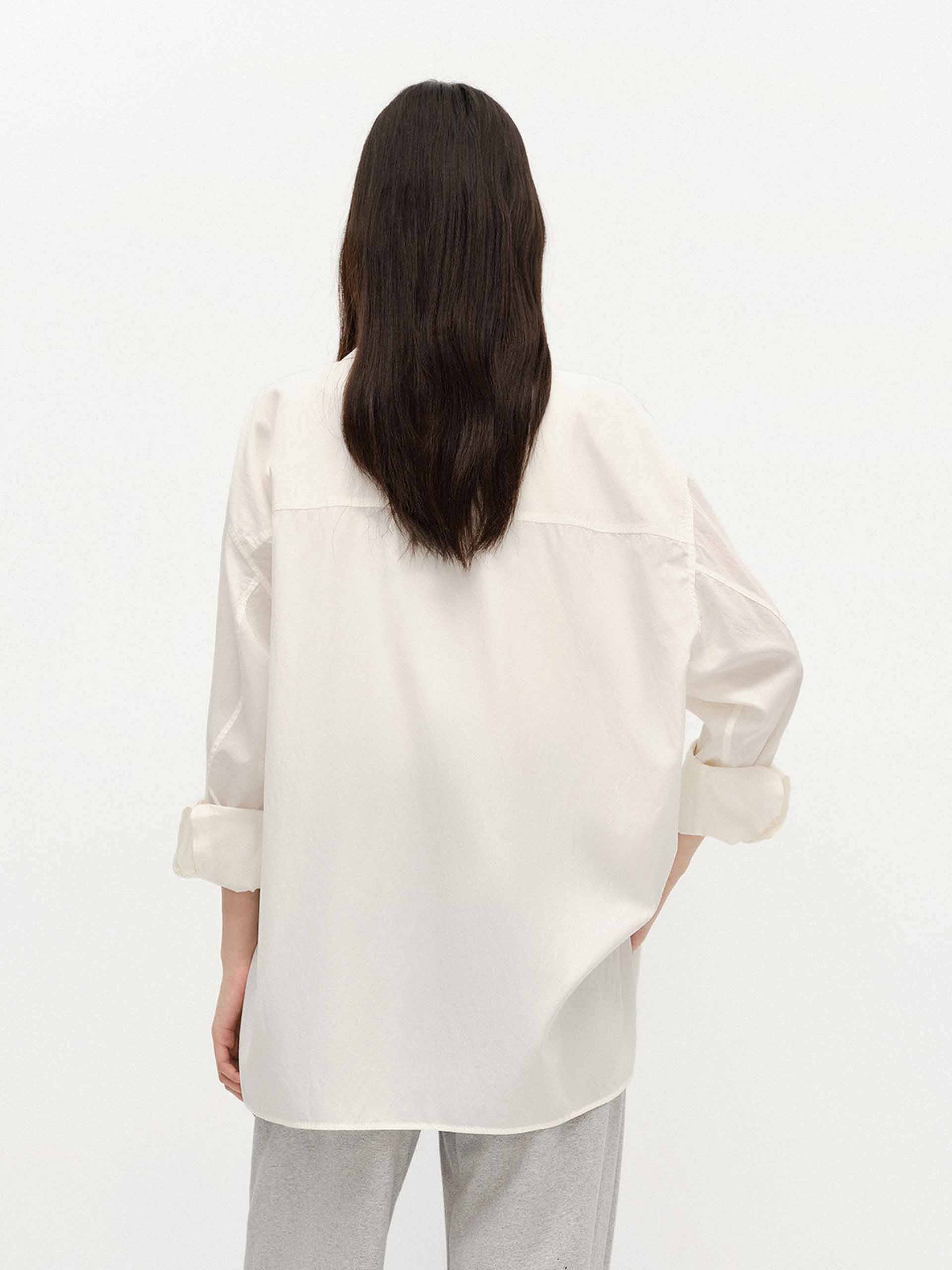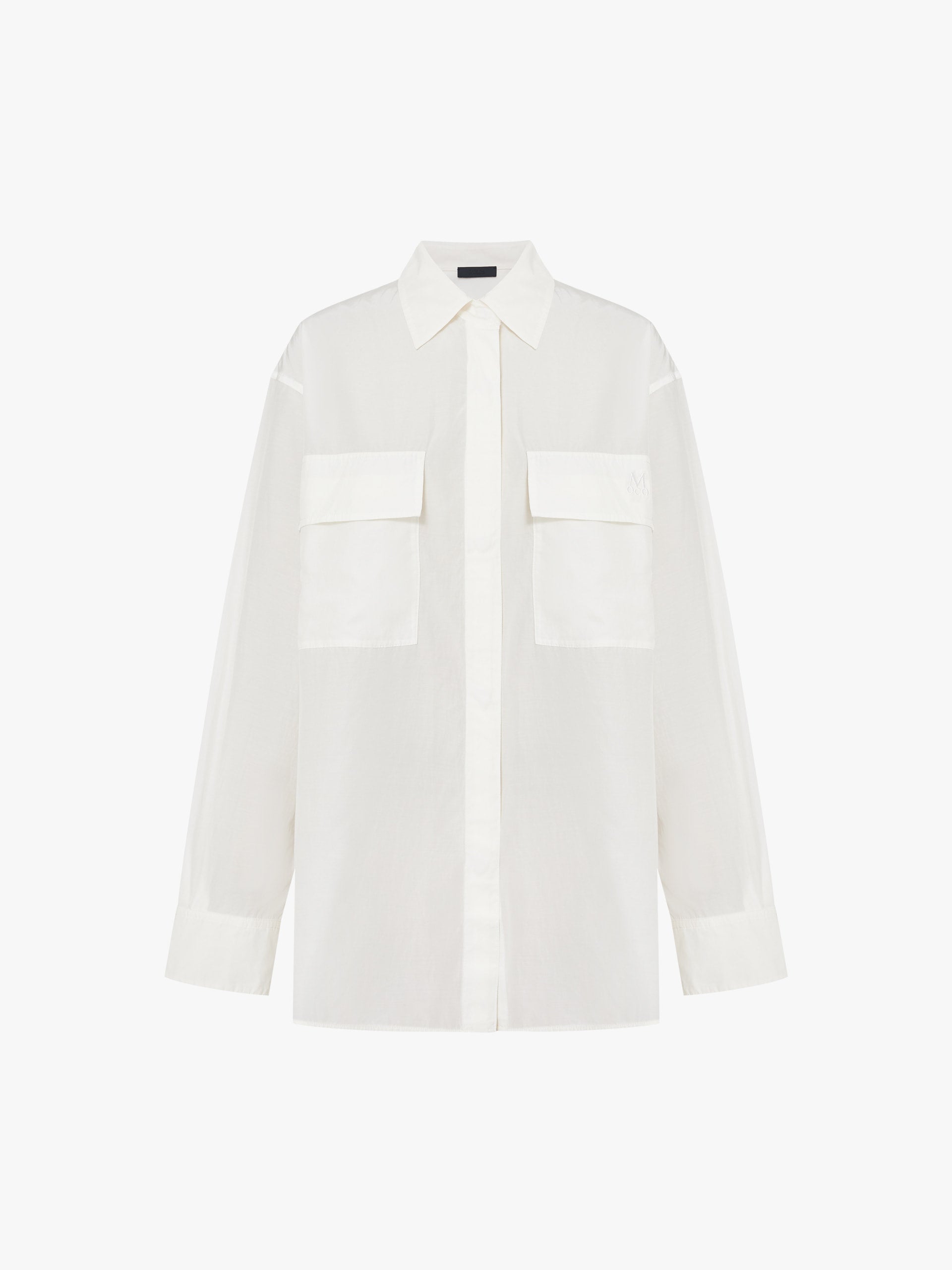This loose shirt features a curved hemline and chest pockets with a cargo style, adding a touch of casualness to the overall look. Made from breathable and comfortable fabric, it also features hidden metal buttons for a sleek finish. Ideal for coffee runs, weekend errands, or casual Fridays at the office.