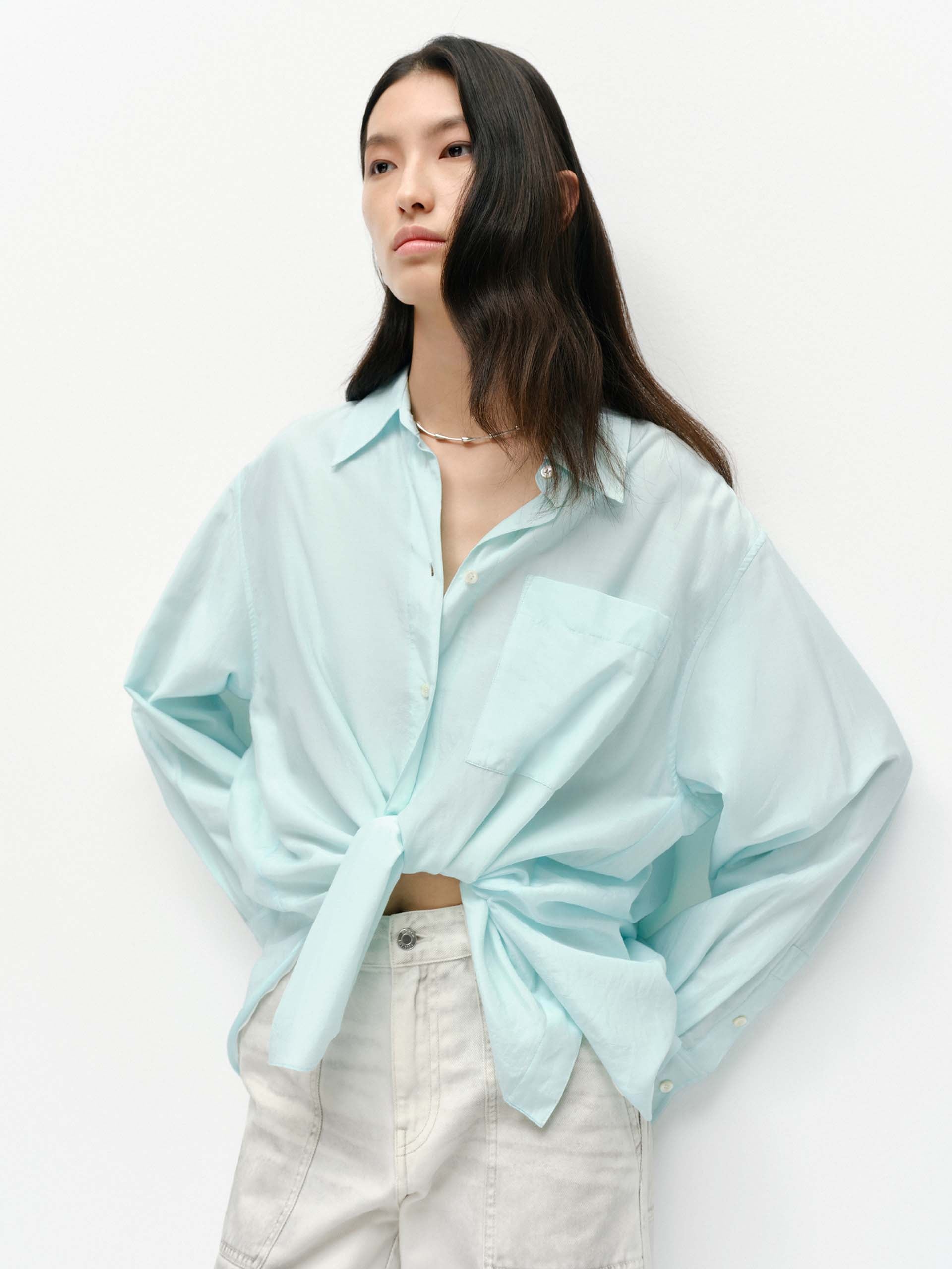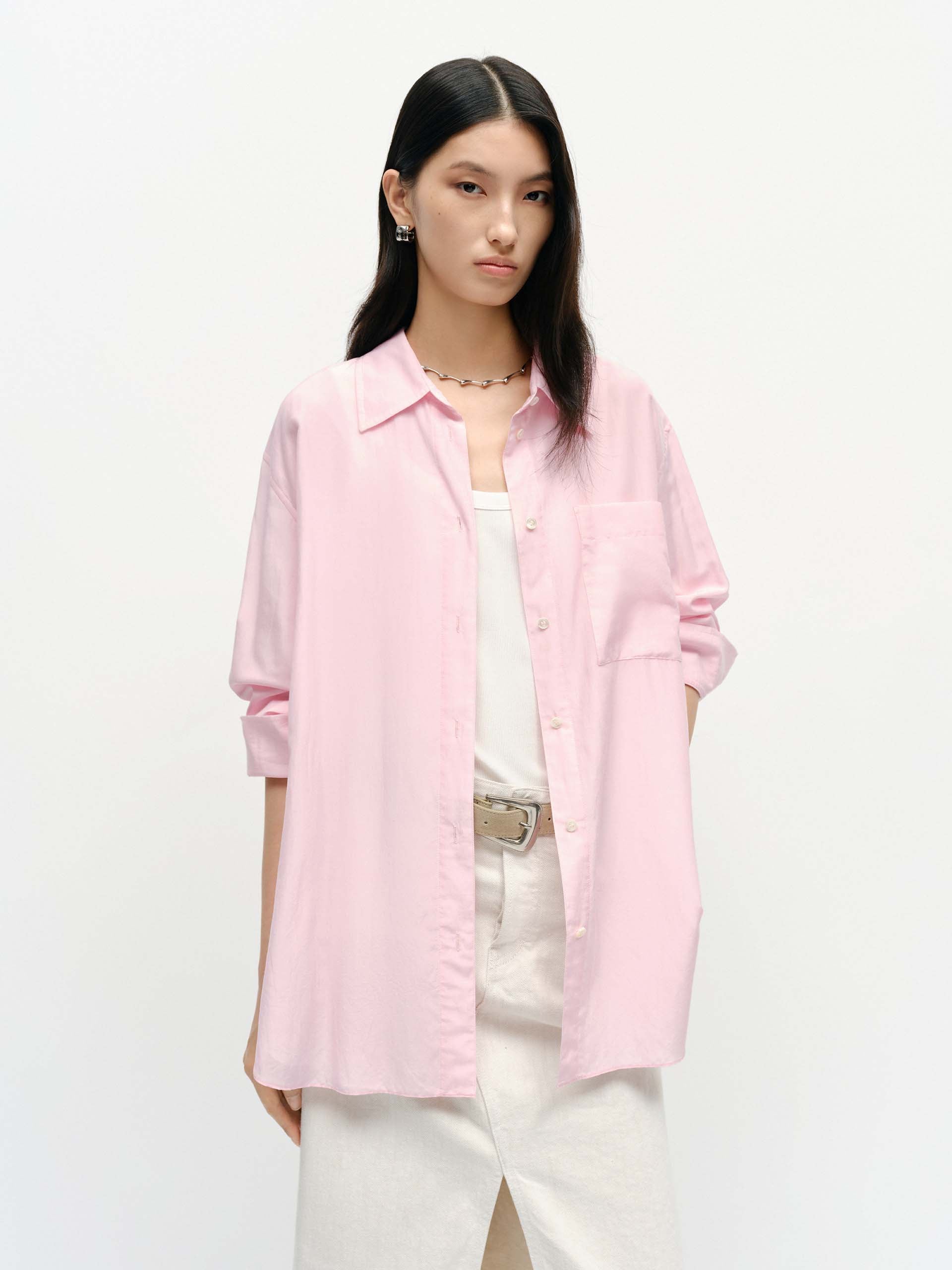 This shirt offers a modern take on tailoring and is crafted from ultra-soft silk and cotton, and tailored on our classic block for a polished silhouette. It's designed with a chest patch pocket, buttoned cuffs and a rounded hem.