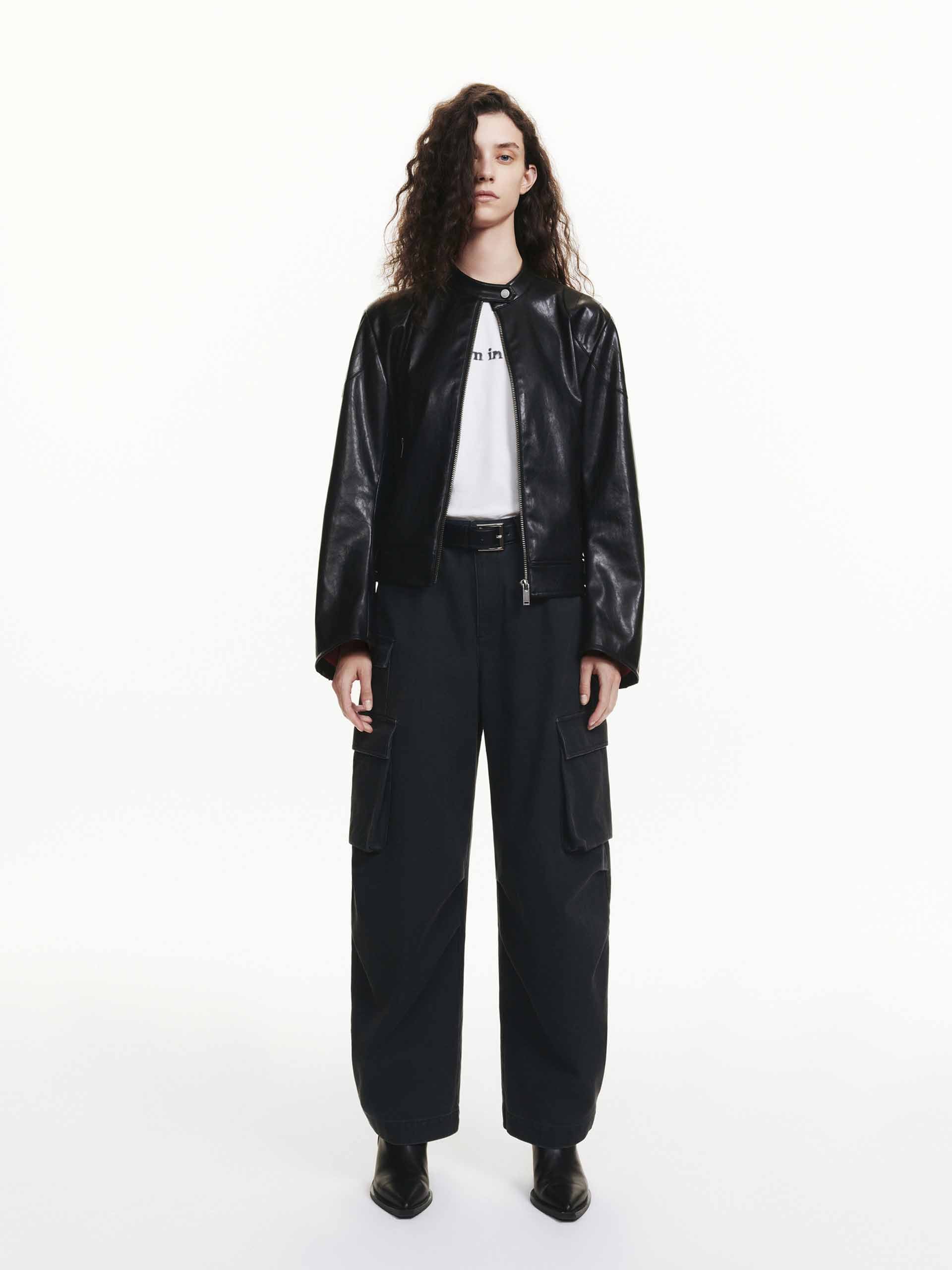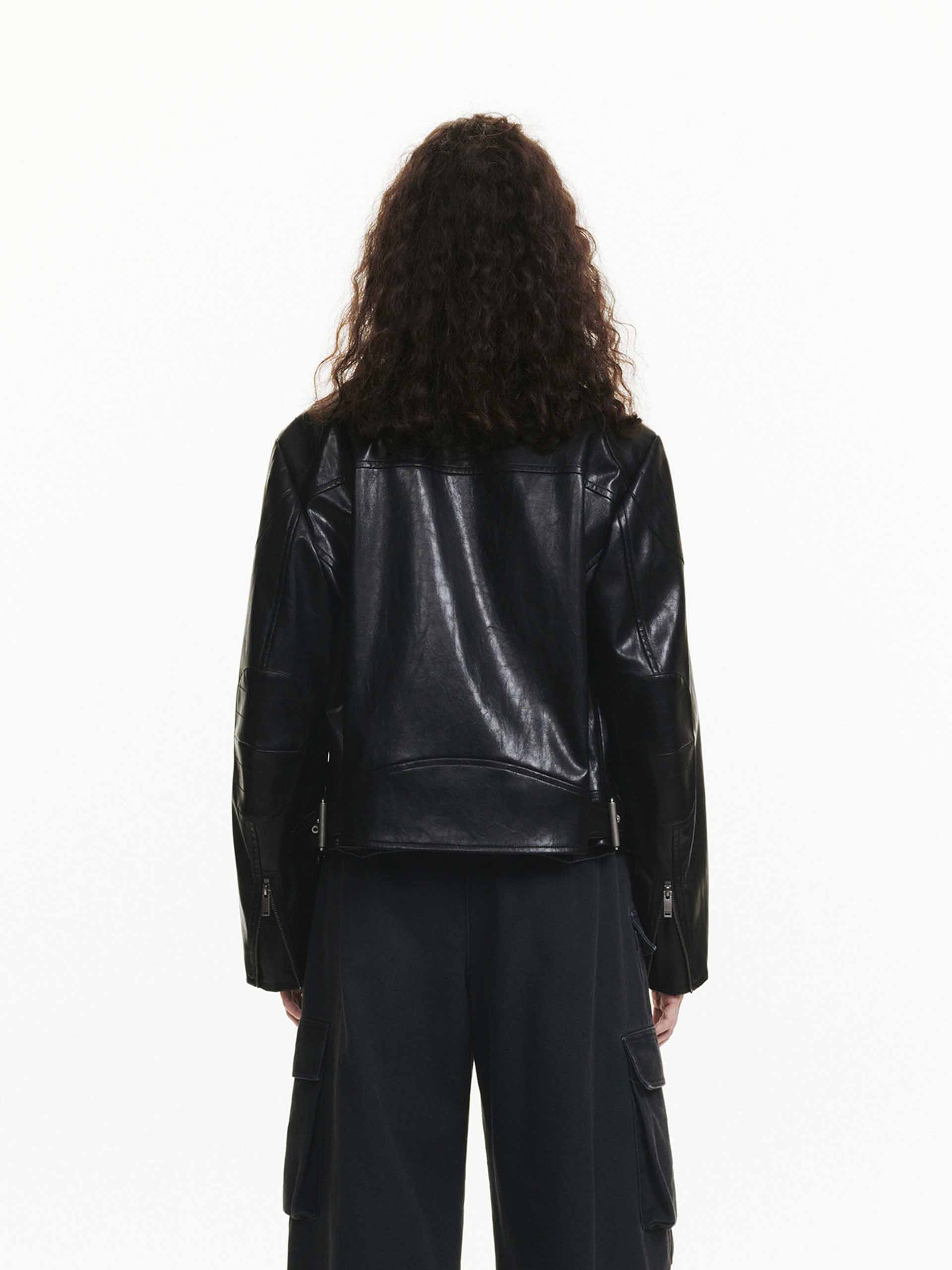 Expertly crafted with soft leather, this jacket combines classic motorcycle style with a modern, boxy fit. The zipper closure and side pocket design add function and style to this cool piece.