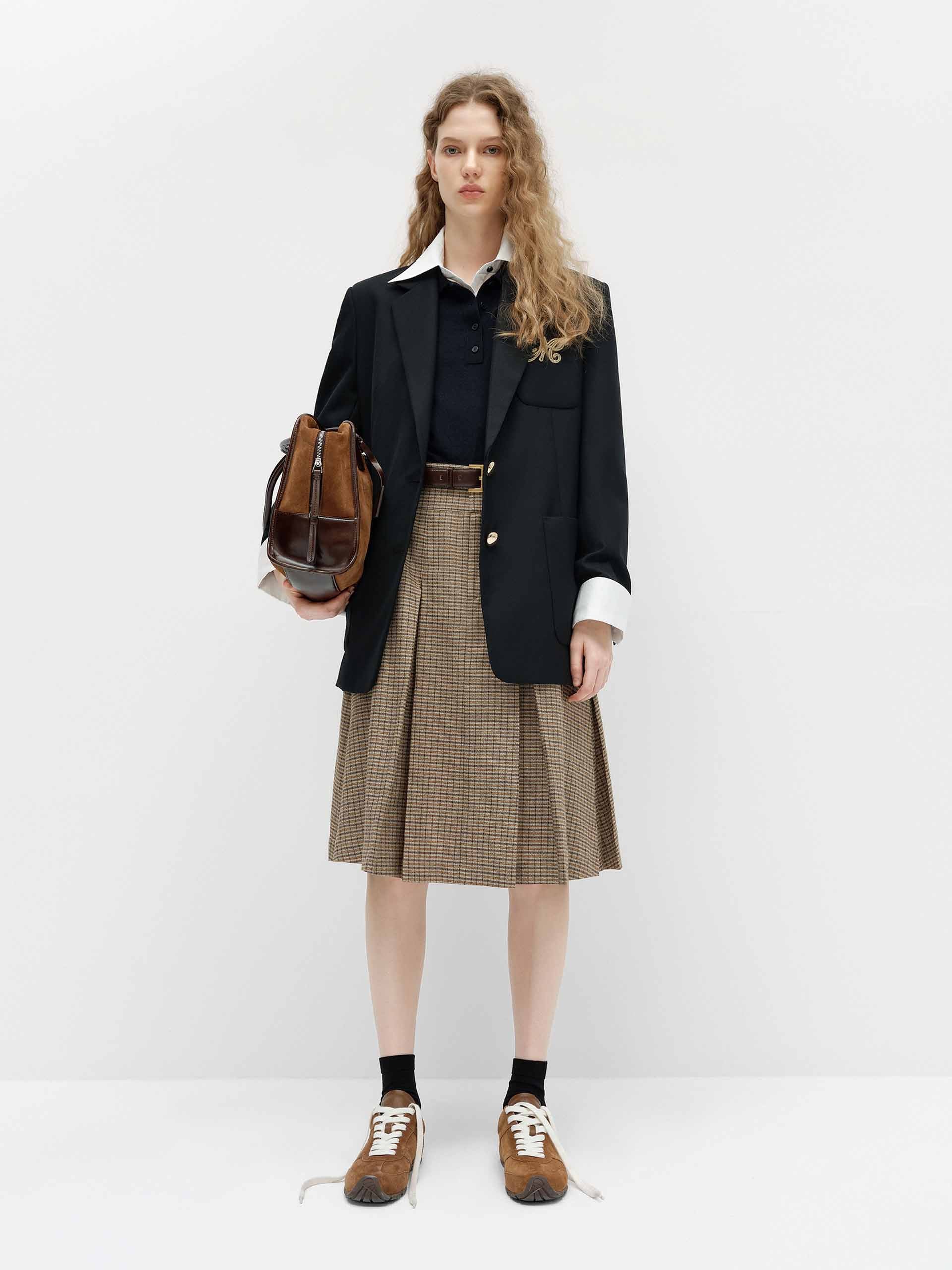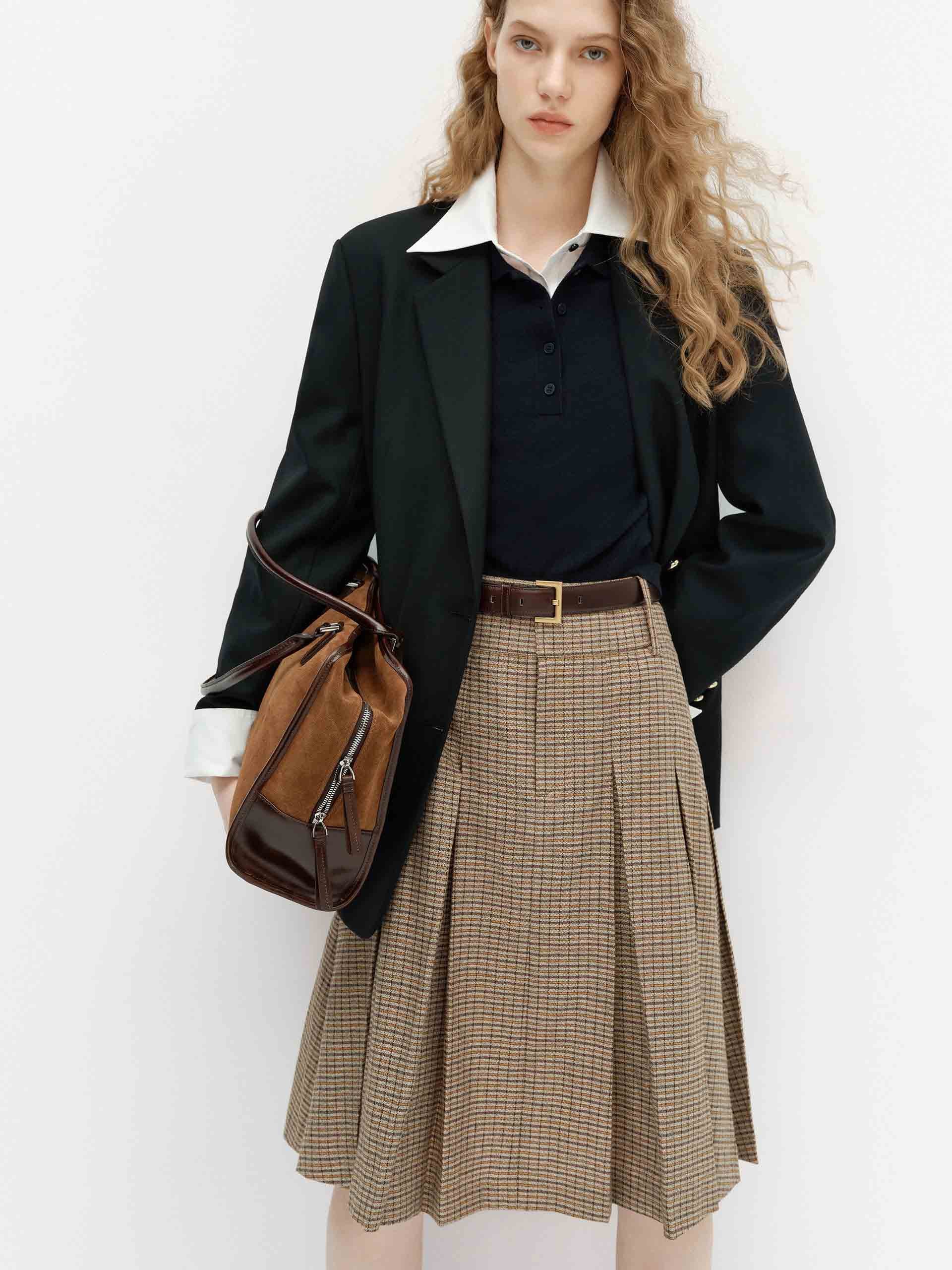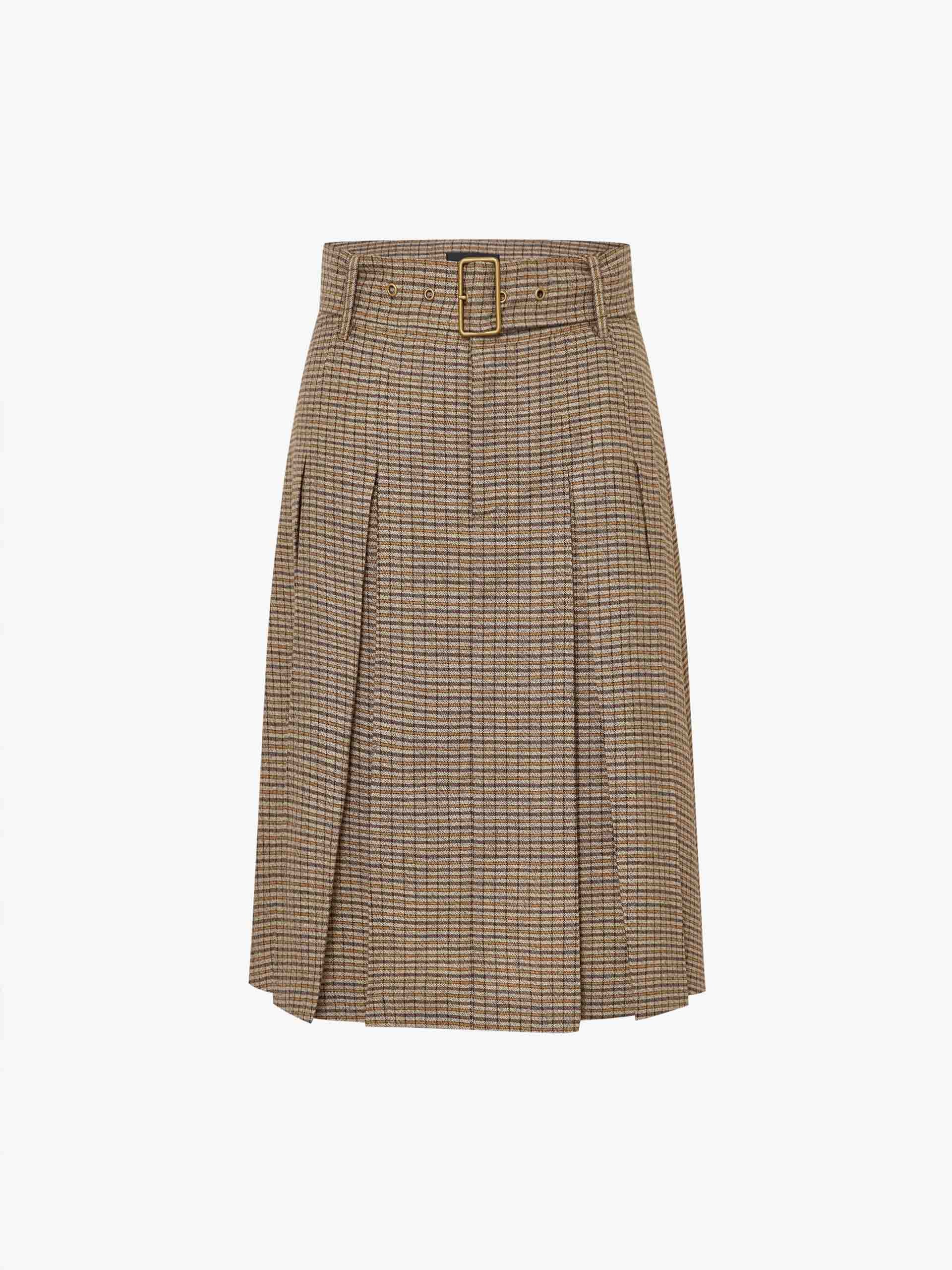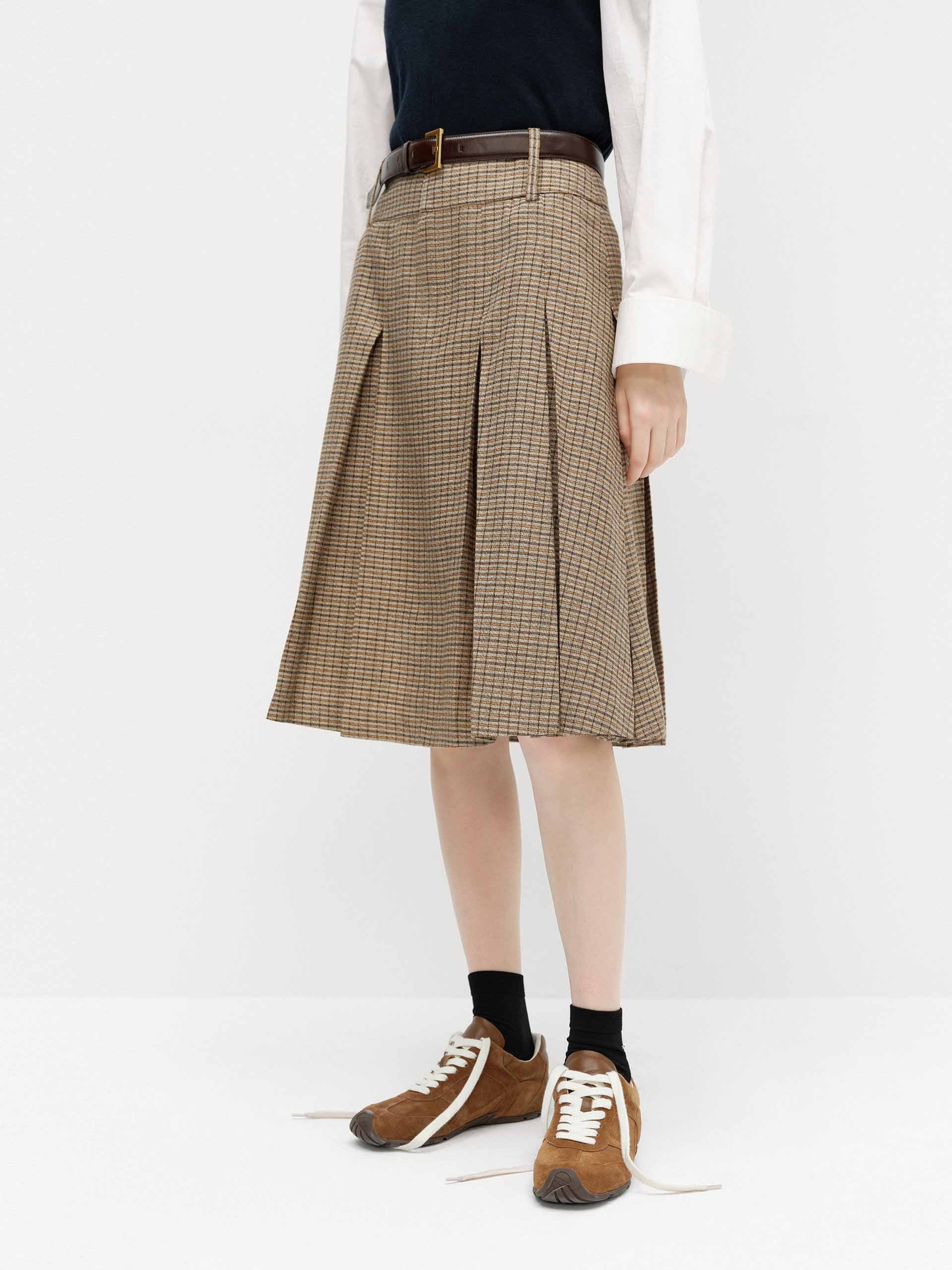 Made from a high-quality Linen blend, this skirt offers a classic preppy style. Featuring a timeless A-line silhouette, vintage plaid design, and elegant pleating, it's the perfect addition to any outfit.