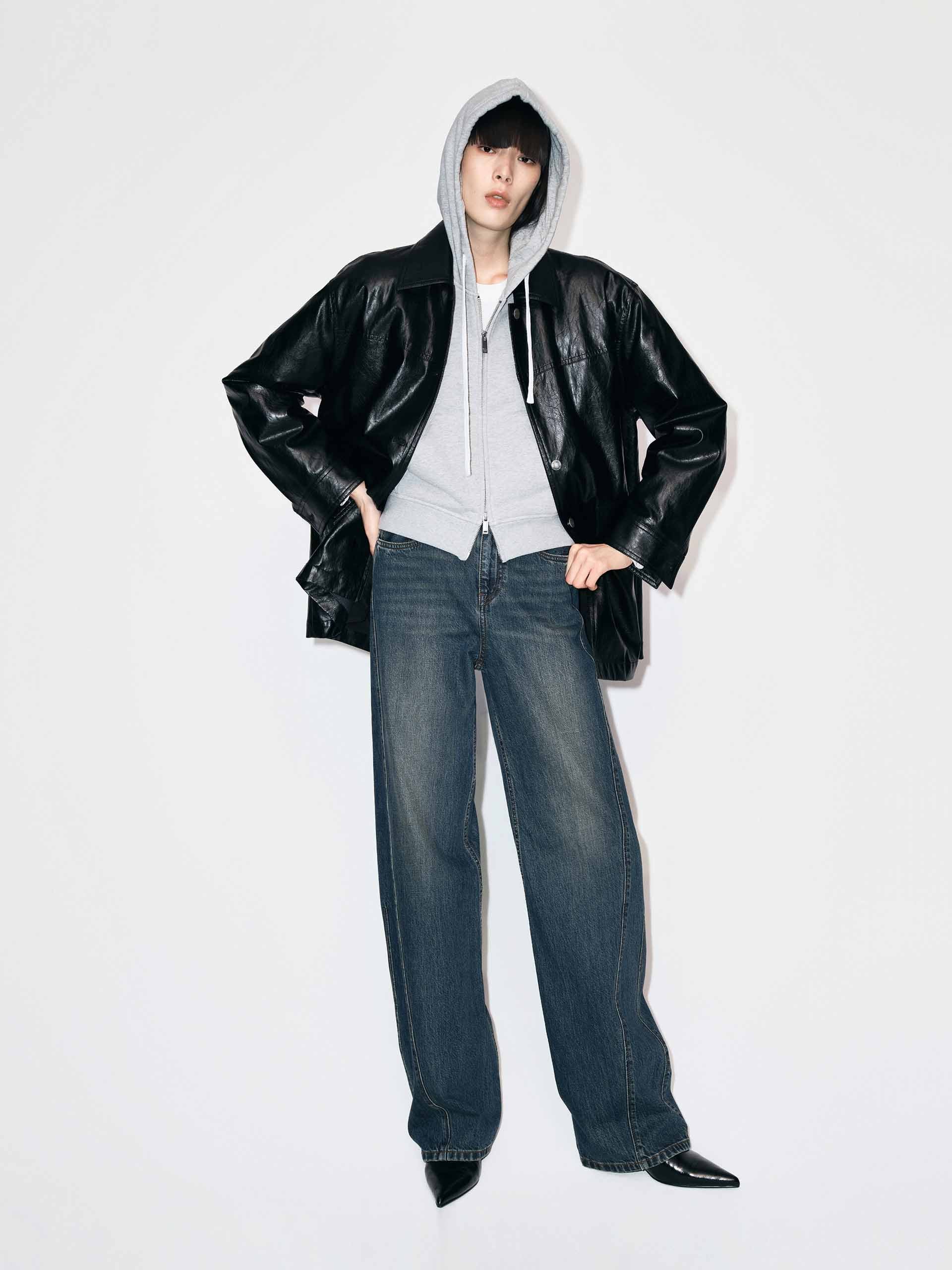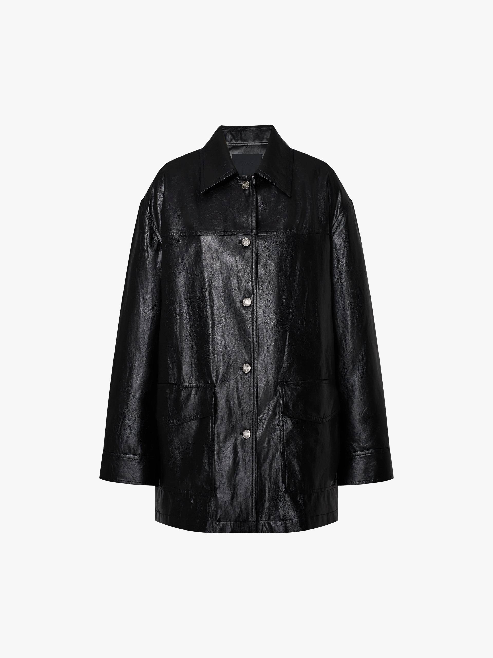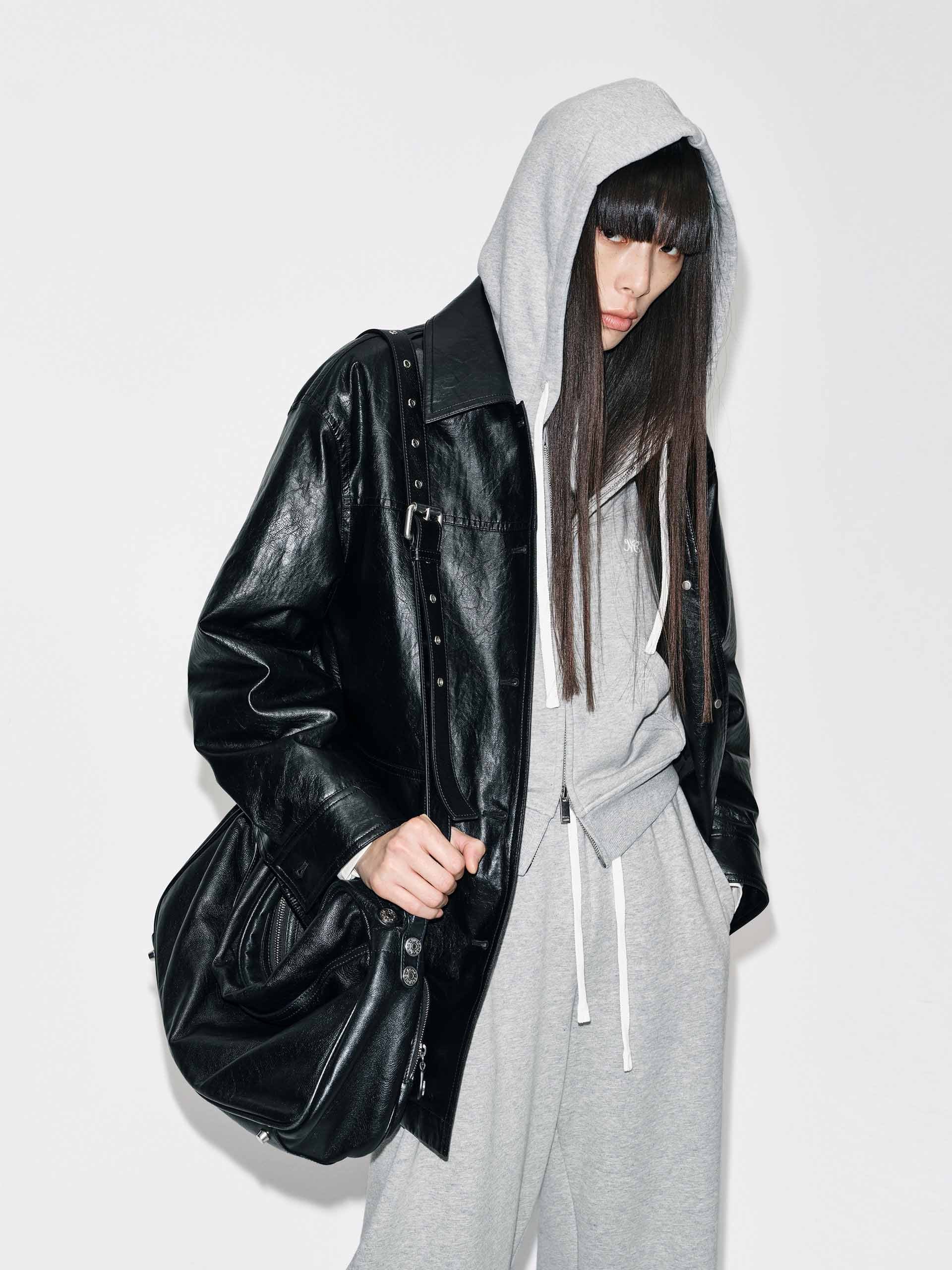Blending sleek style with urban functionality, this down jacket is crafted from premium PU leather fabric for a modern, luxe look. Designed with long sleeves and practical side pockets, it combines aesthetic appeal with everyday convenience. The classic button closure ensures a secure and adjustable fit while adding a touch of timeless sophistication.