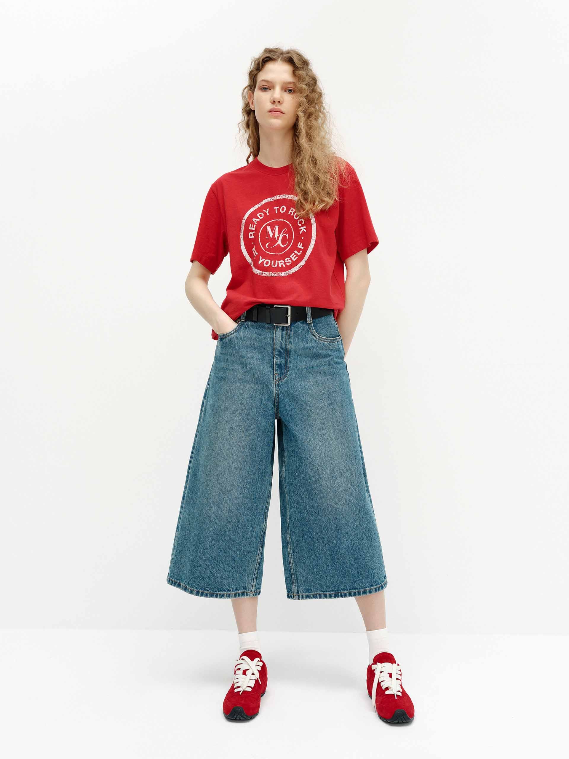 This T-shirt is made from a comfortable cotton blend, ensuring a cozy and breathable fit. It features a classic crewneck design and a vintage-inspired print on the front, adding a touch of retro charm. It effortlessly pairs with various outfits, making it a perfect staple for any casual or laid-back look.