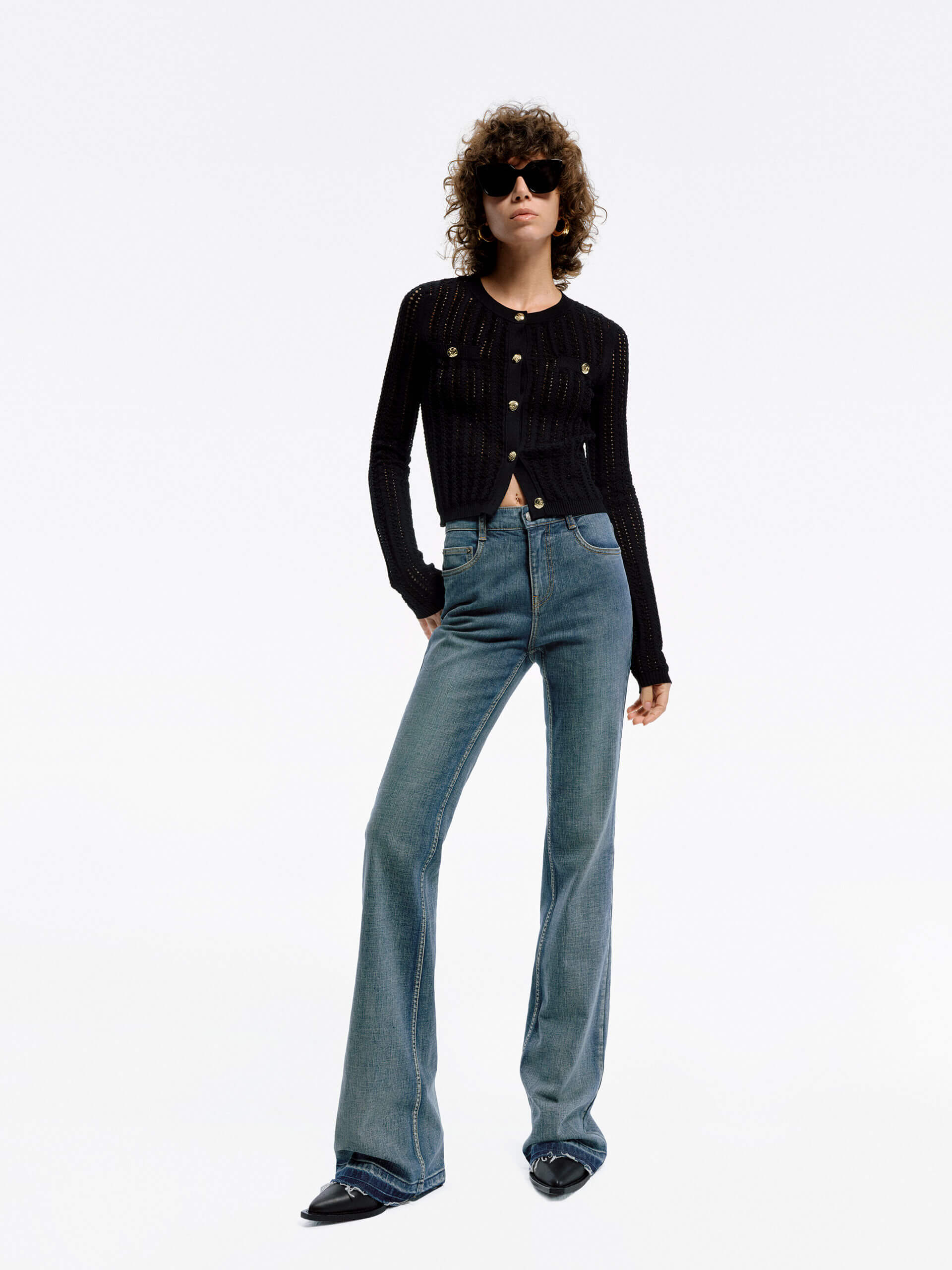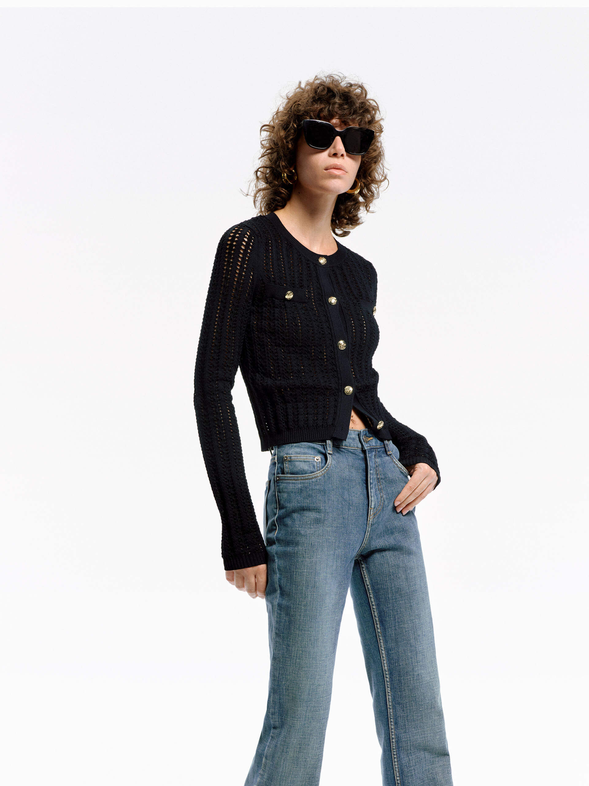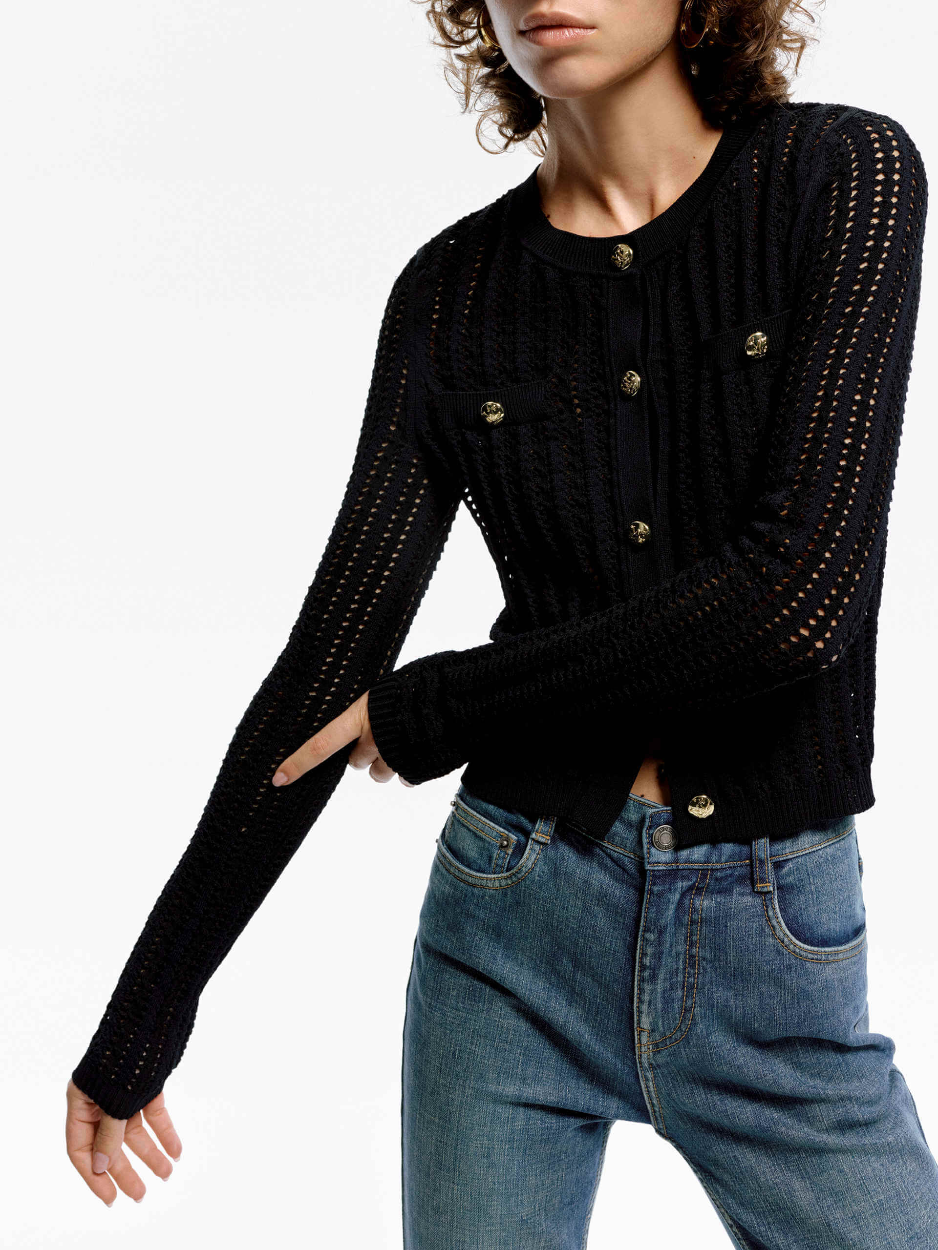 Made with a soft and cozy knit material, its slim fit and button closure add a touch of sophistication. Perfectly paired with high-waisted jeans for a chic and trendy look.