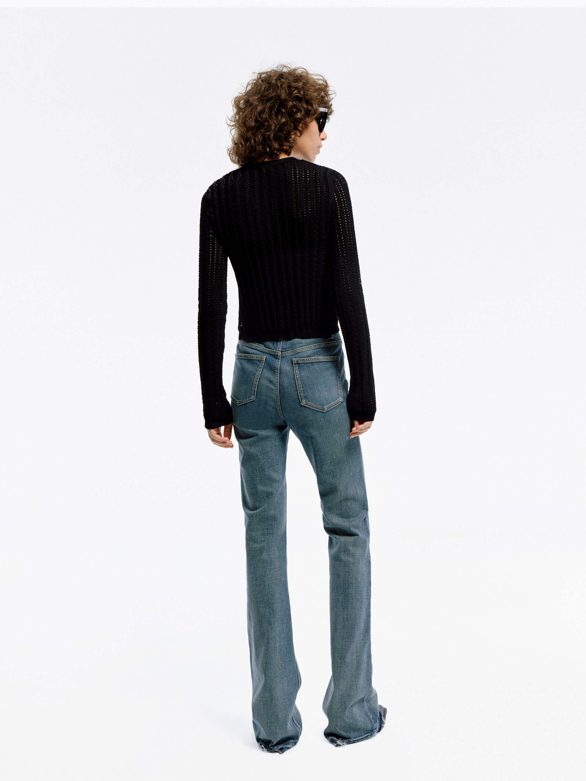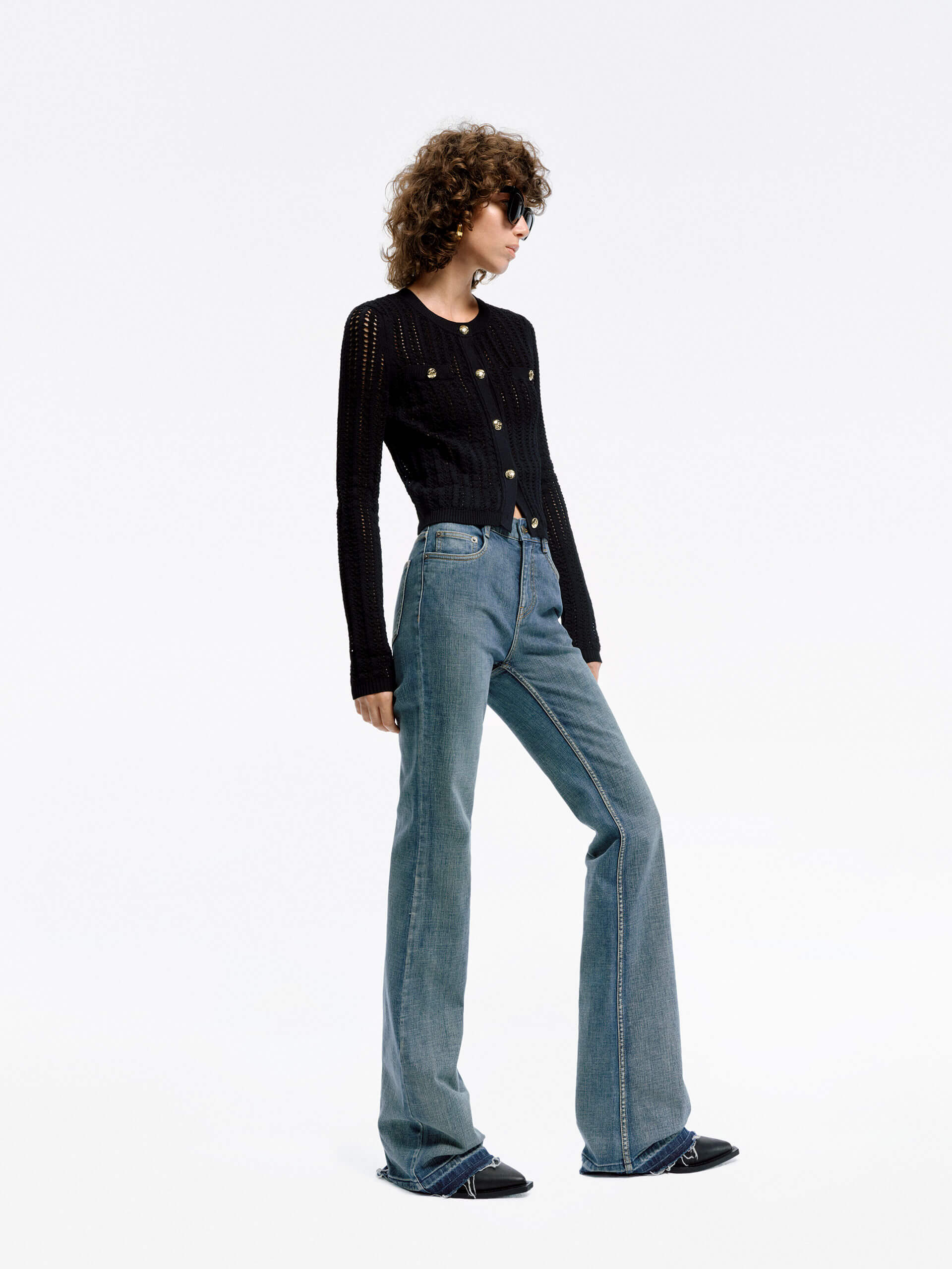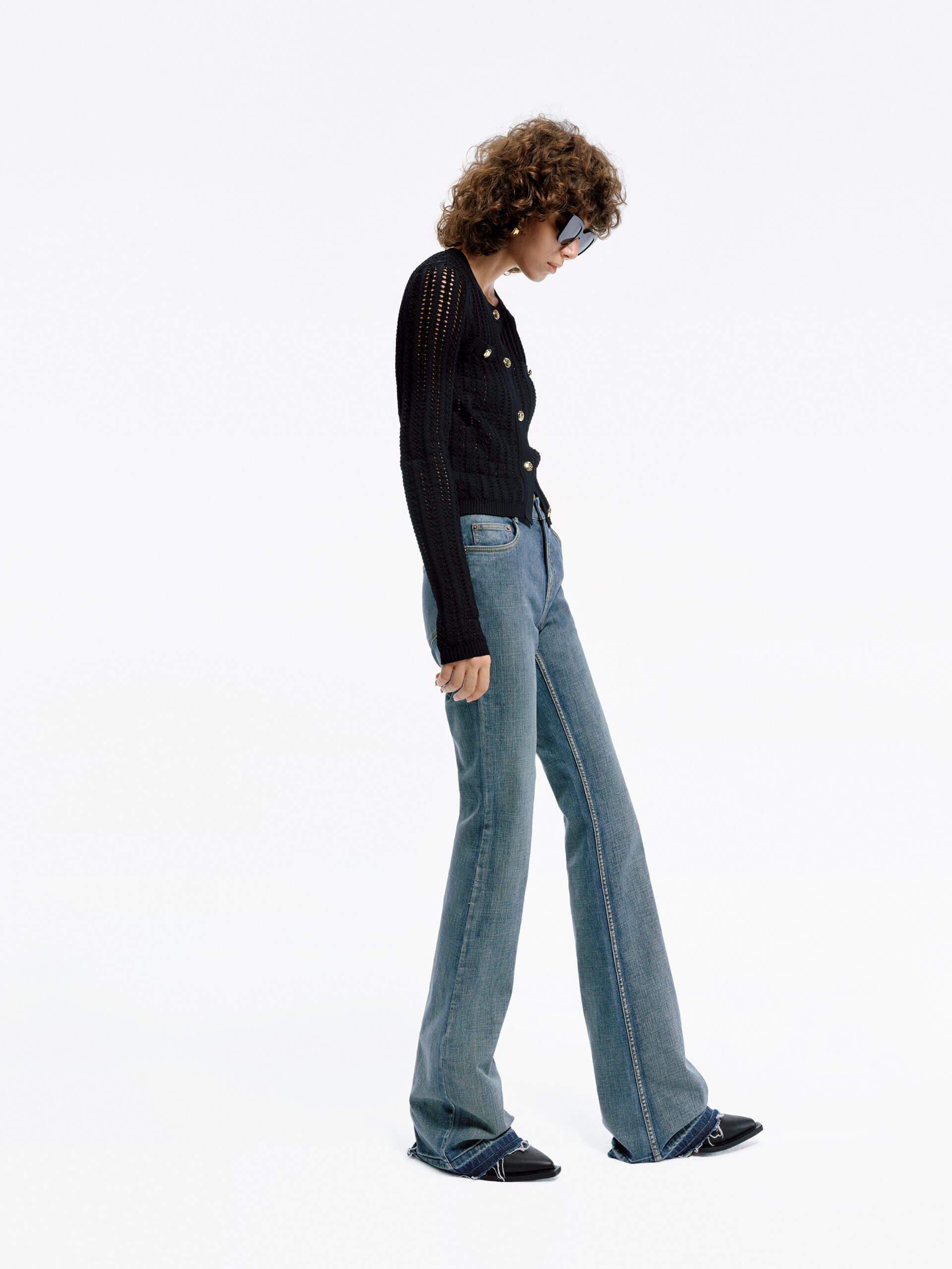 Made with a soft and cozy knit material, its slim fit and button closure add a touch of sophistication. Perfectly paired with high-waisted jeans for a chic and trendy look.