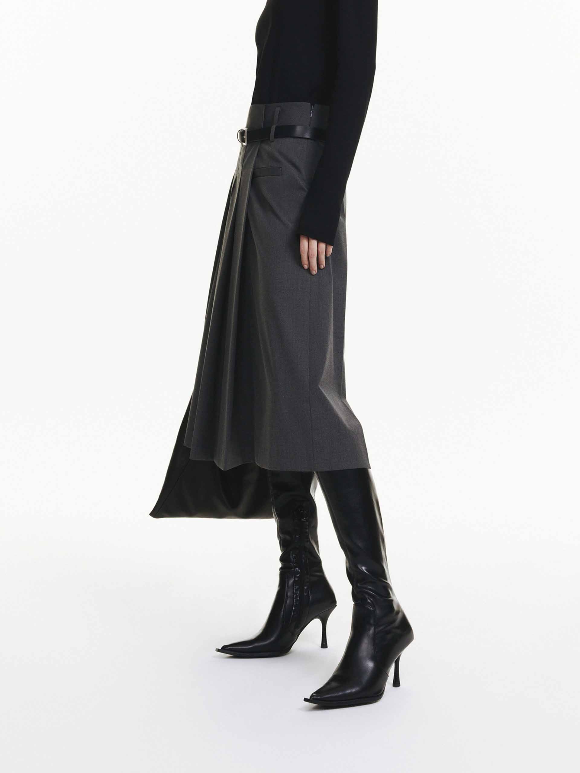 This is an all season skirt! You can wear it with tights for cold months. Love the design details which I think are quite edgy, but still business appropriate. I can see myself wearing it with both casual and dressy tops! Quality fabric and craftsmanship.