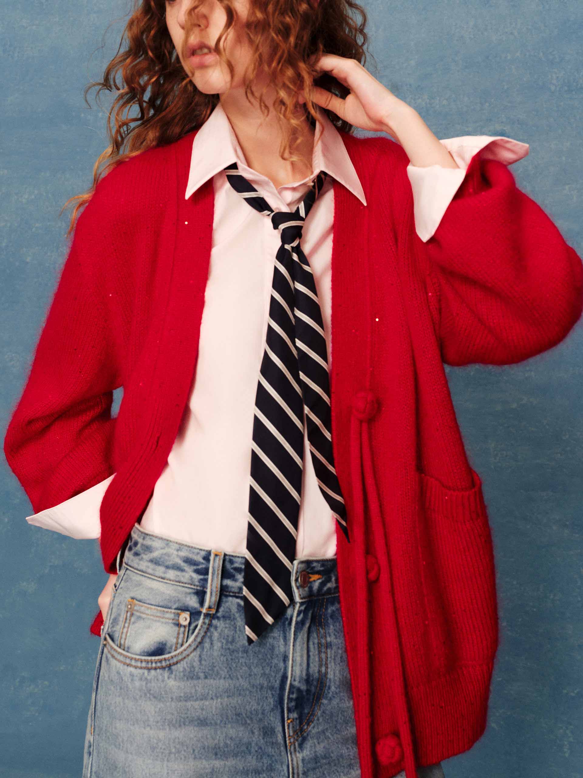 Back Silk Tie Knit Sweater