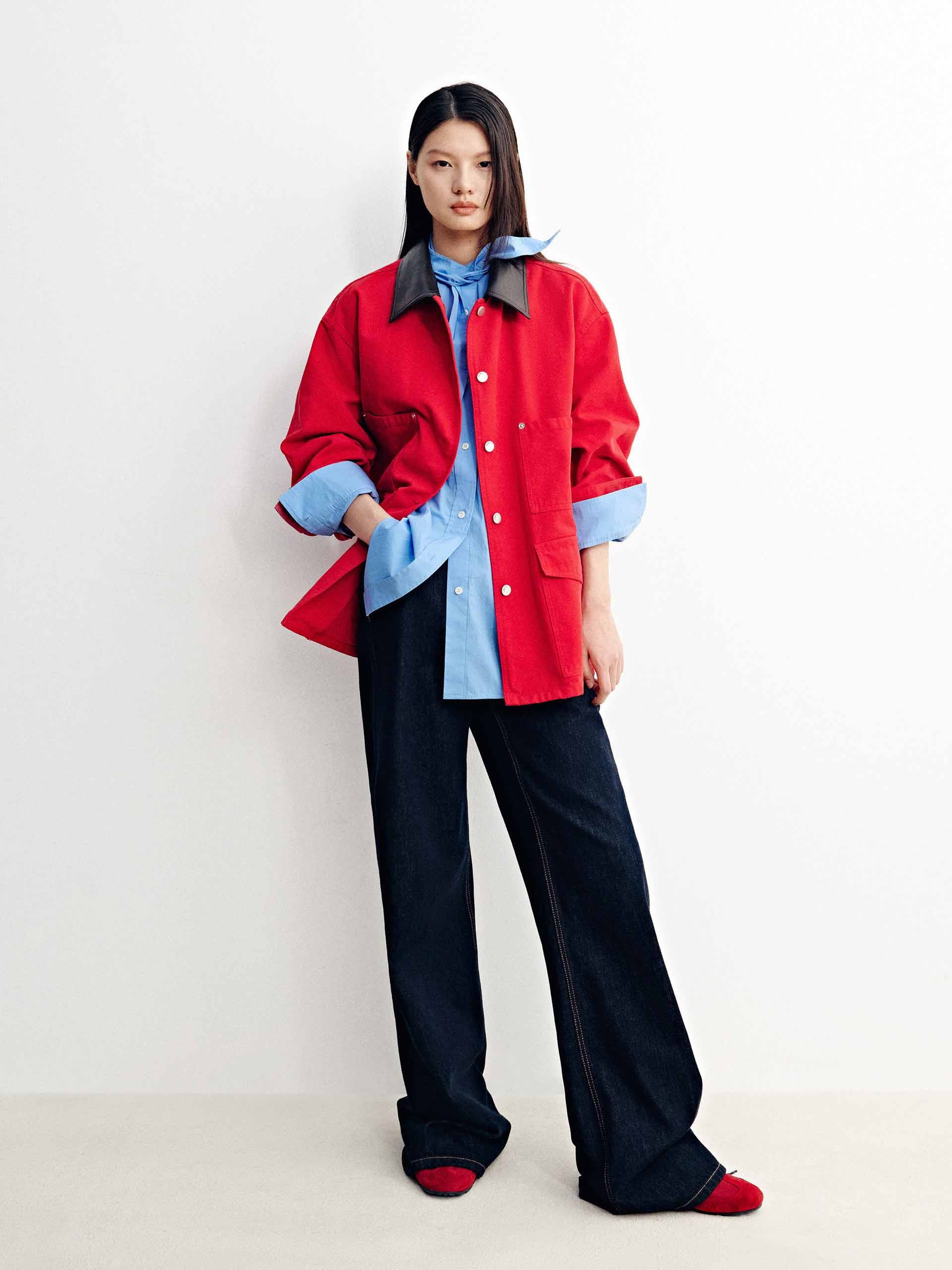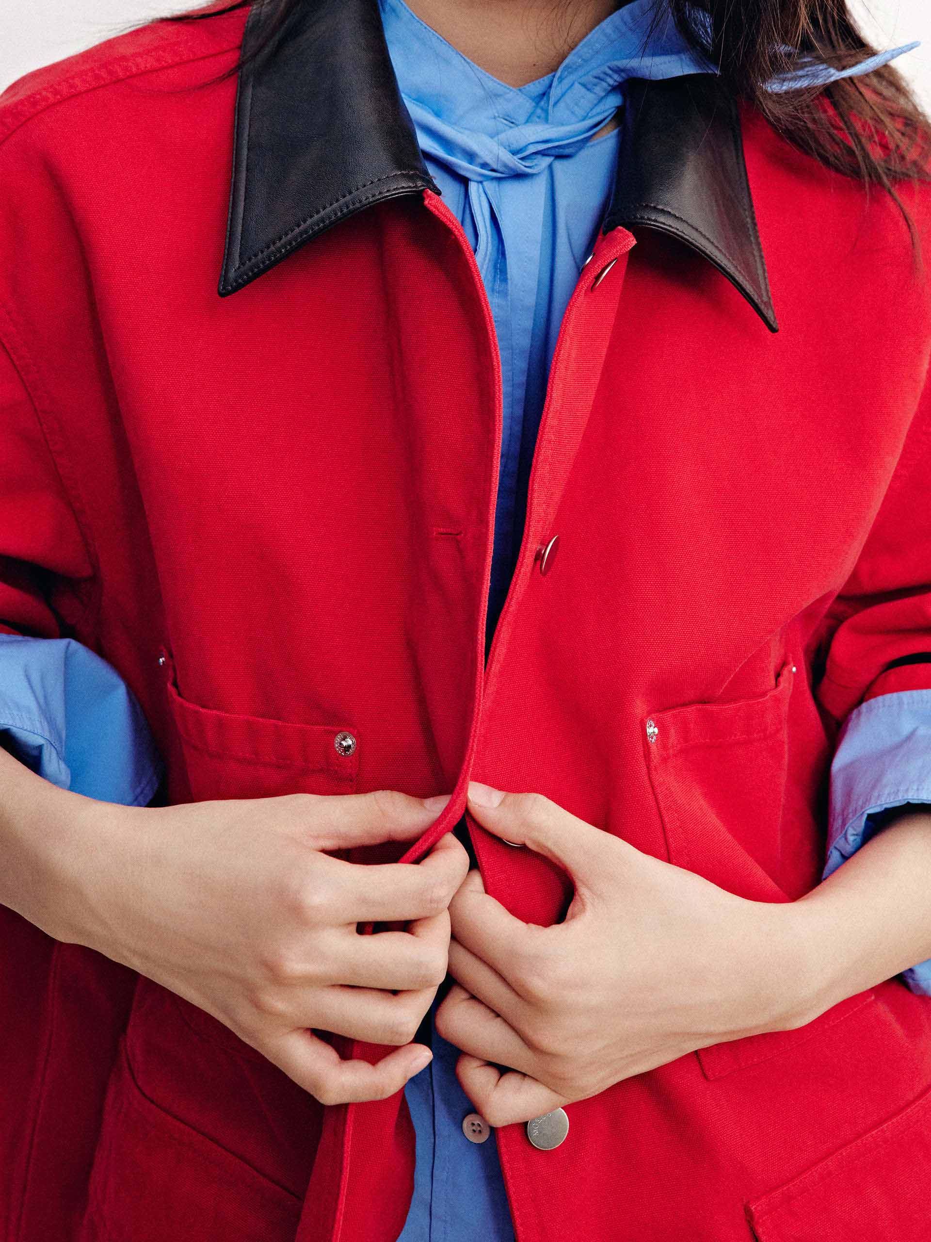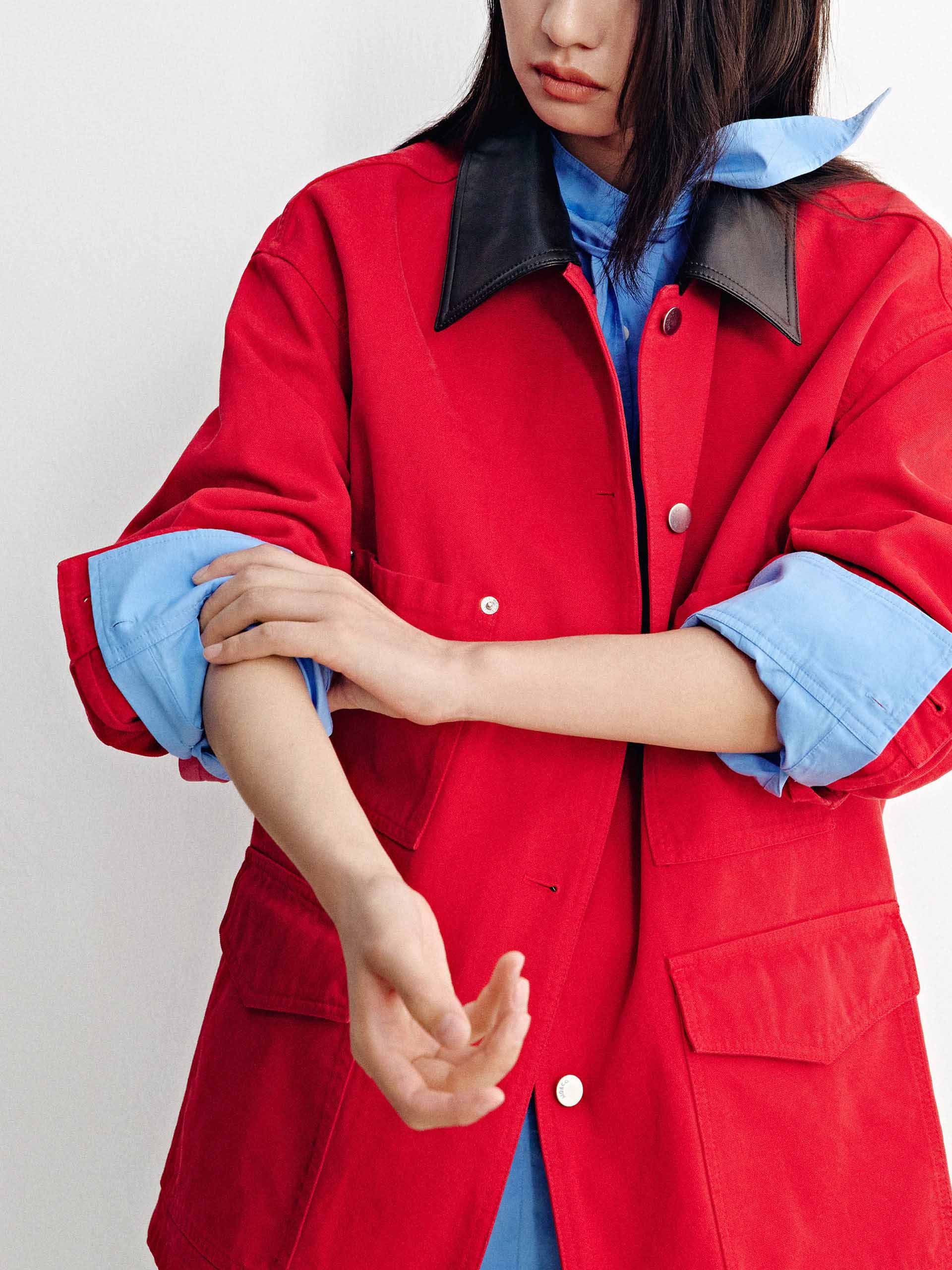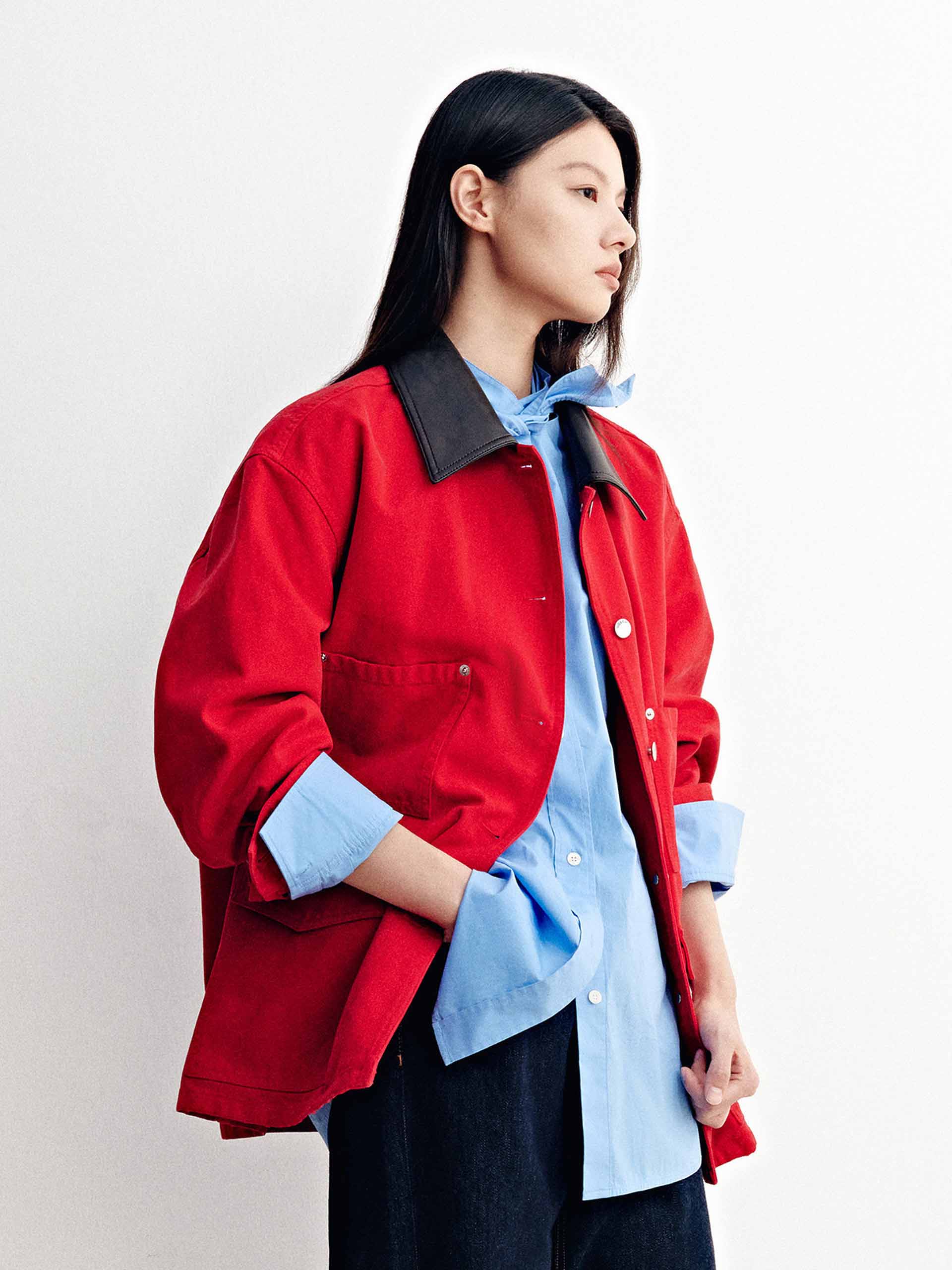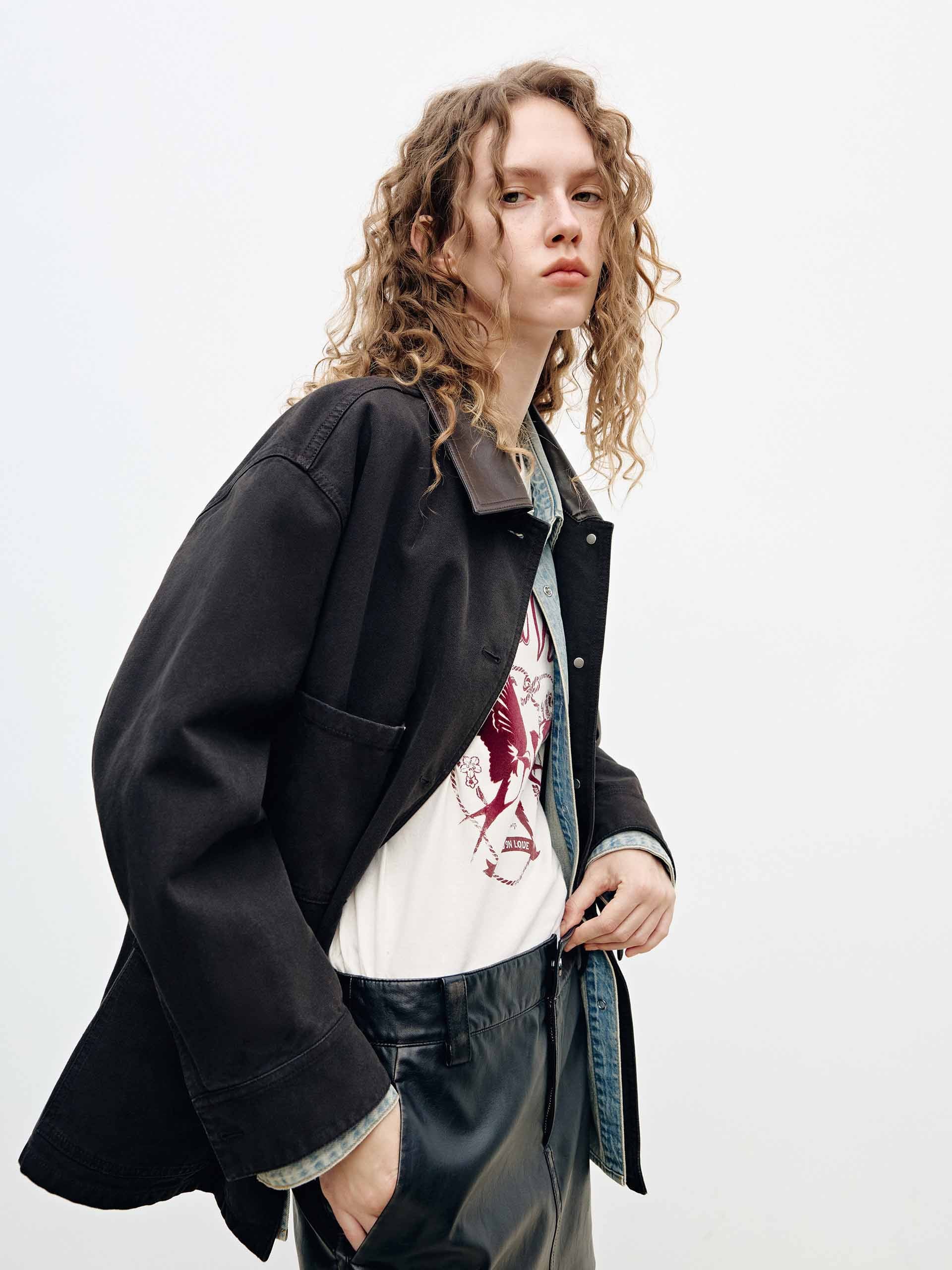 Leather Collar Button Coat
