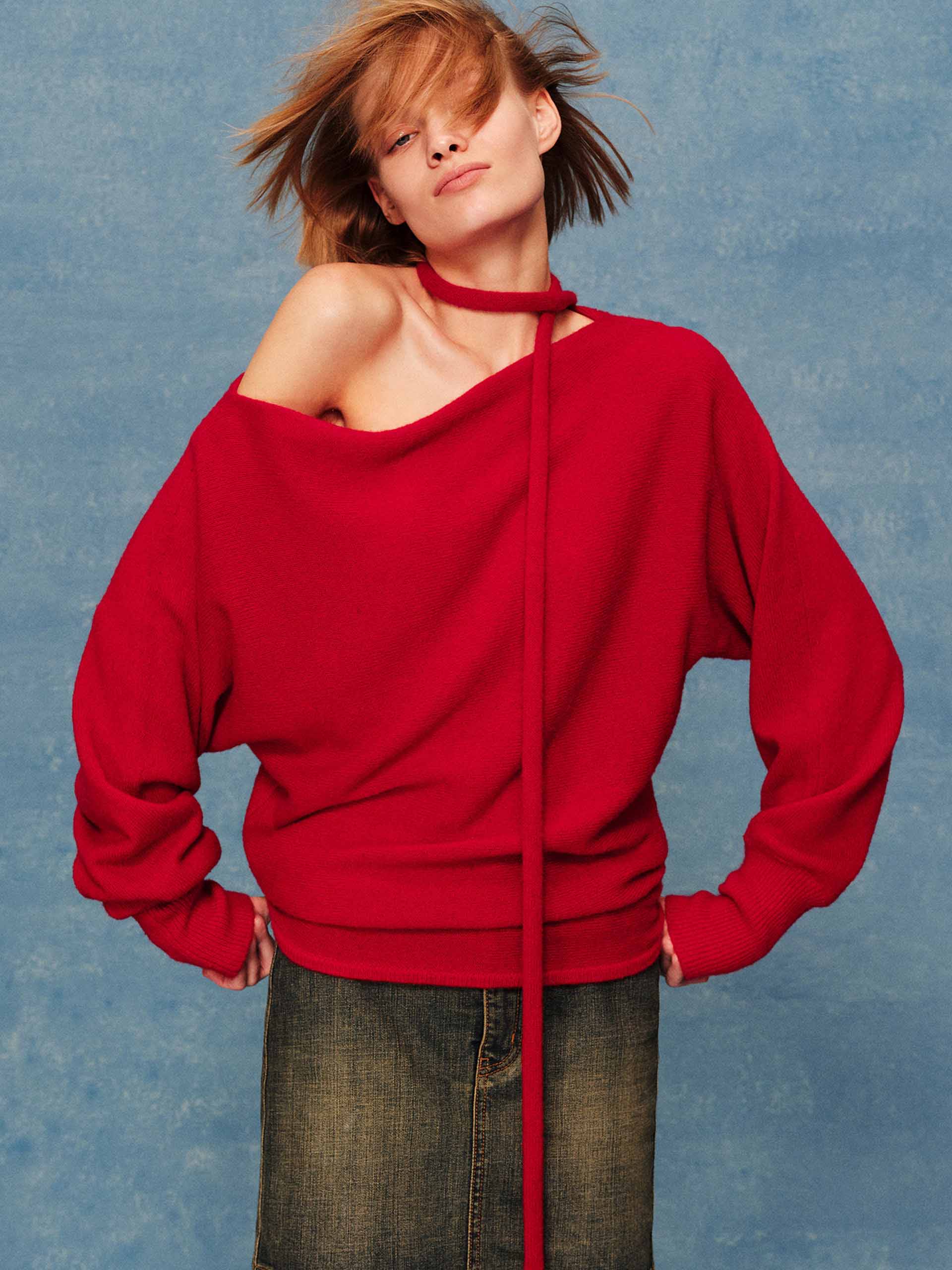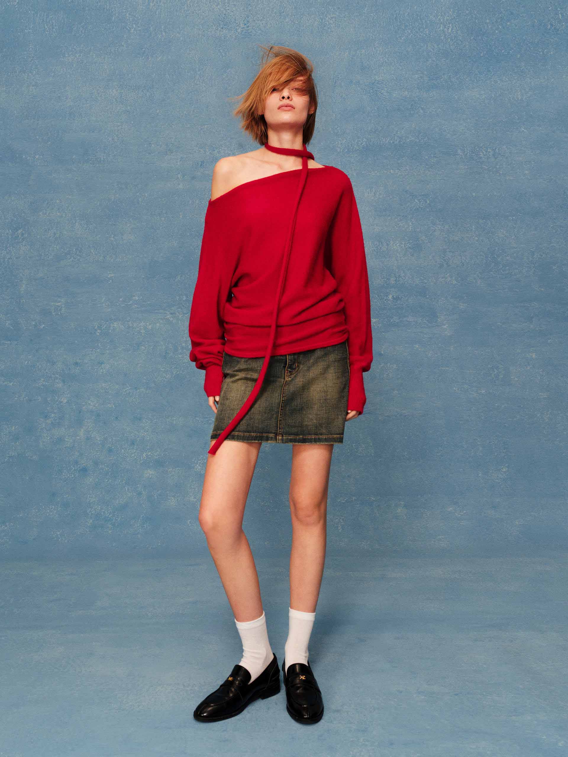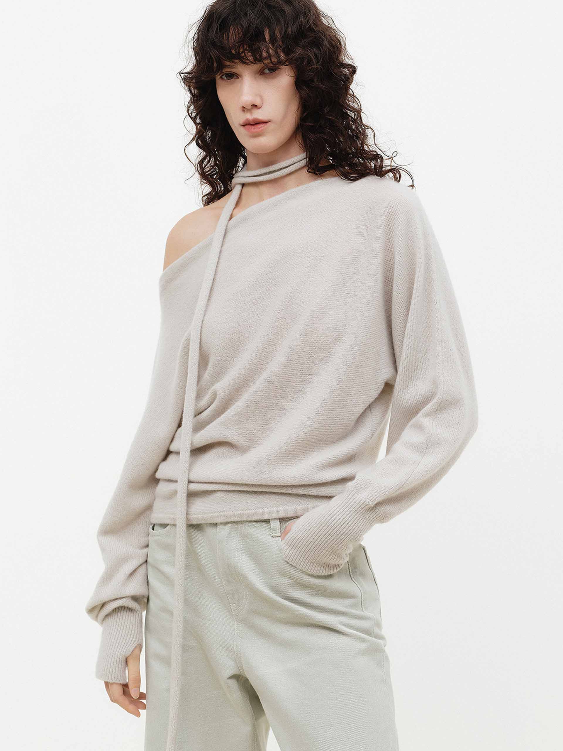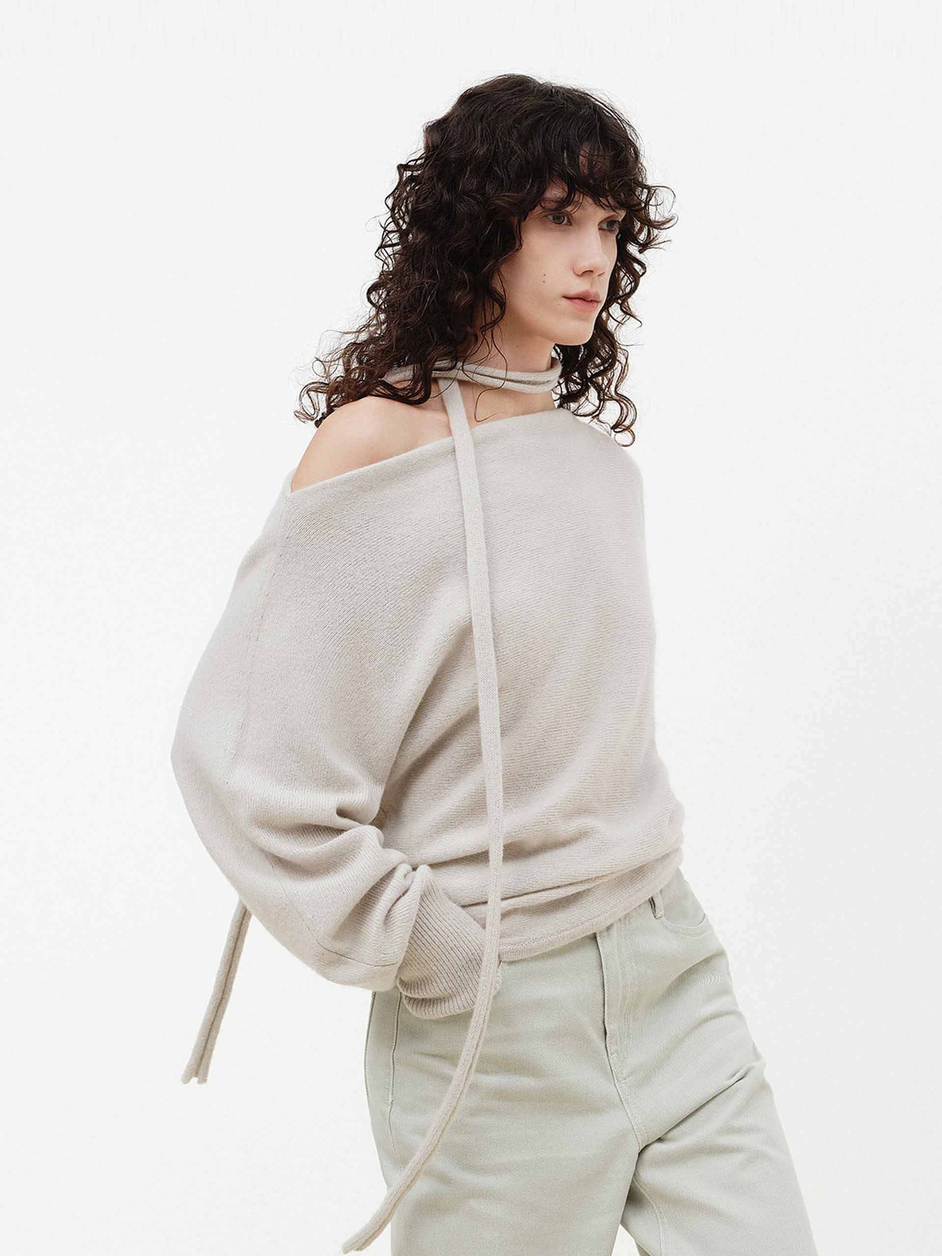 Tie Detail Off-shoulder Sweater