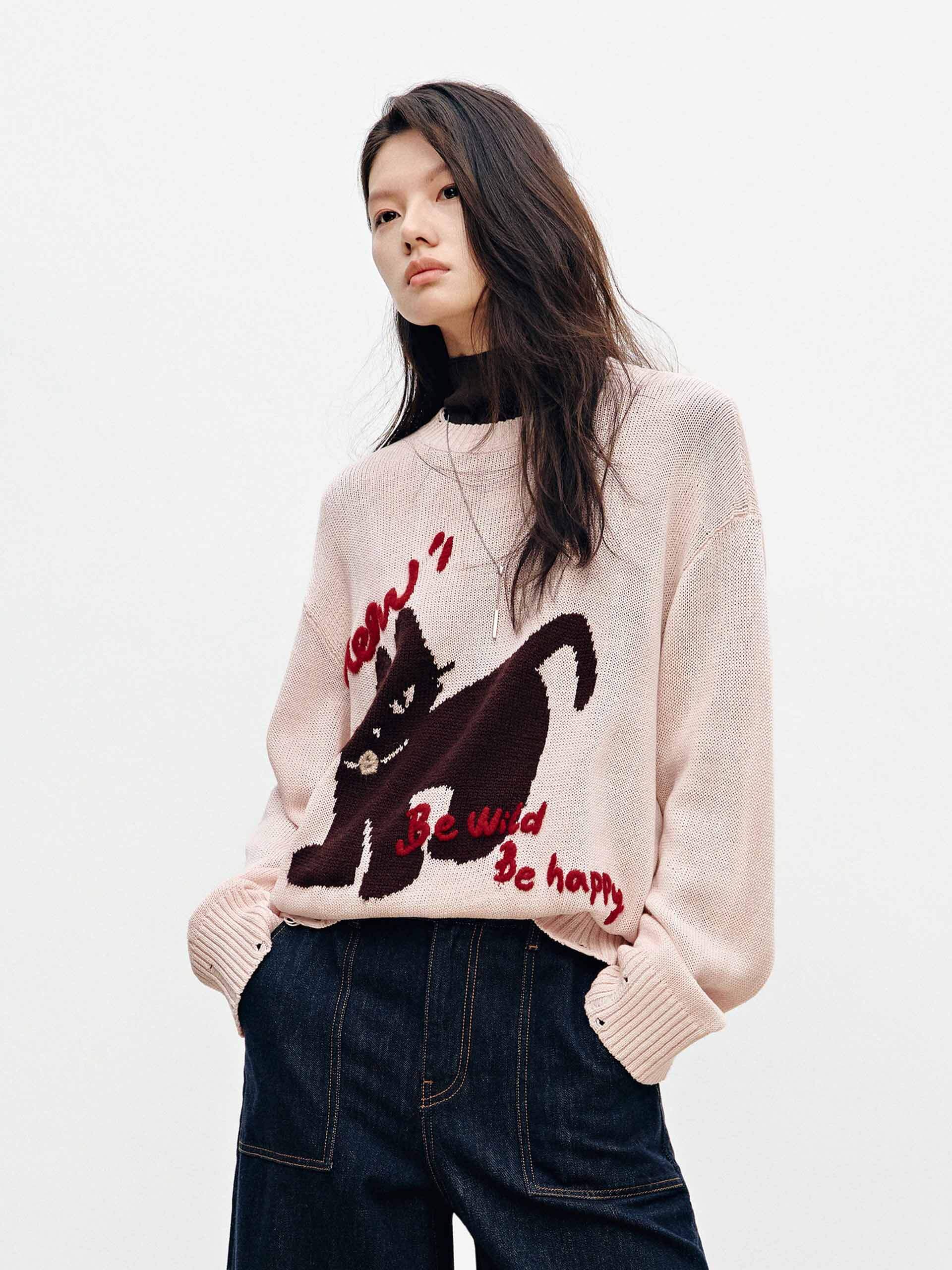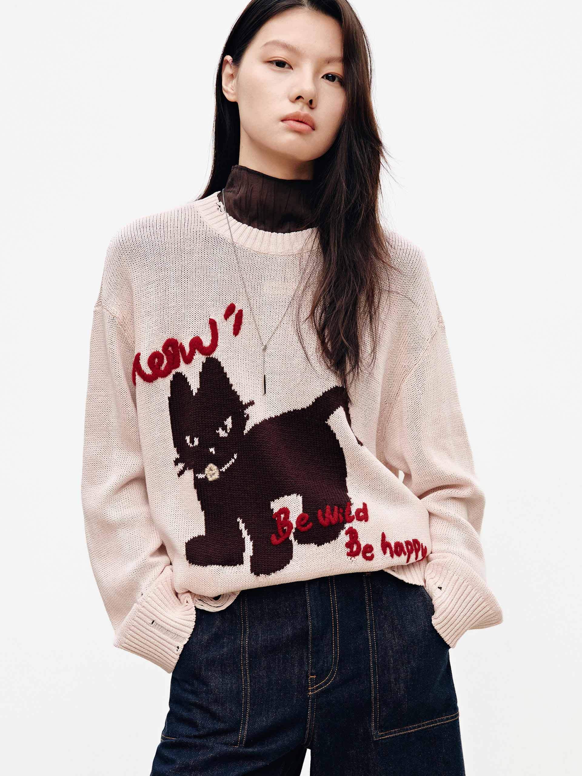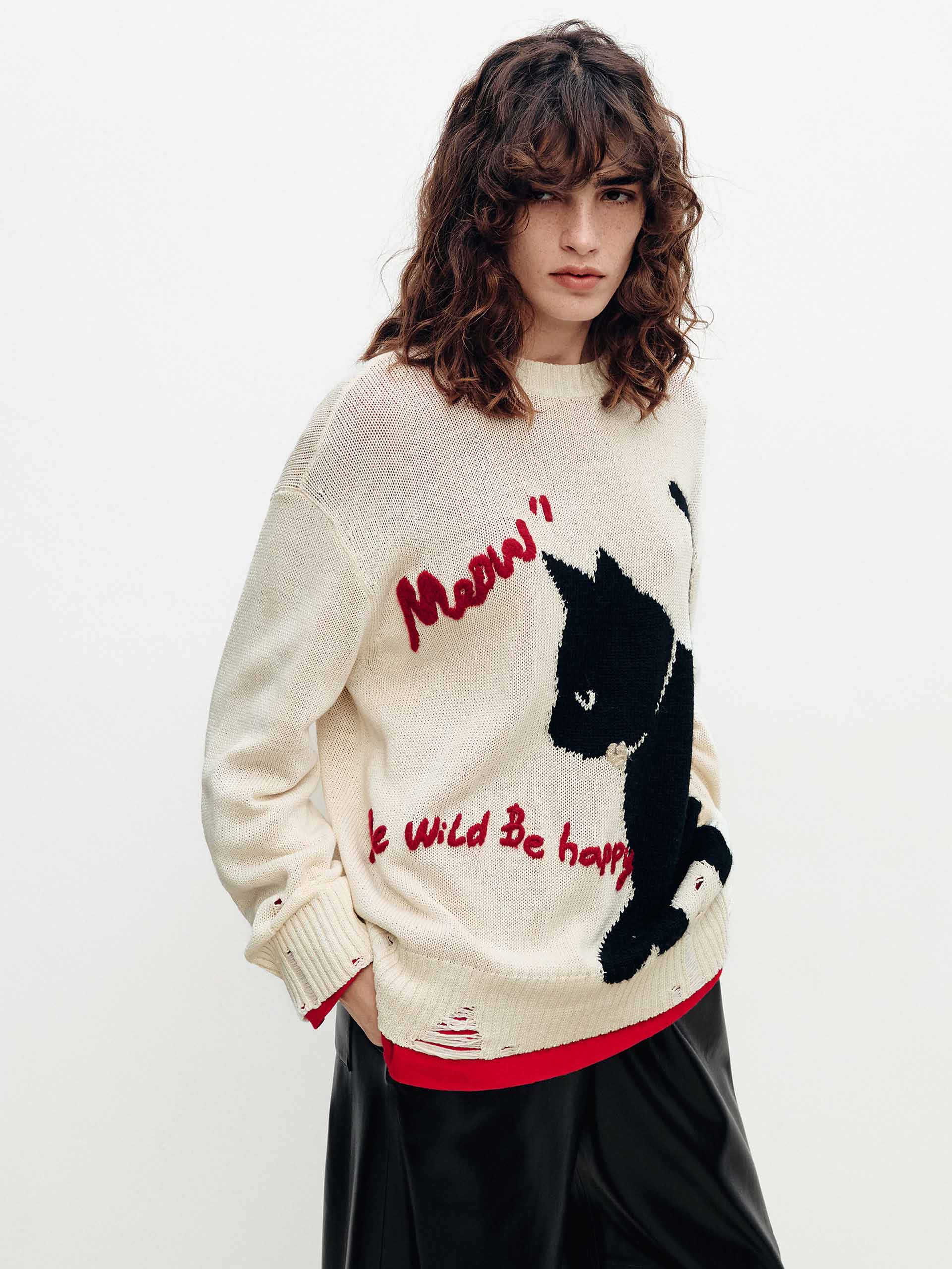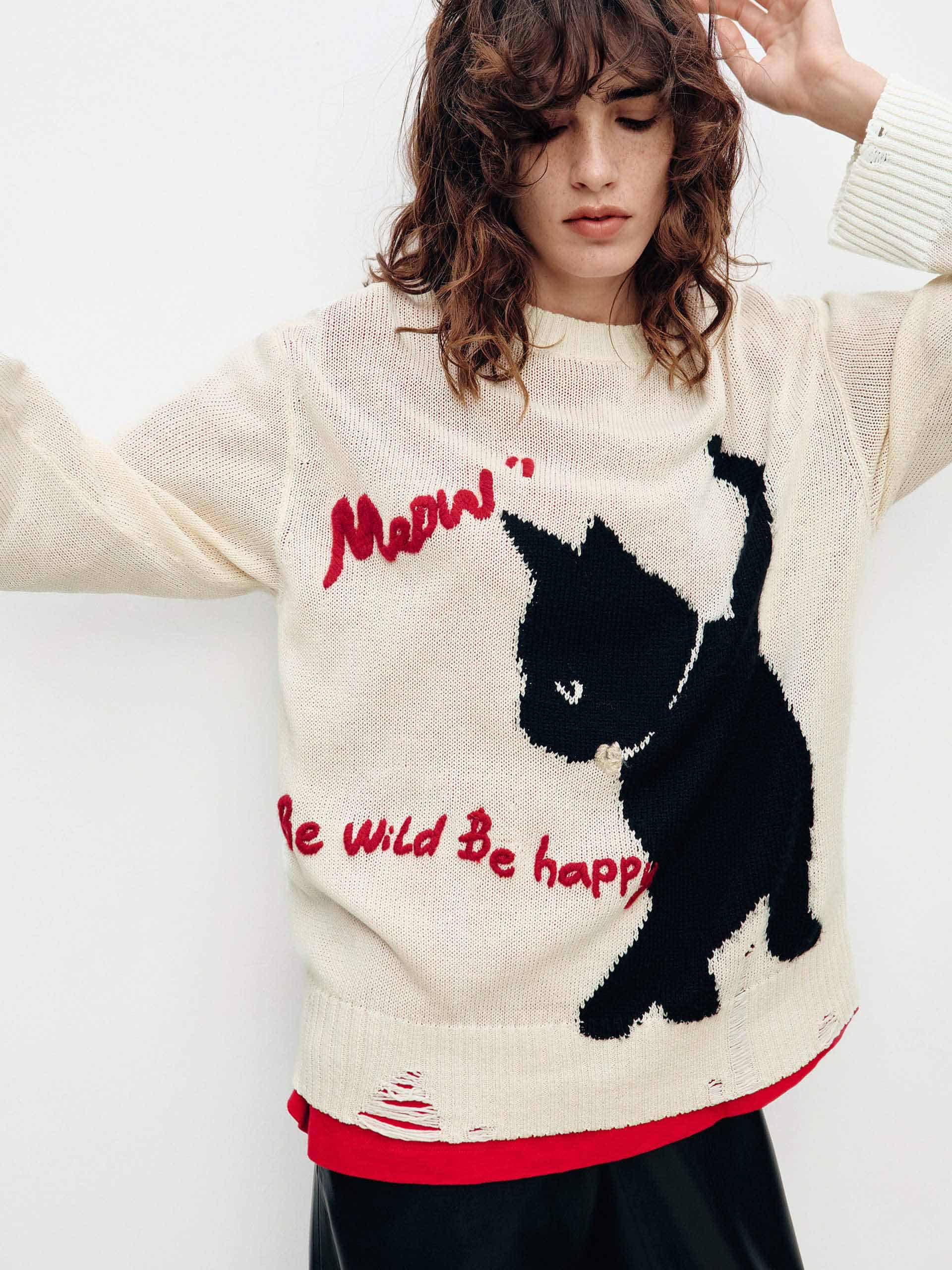 Contrast Cat Ripped Sweater