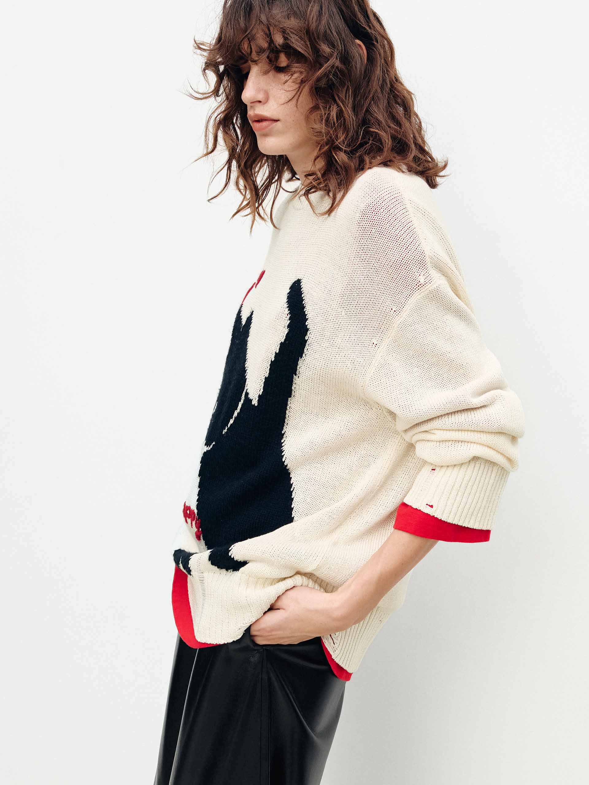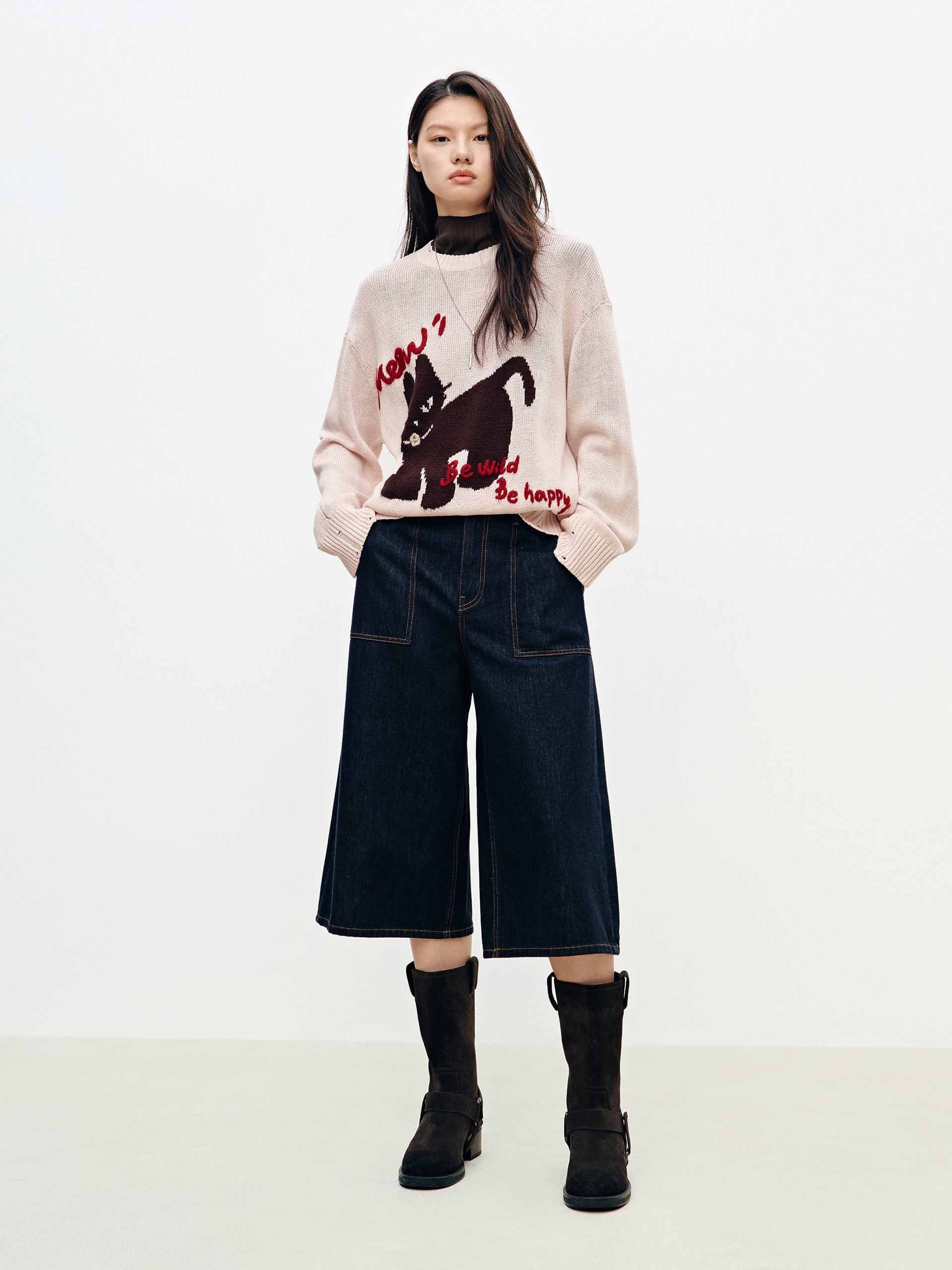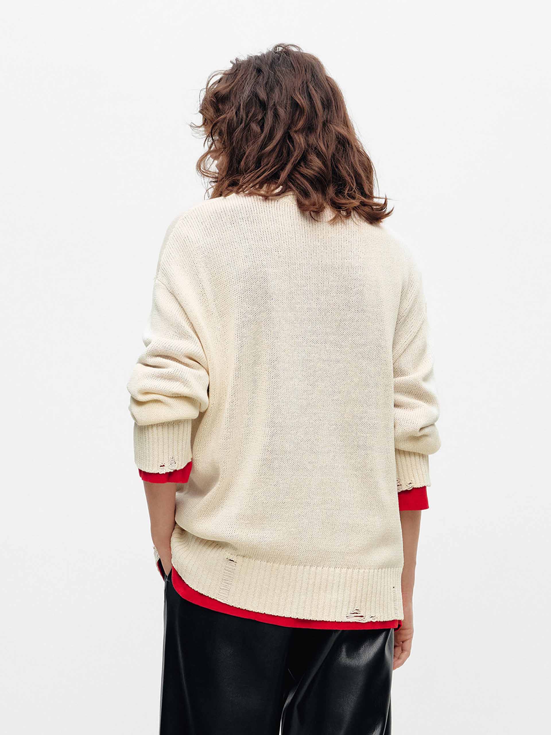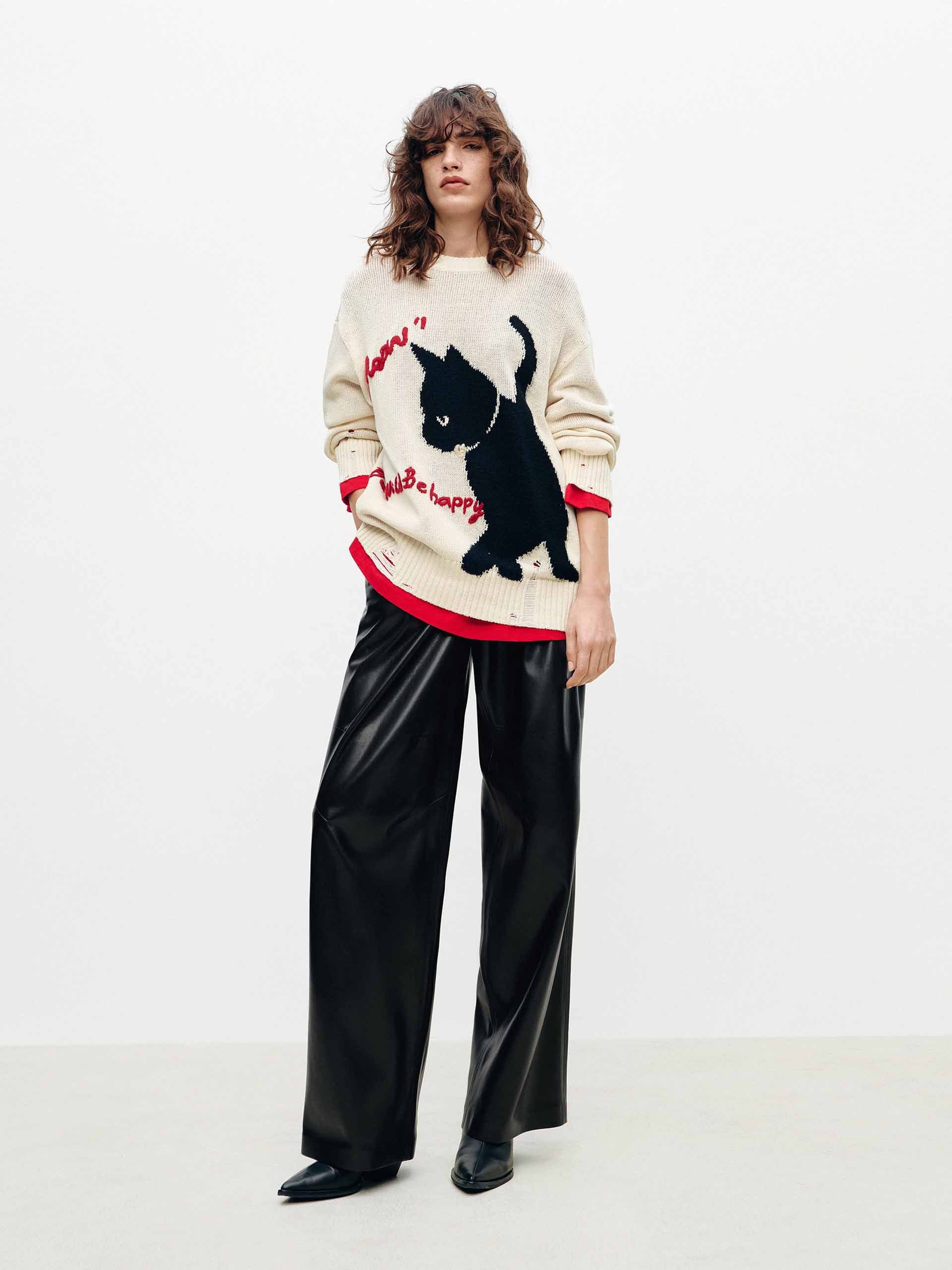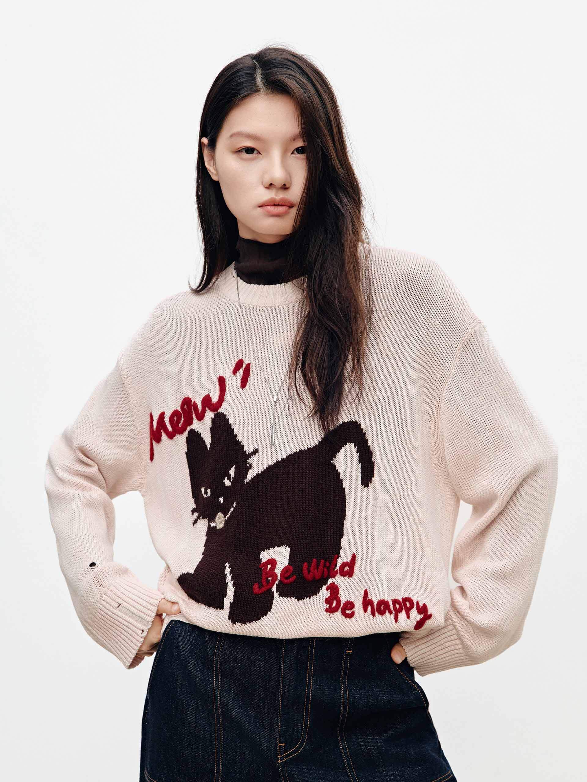 Contrast Cat Ripped Sweater