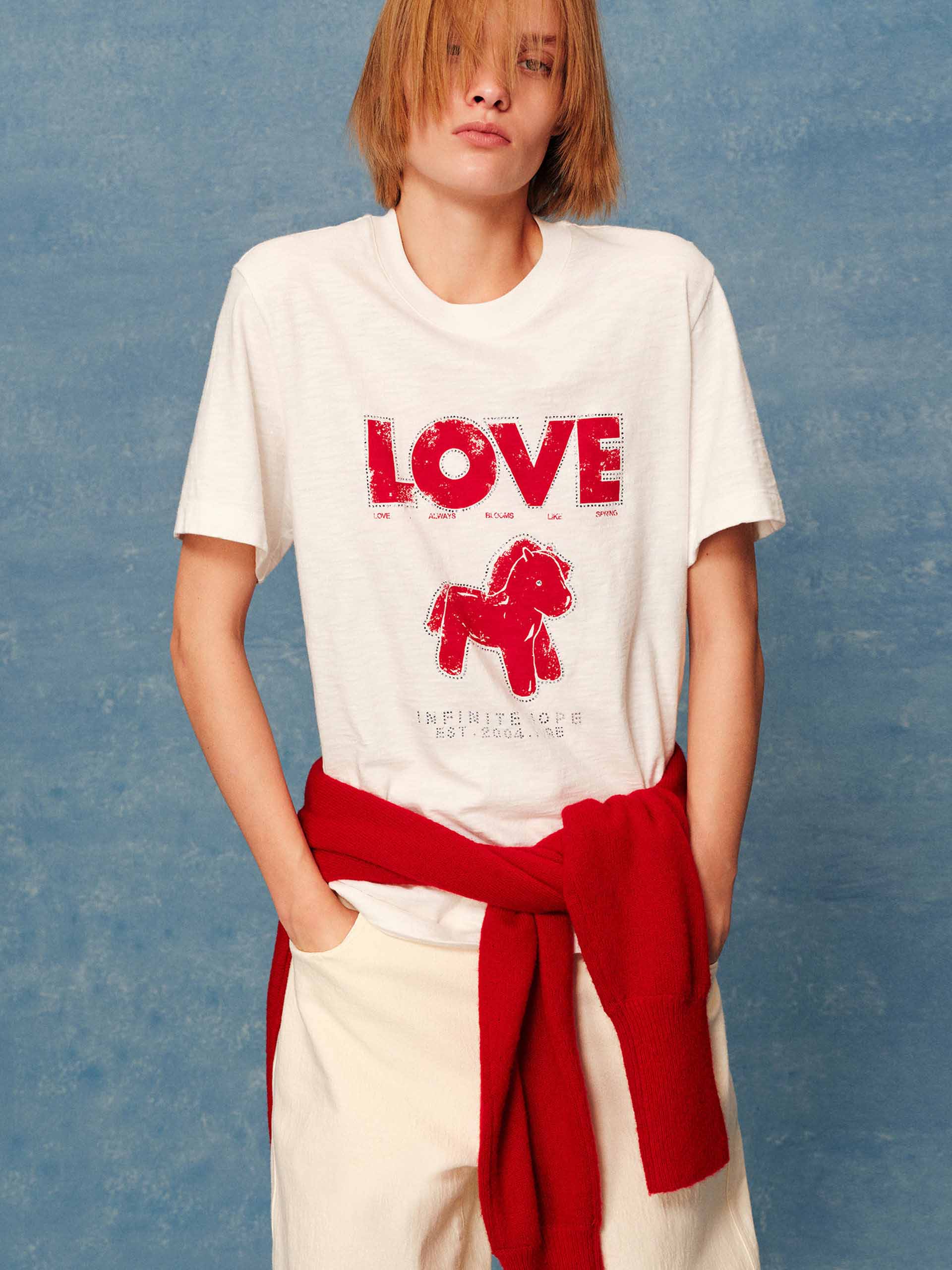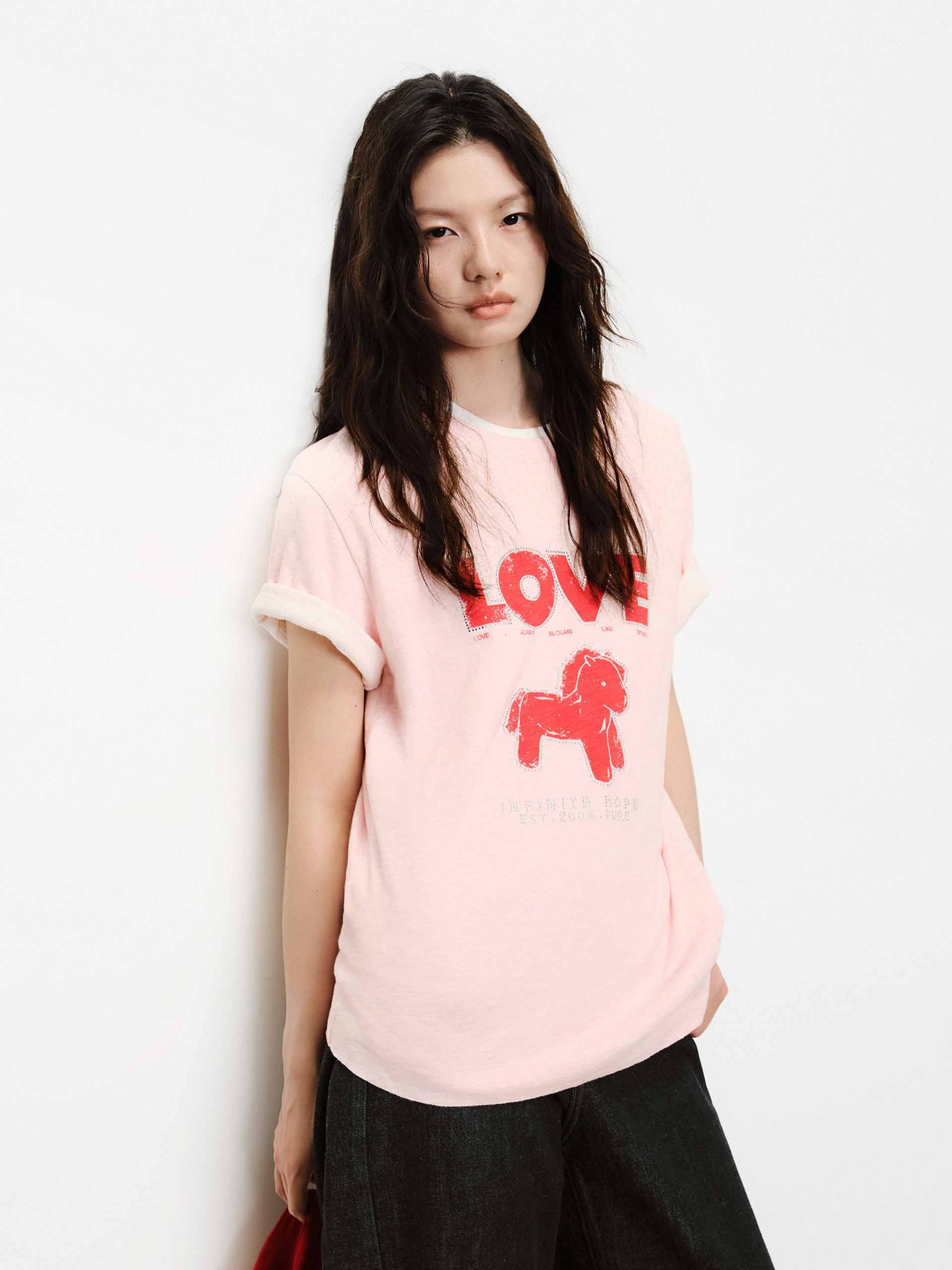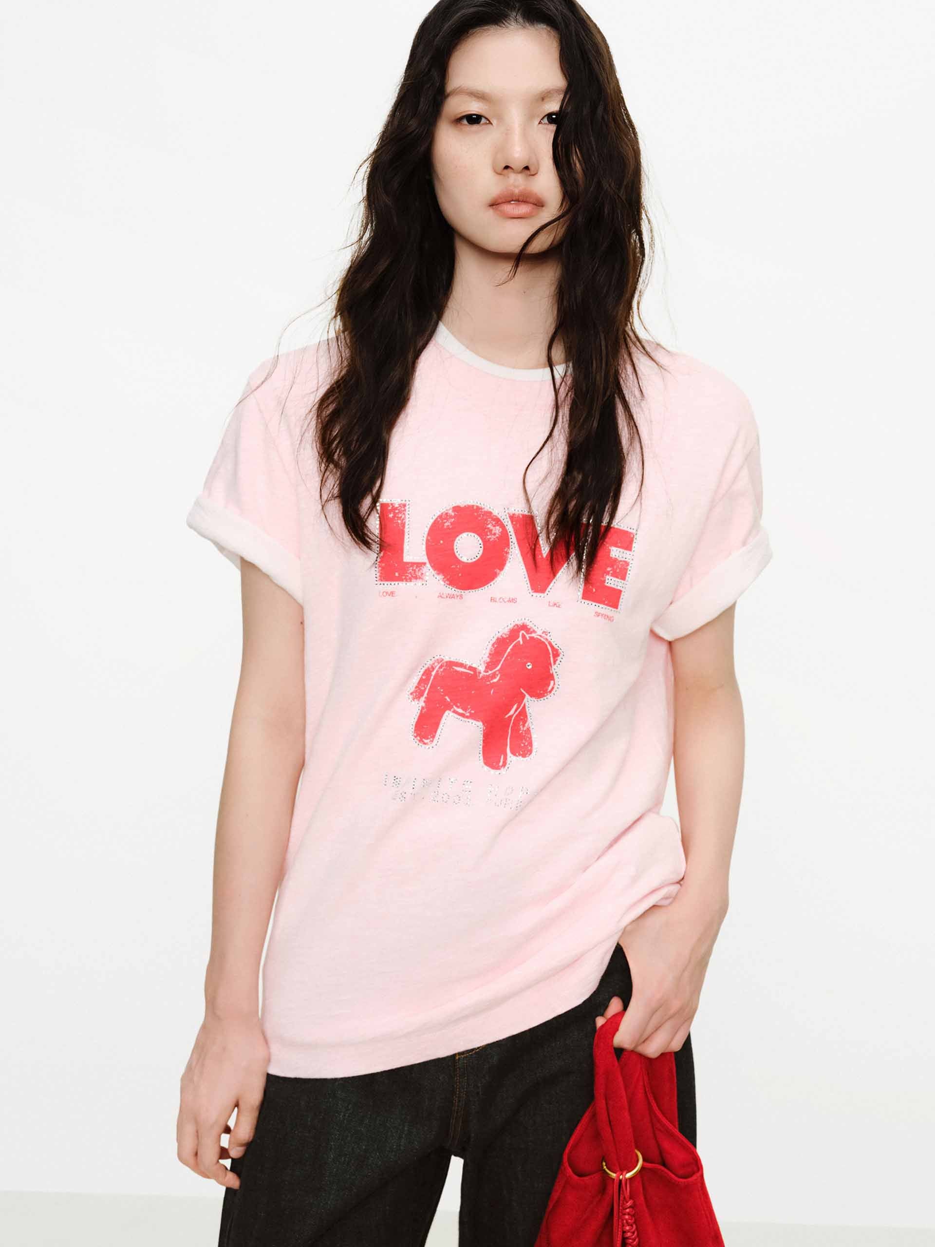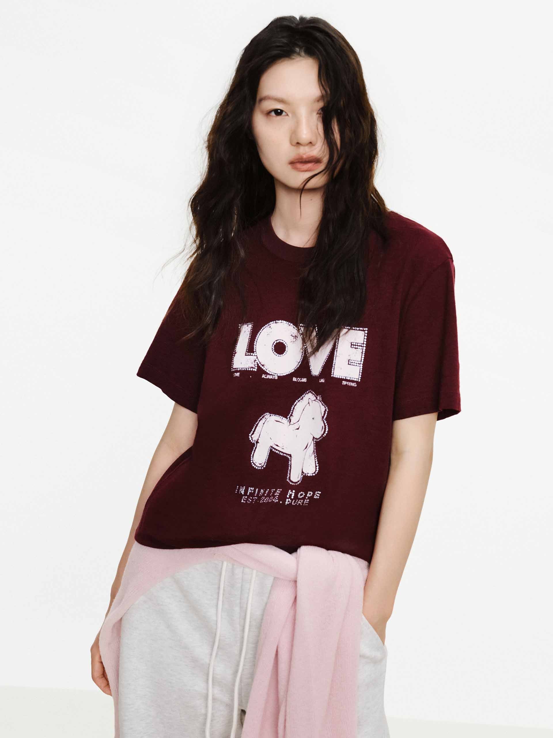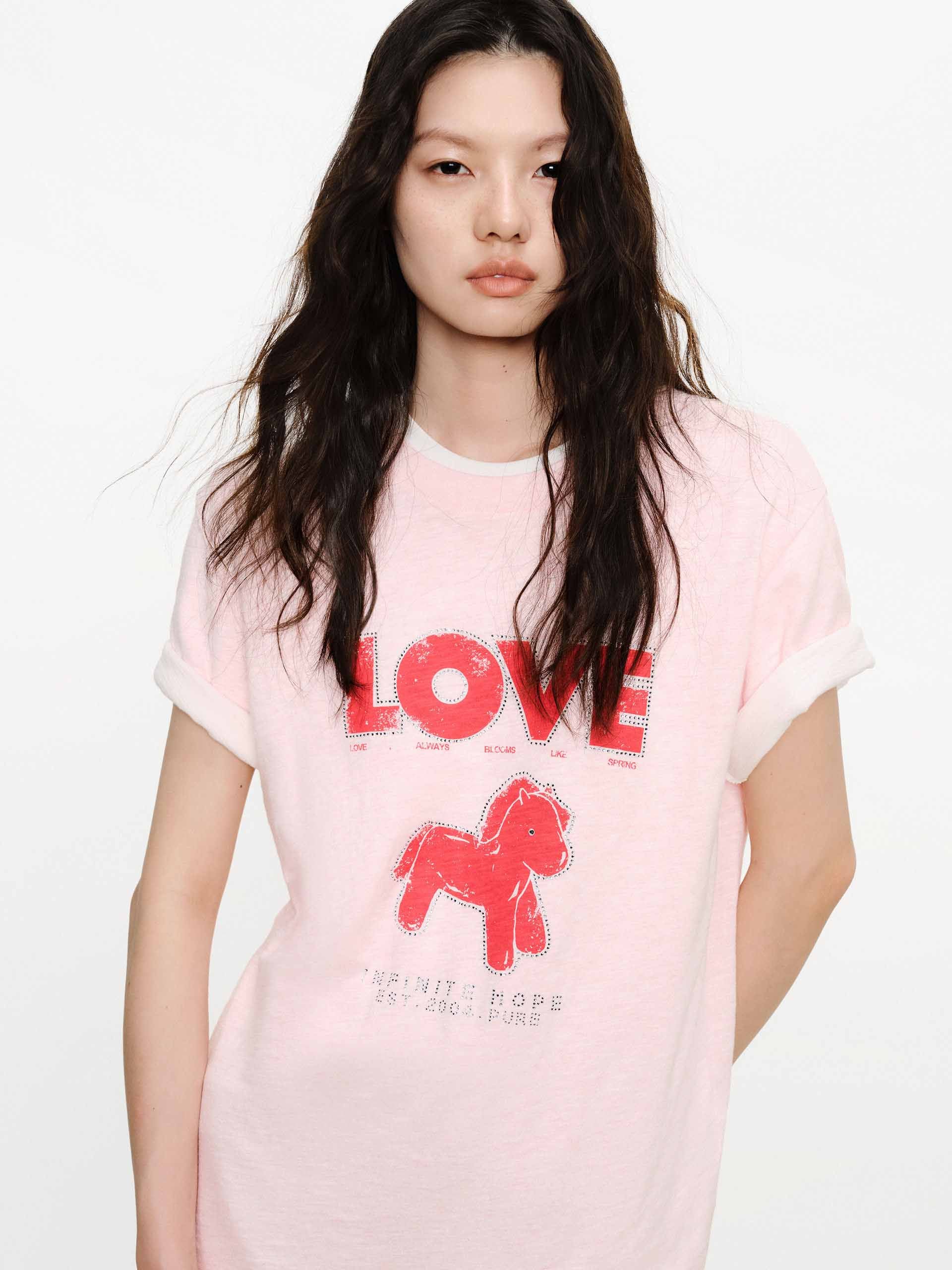 Front Rhinestone Cotton T-shirt