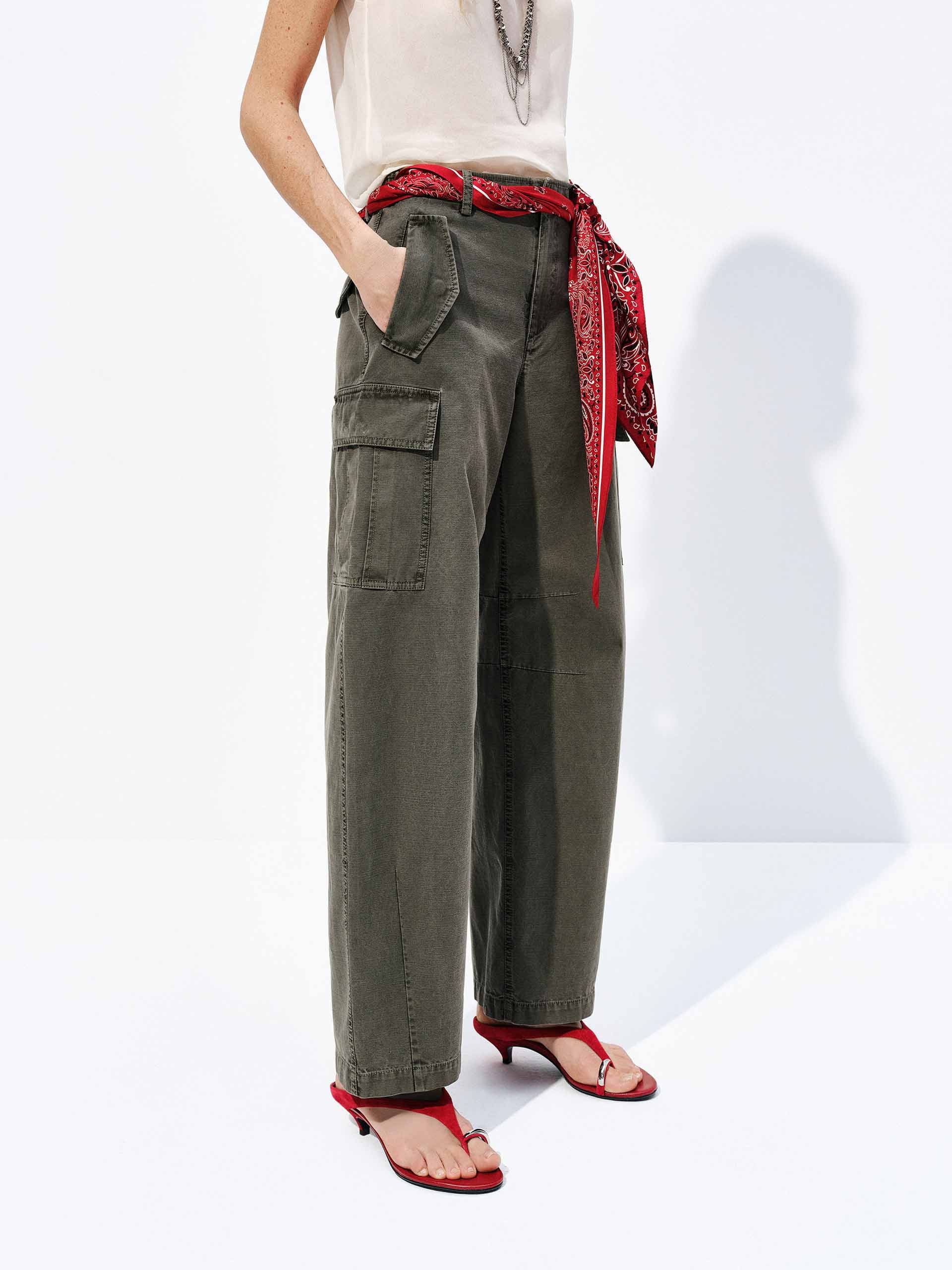 - Cargo style, distressed wash cotton