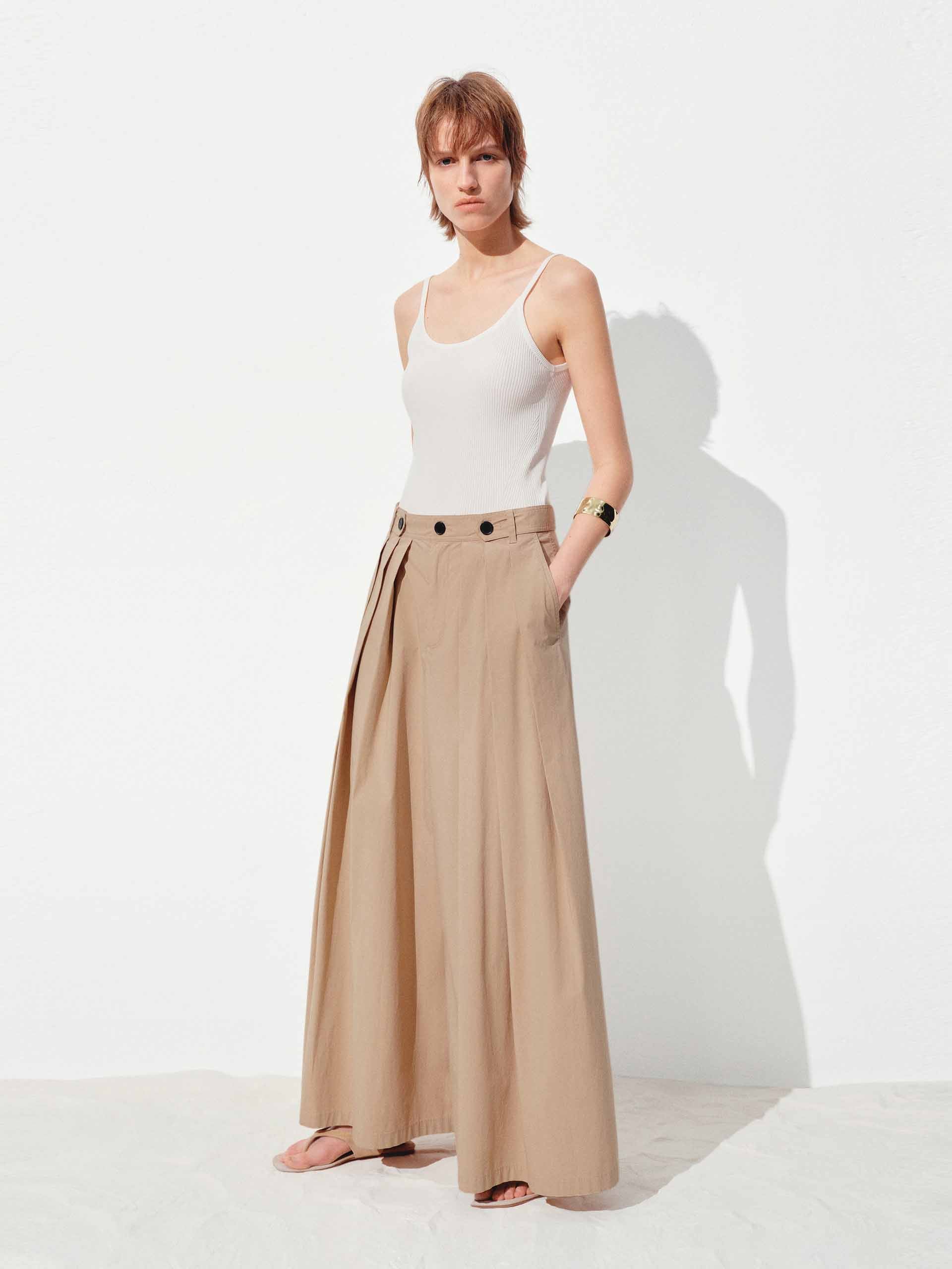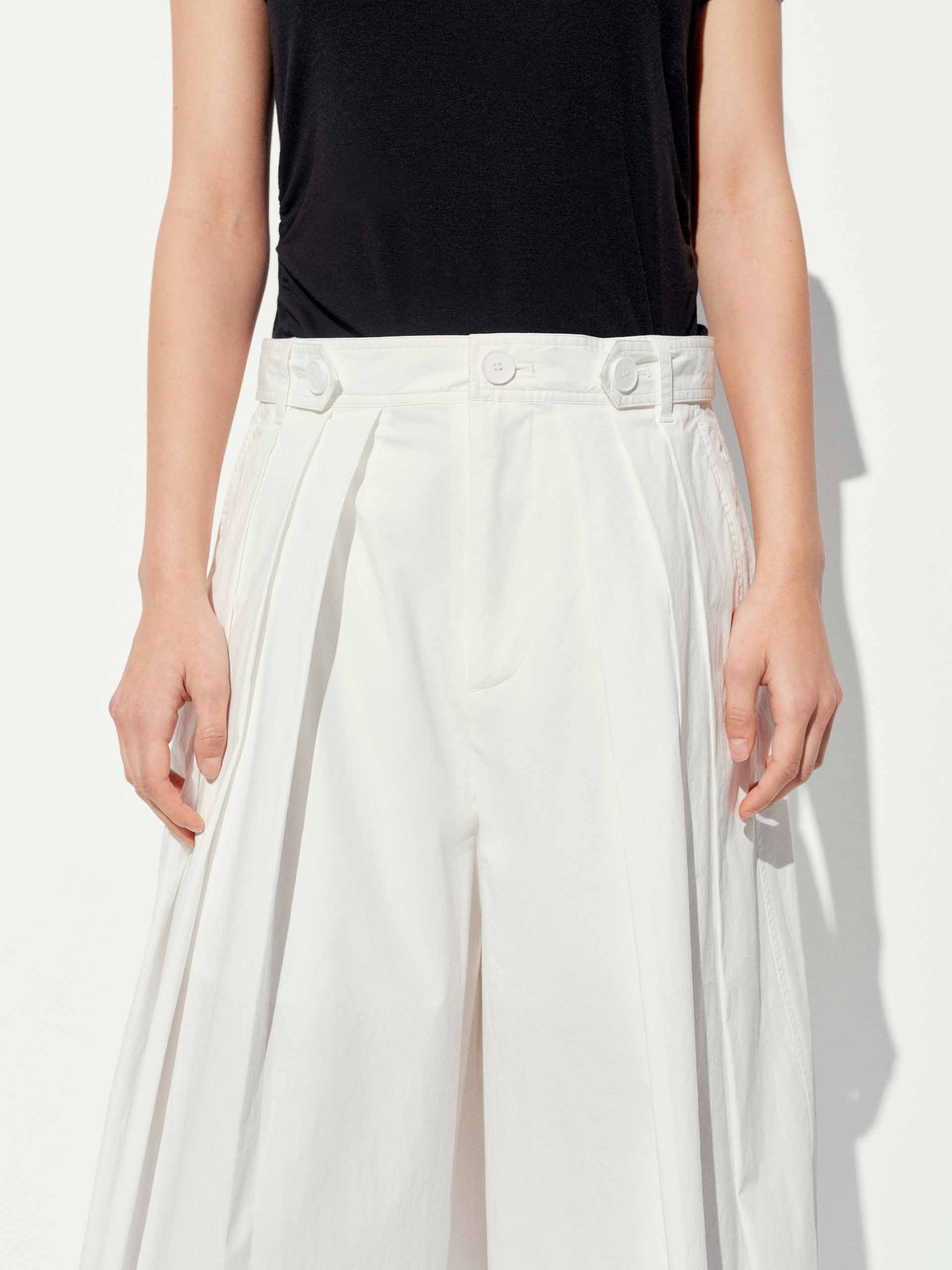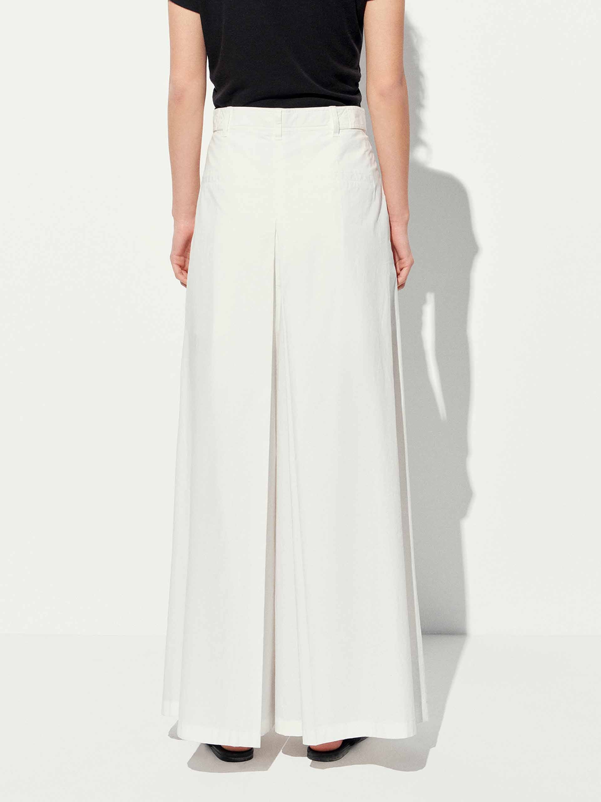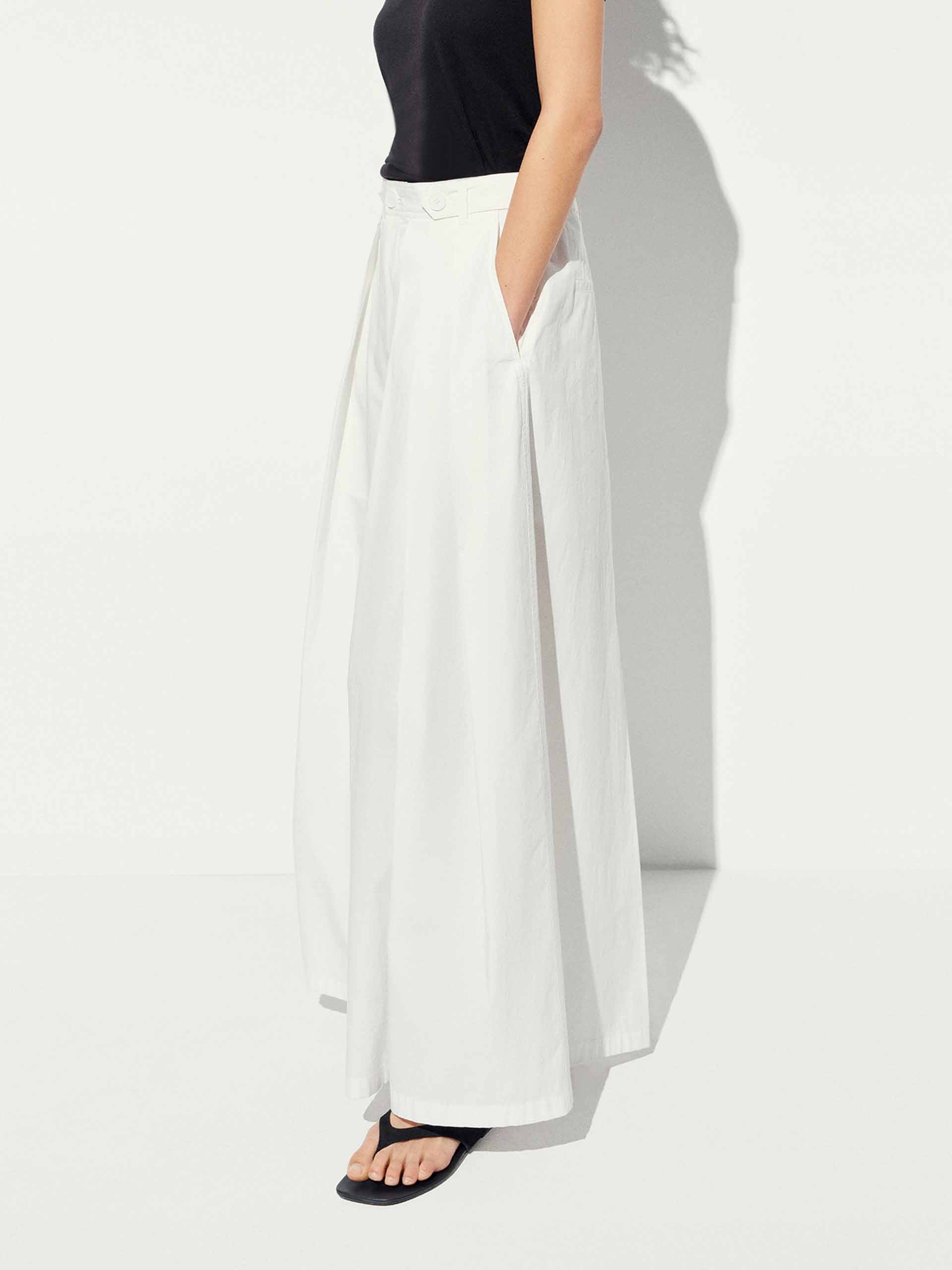 Elevate your wardrobe with these wide-leg trousers, designed to blend classic tailoring with contemporary ease. The elegant pleated detailing adds structure and movement. Thoughtful design elements like the discreet side pockets and adjustable side tabs ensure both functionality and a customized fit.
