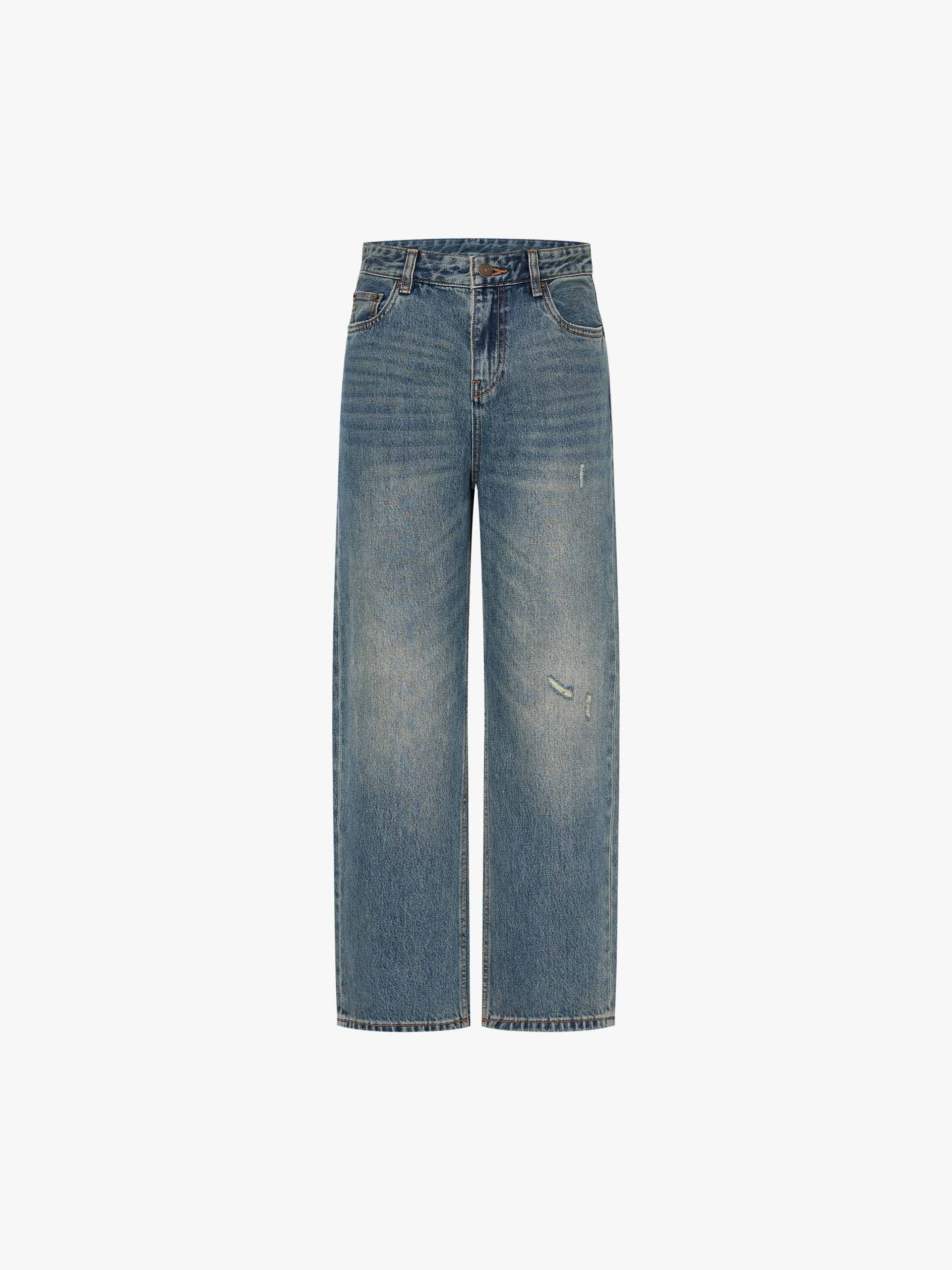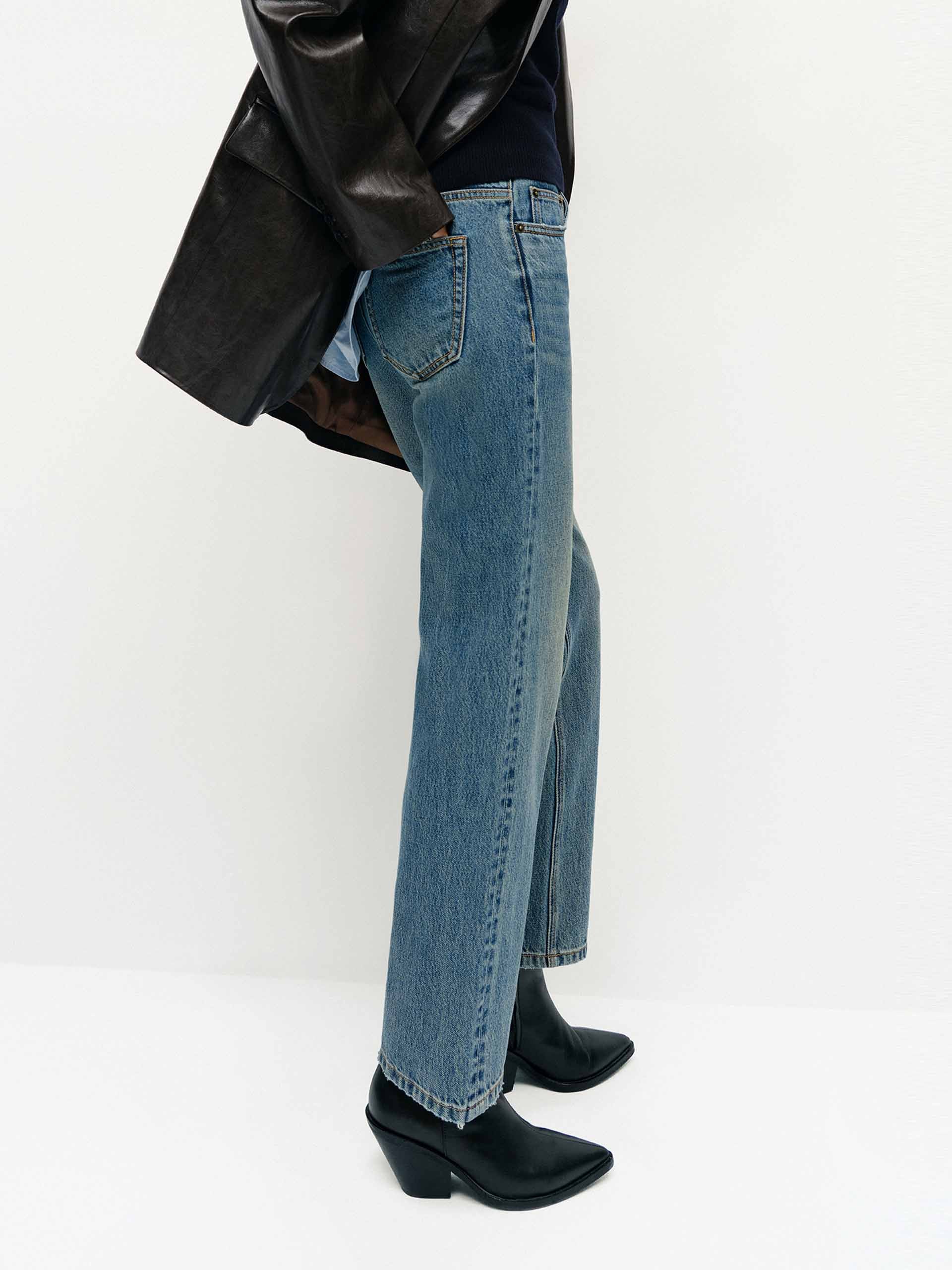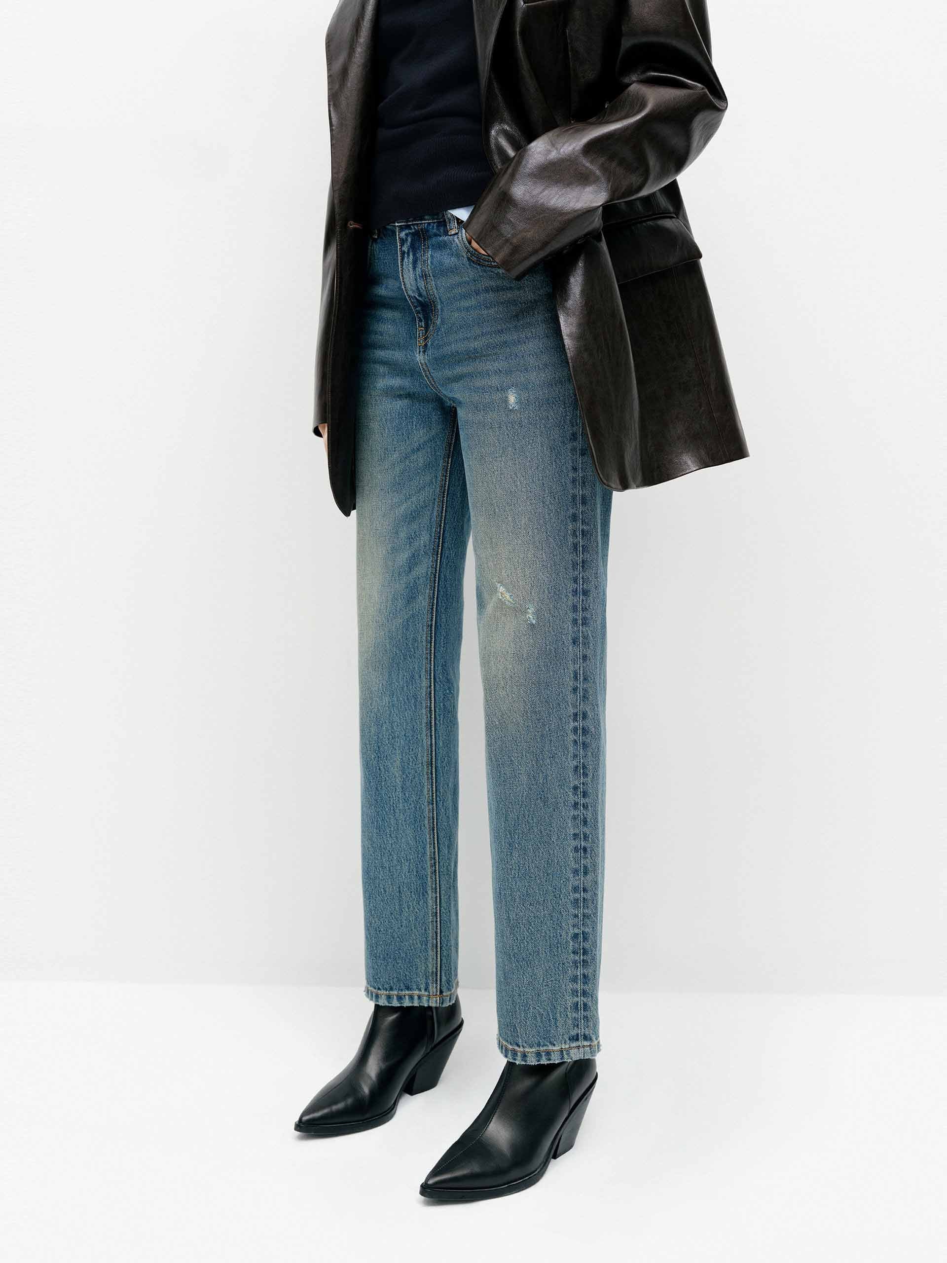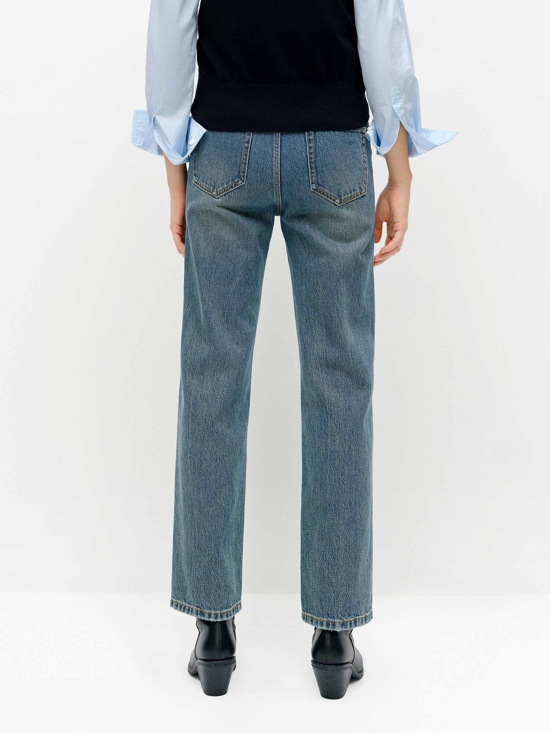 Expertly crafted from pure cotton denim, these jeans offer a classic light-blue wash that will work for all seasons. Designed with a classic five-pocket and distressed detail at the front thigh. It's cut in an ankle length that is perfect for pairing with short boots.
