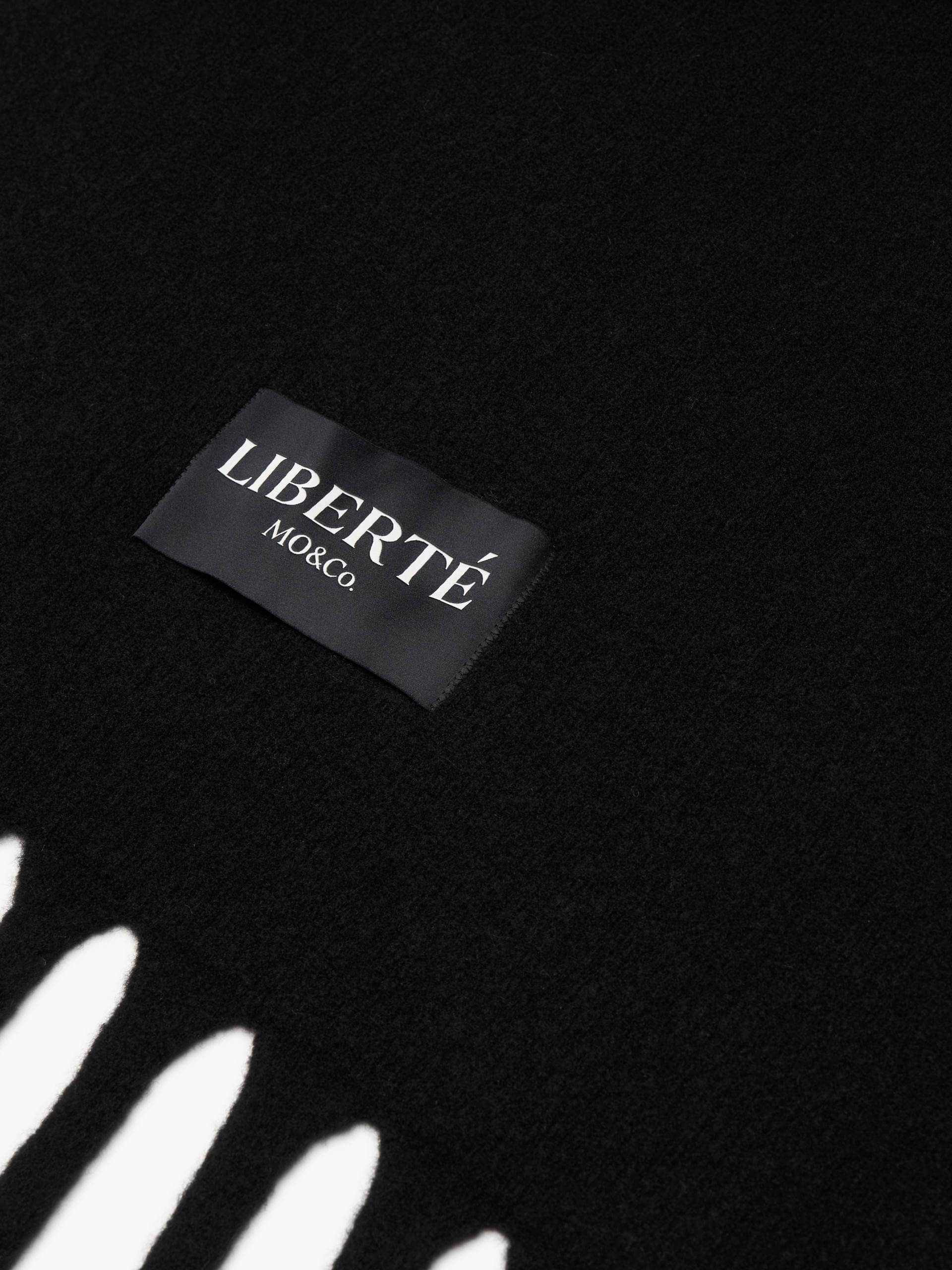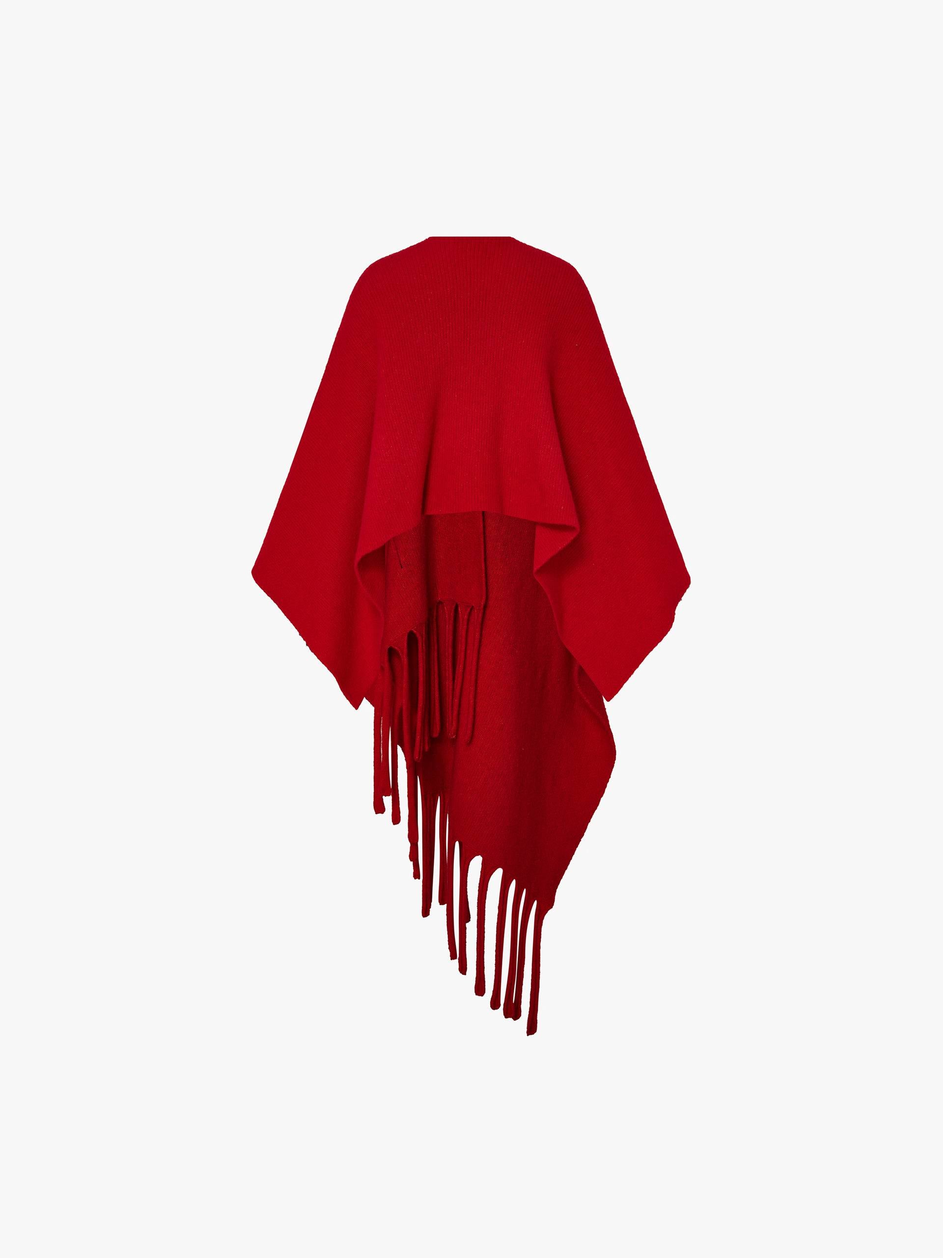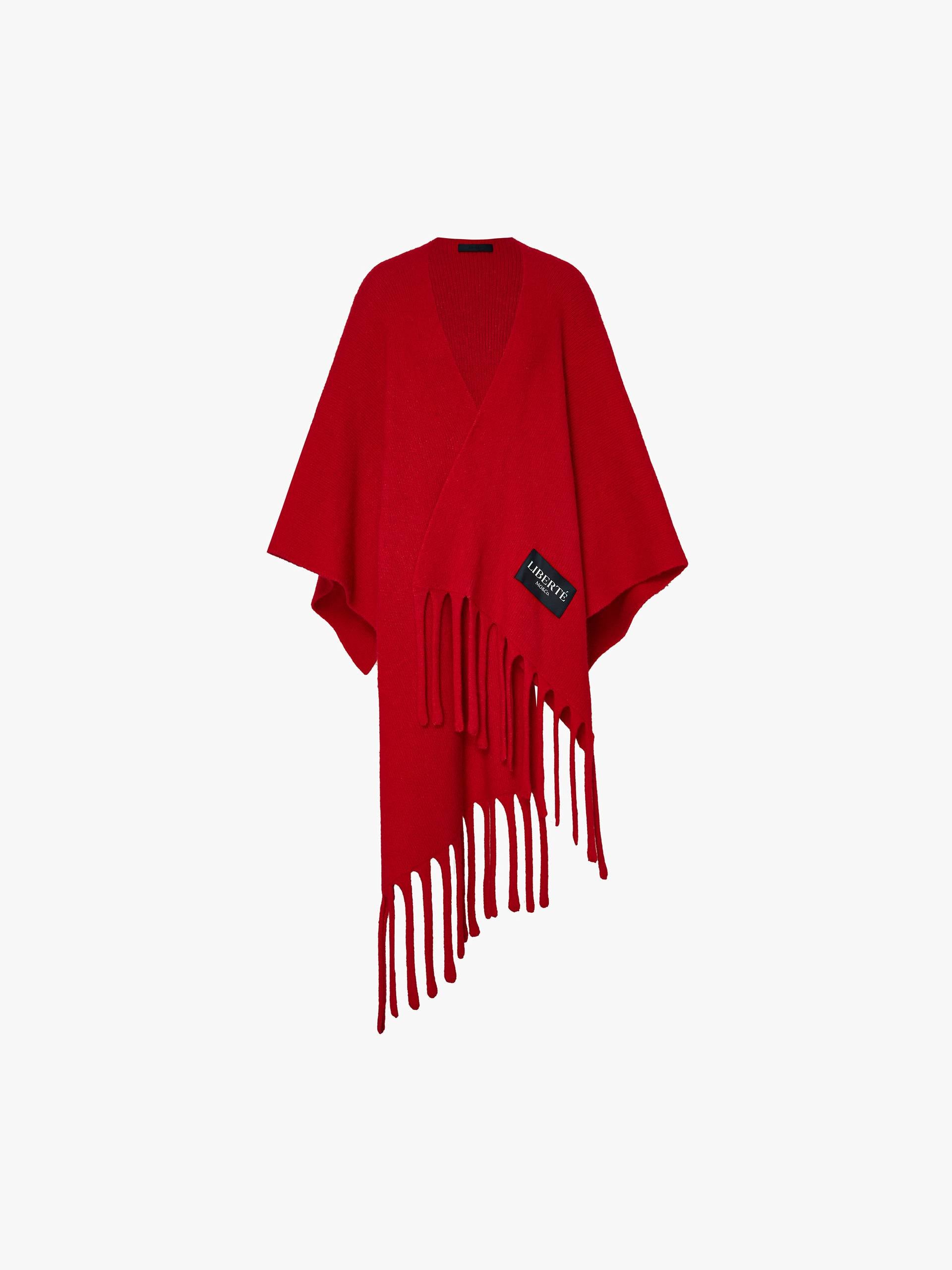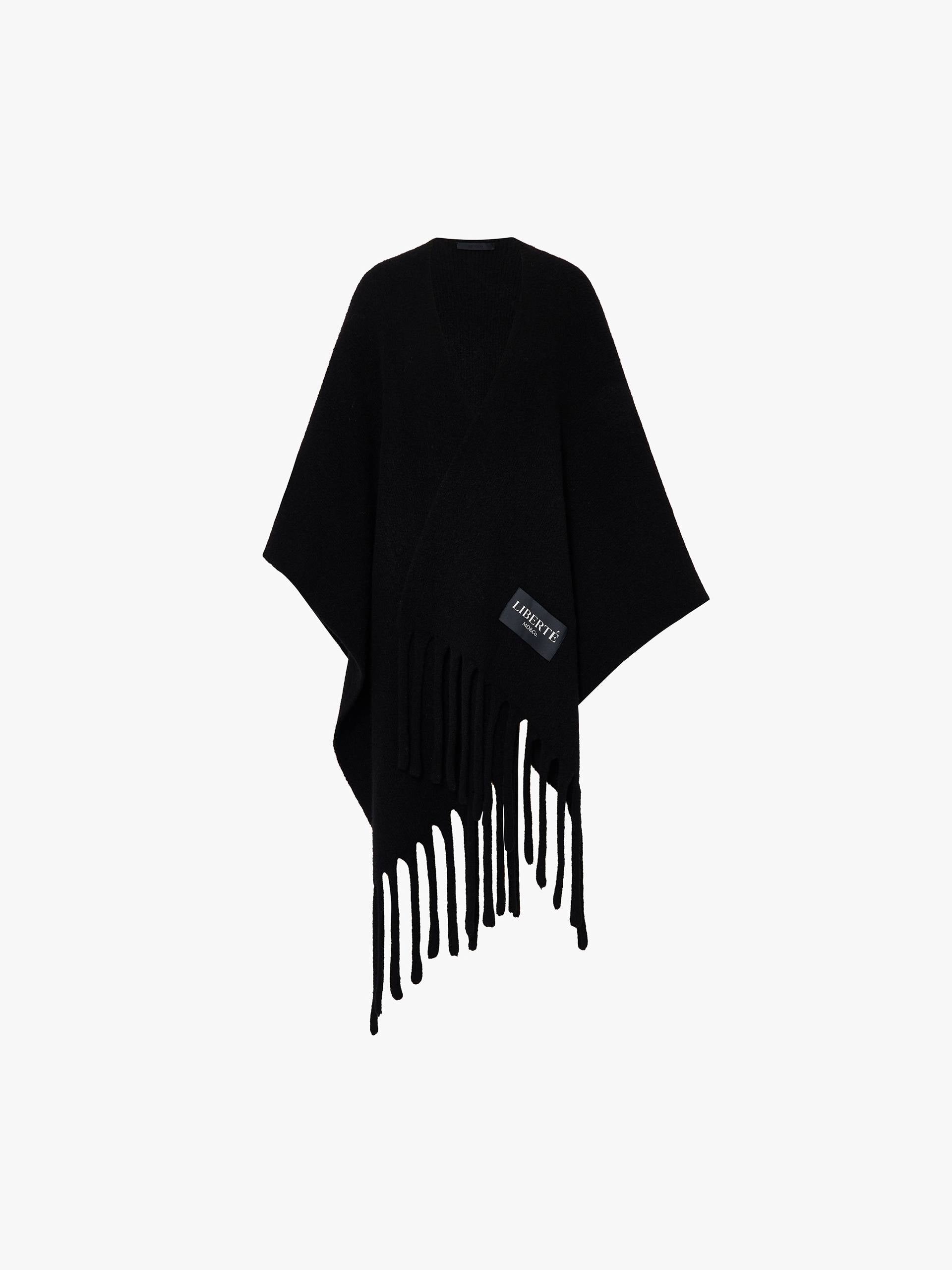 Embrace effortless elegance with the scarf. Crafted from a luxurious blend of wool, it offers a perfect balance of softness, warmth, and durable flexibility. It's a sophisticated, asymmetrical wrap that drapes elegantly over the shoulders. It is finished with a cascade of long, finely detailed fringes that add movement and a touch of bohemian flair.