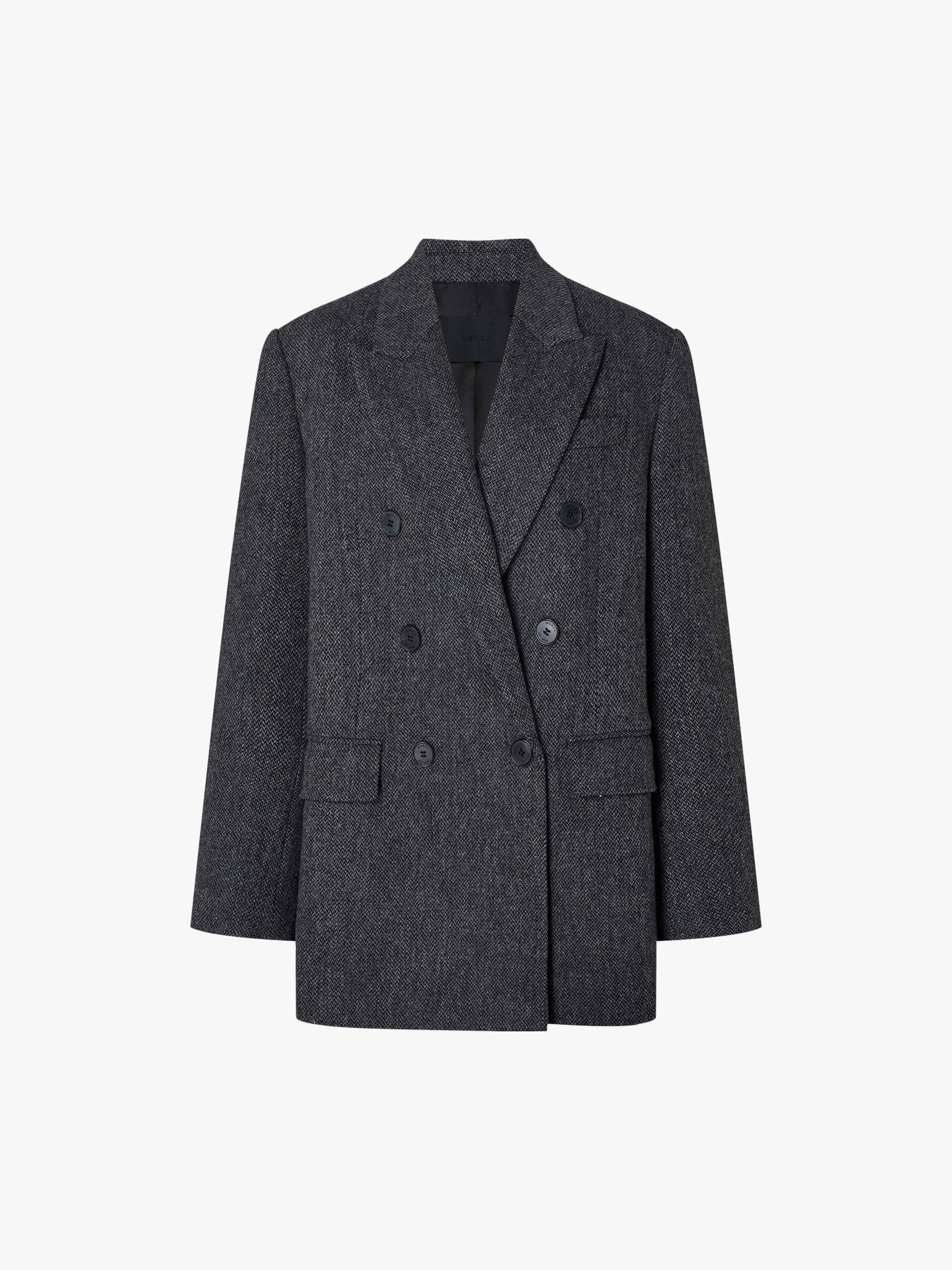 Crafted from 100% premium wool, this blazer masterfully blends timeless sophistication with contemporary glamour. The structured silhouette, defined by a classic peak lapel and subtle pad shoulders, creates an authoritative and polished frame. A striking sequin design elevates the piece, ensuring you command attention, while the functional back vent offers ease of movement.