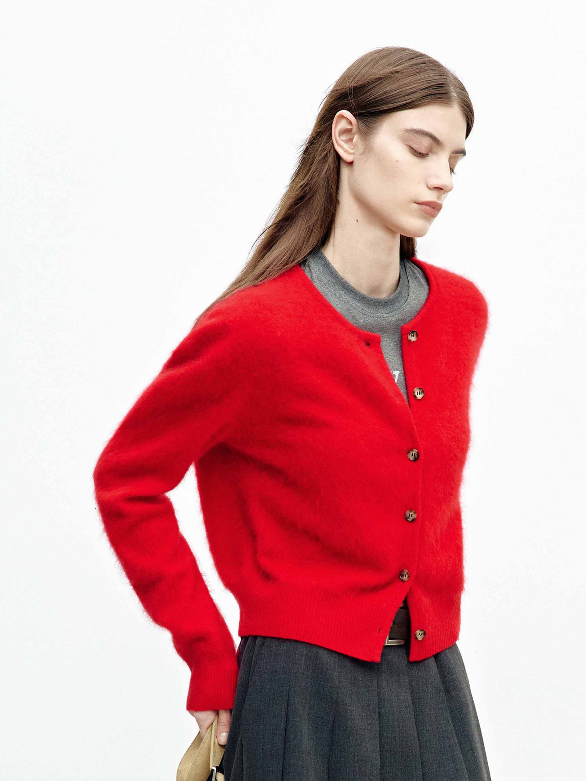 Button Cropped Wool Cardigan
