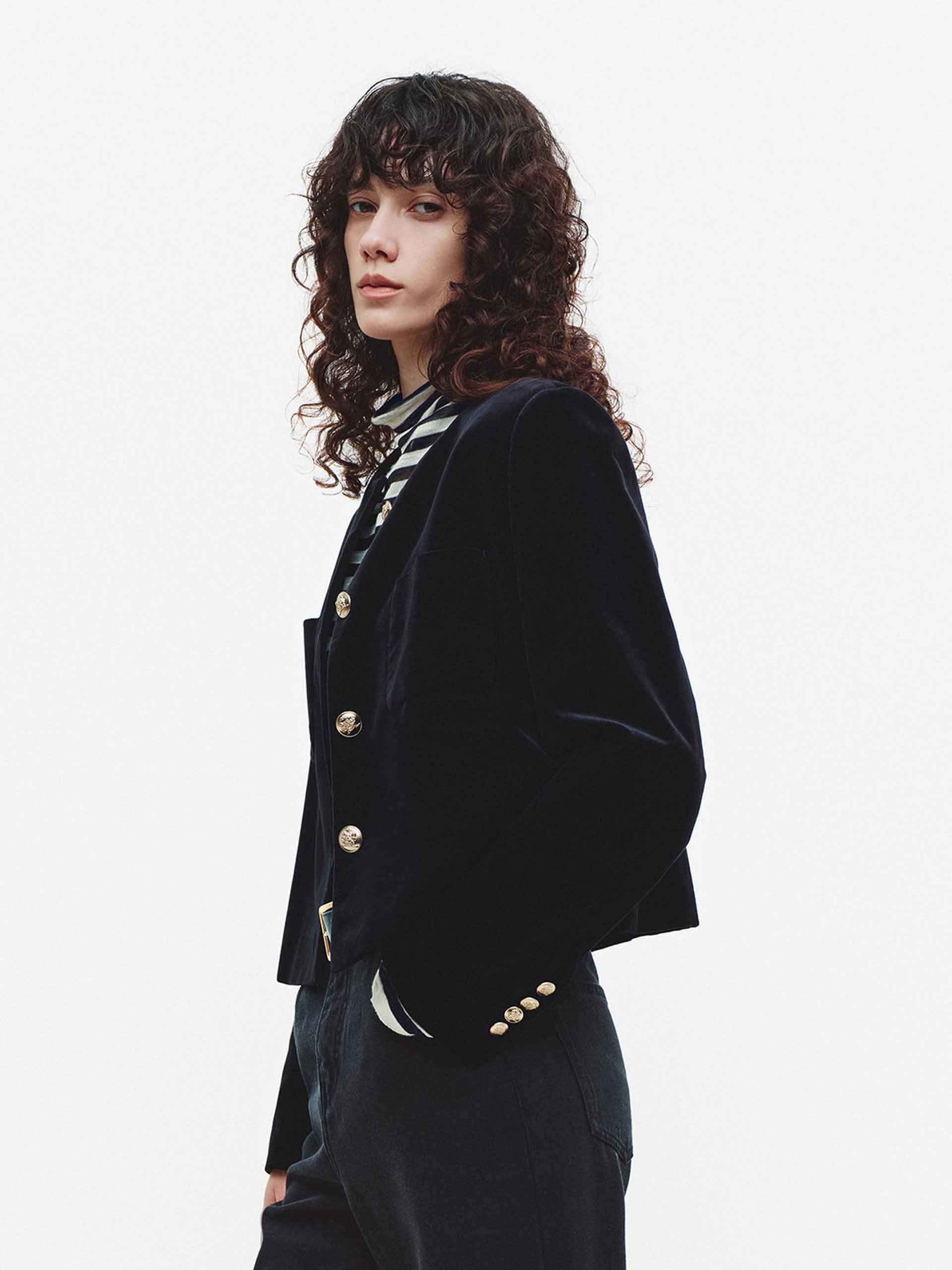 Collarless Cropped Jacket