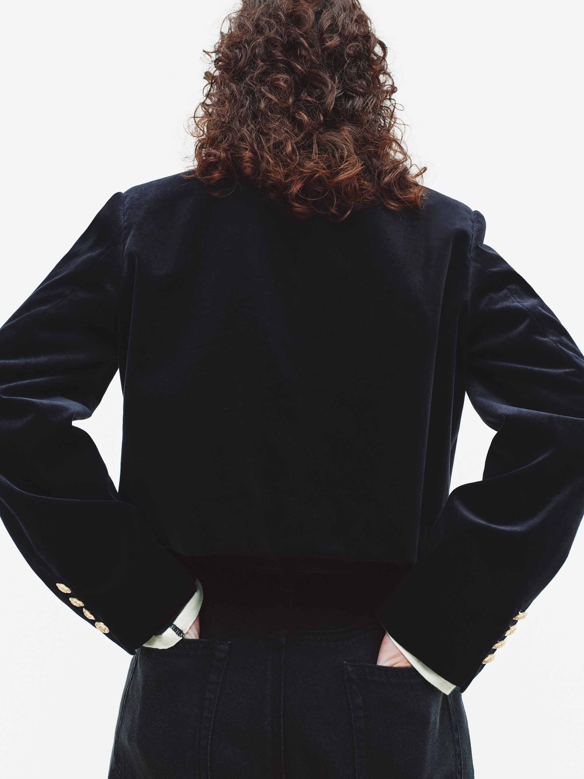 - Cropped fit, soft velvet touch