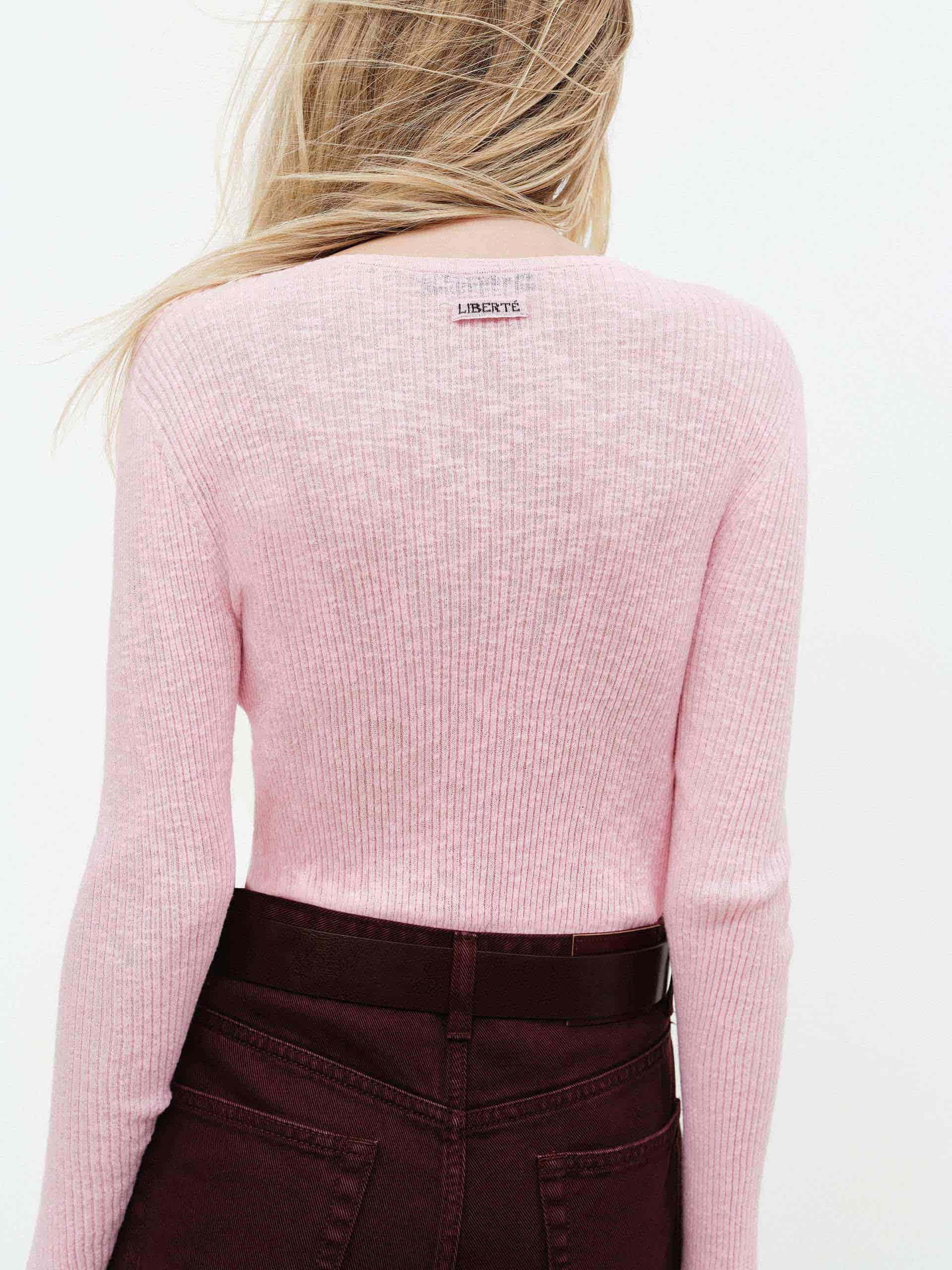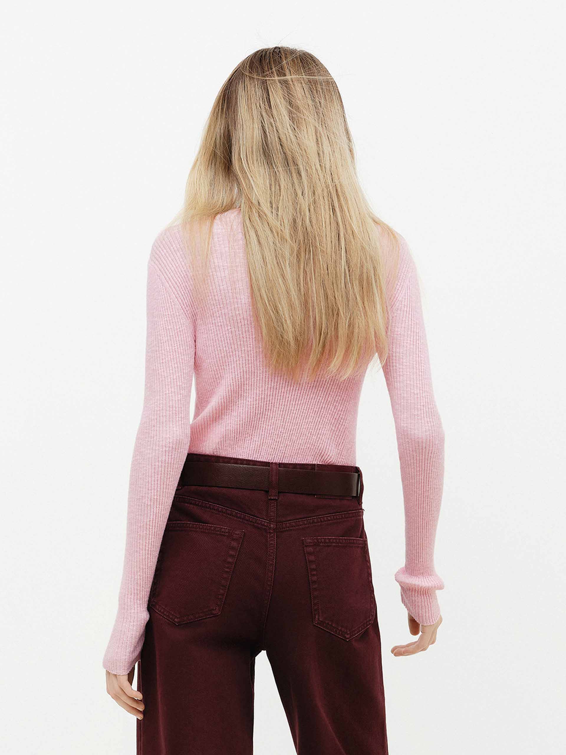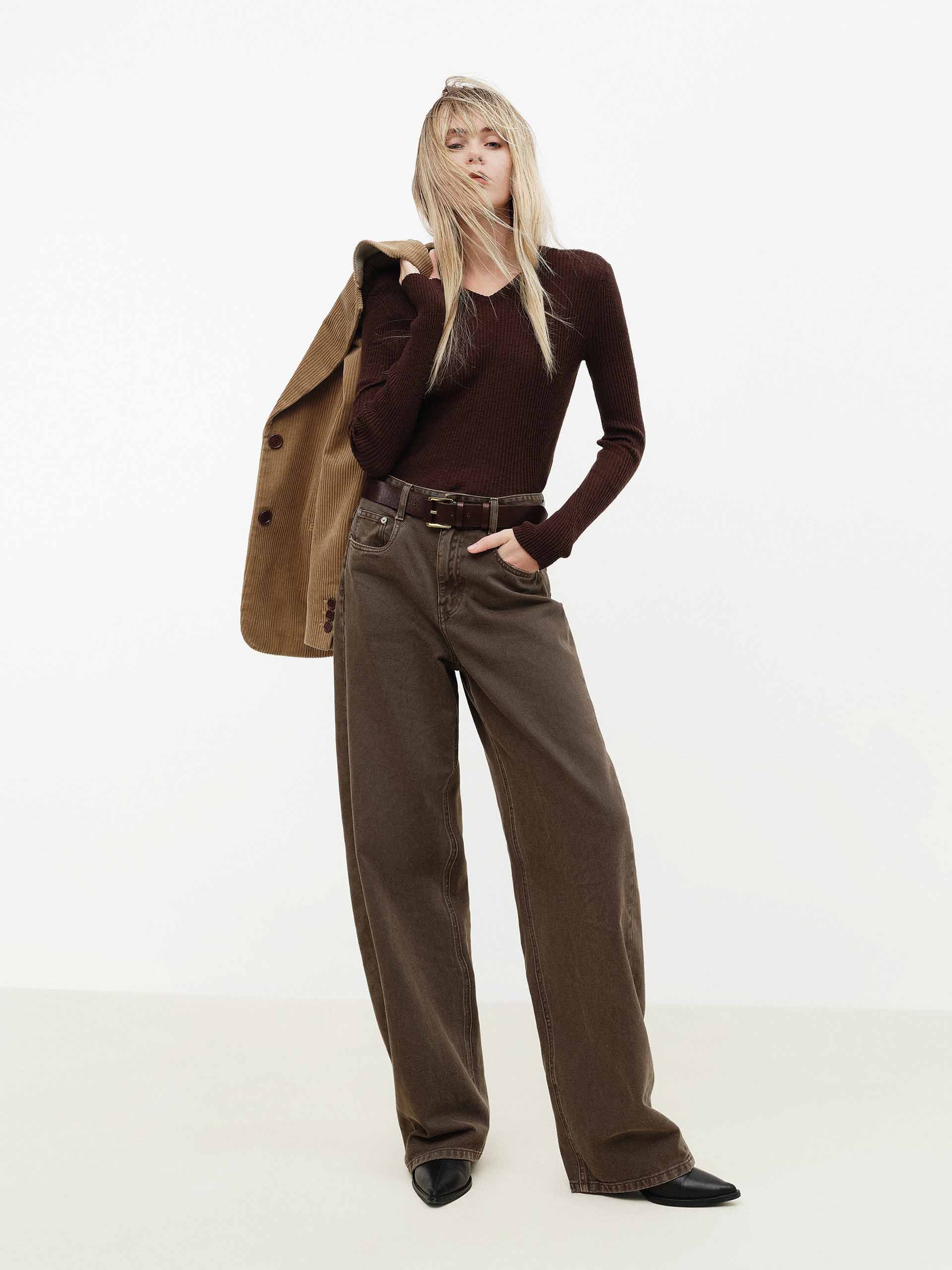 A modern essential with refined texture, this sweater is designed with a sleek, figure-skimming slim fit. The V-neckline and delicate ribbed knitting create a flattering, tactile appeal, while a discreet back label adds a polished finish. Made from a soft cotton blend, it offers versatile comfort for effortless layering or standalone style.