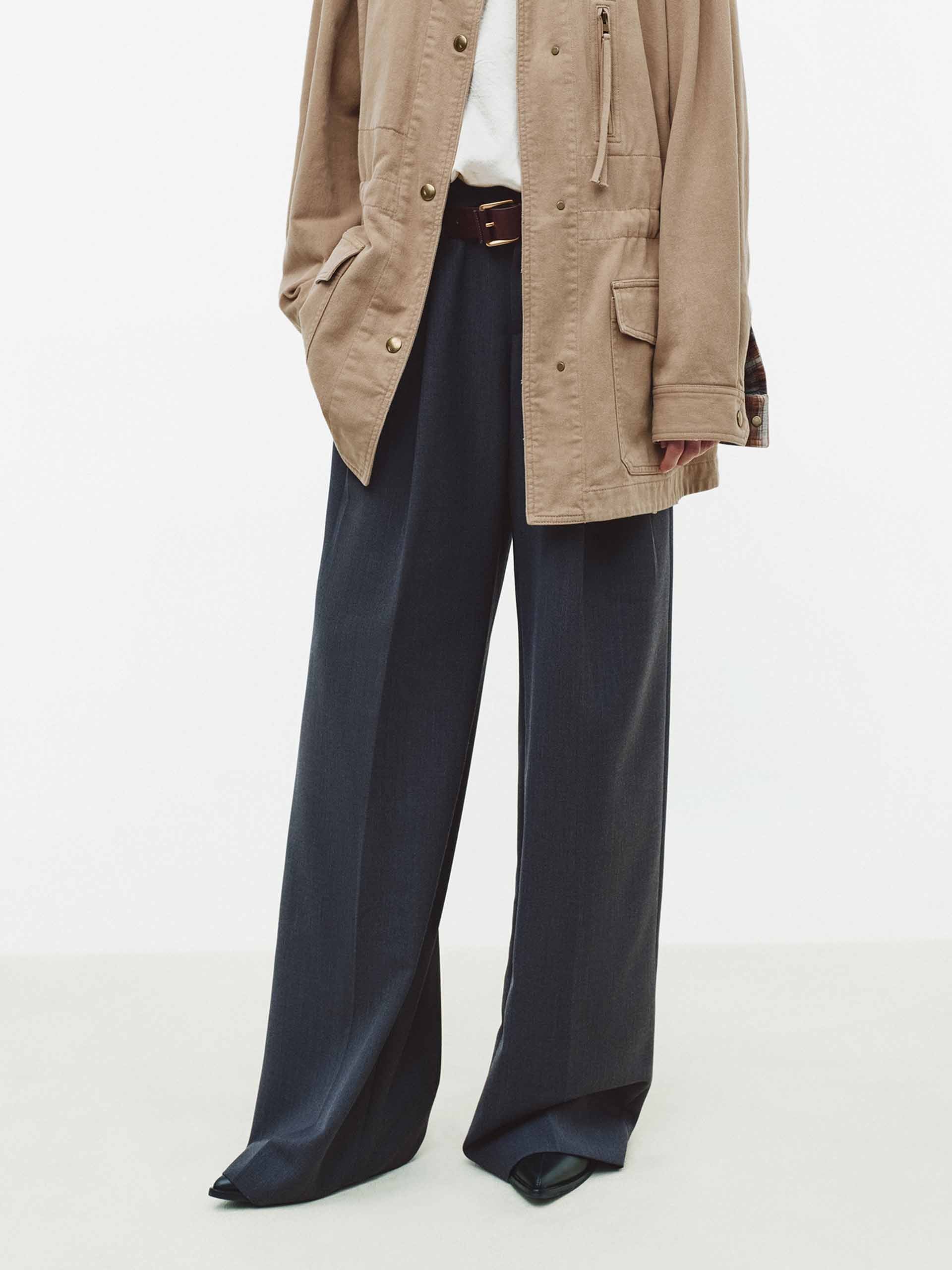 - Pleated and pressed creases detail