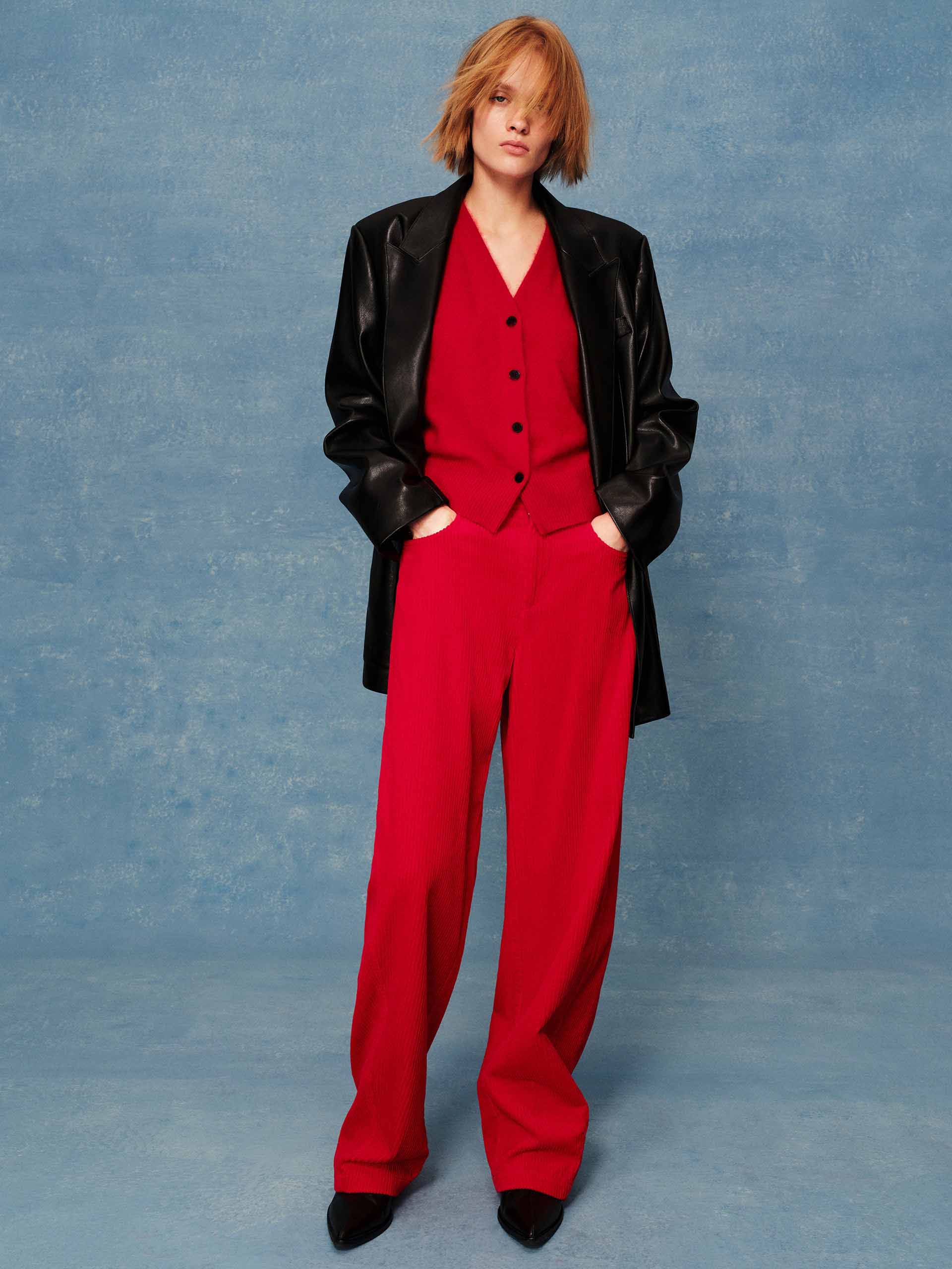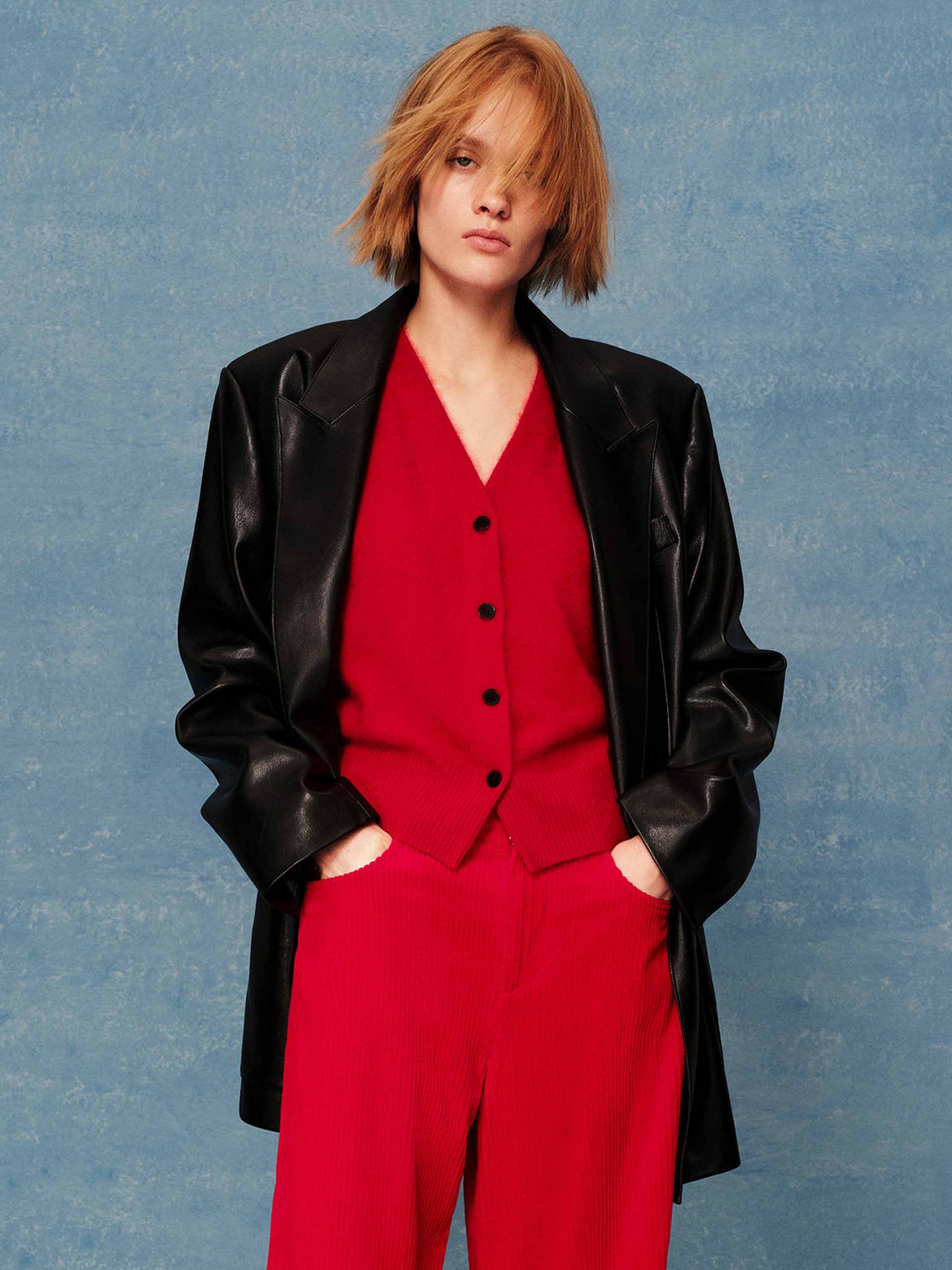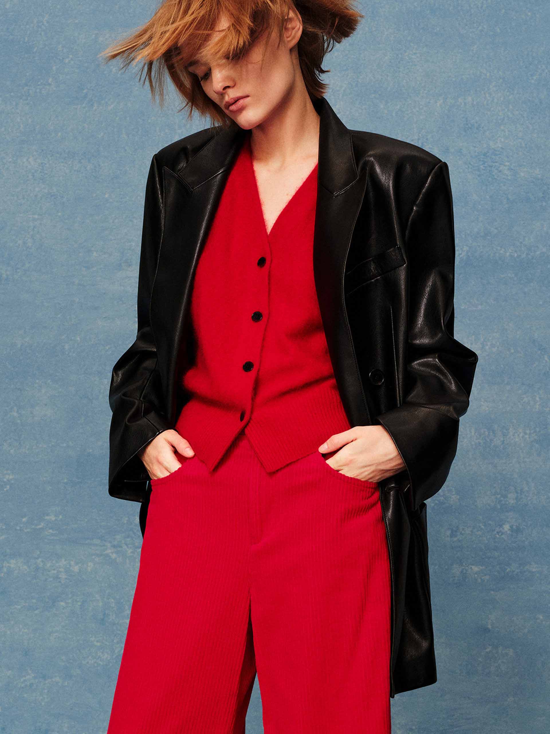Crafted from luxurious PU leather, this blazer delivers a sharp and sophisticated edge with a structured silhouette. Its clean lines are accentuated by a classic peak lapel and the distinctive detail of double-breasted front closure. Designed for both style and functionality, it features a practical back vent and sleek side pockets.