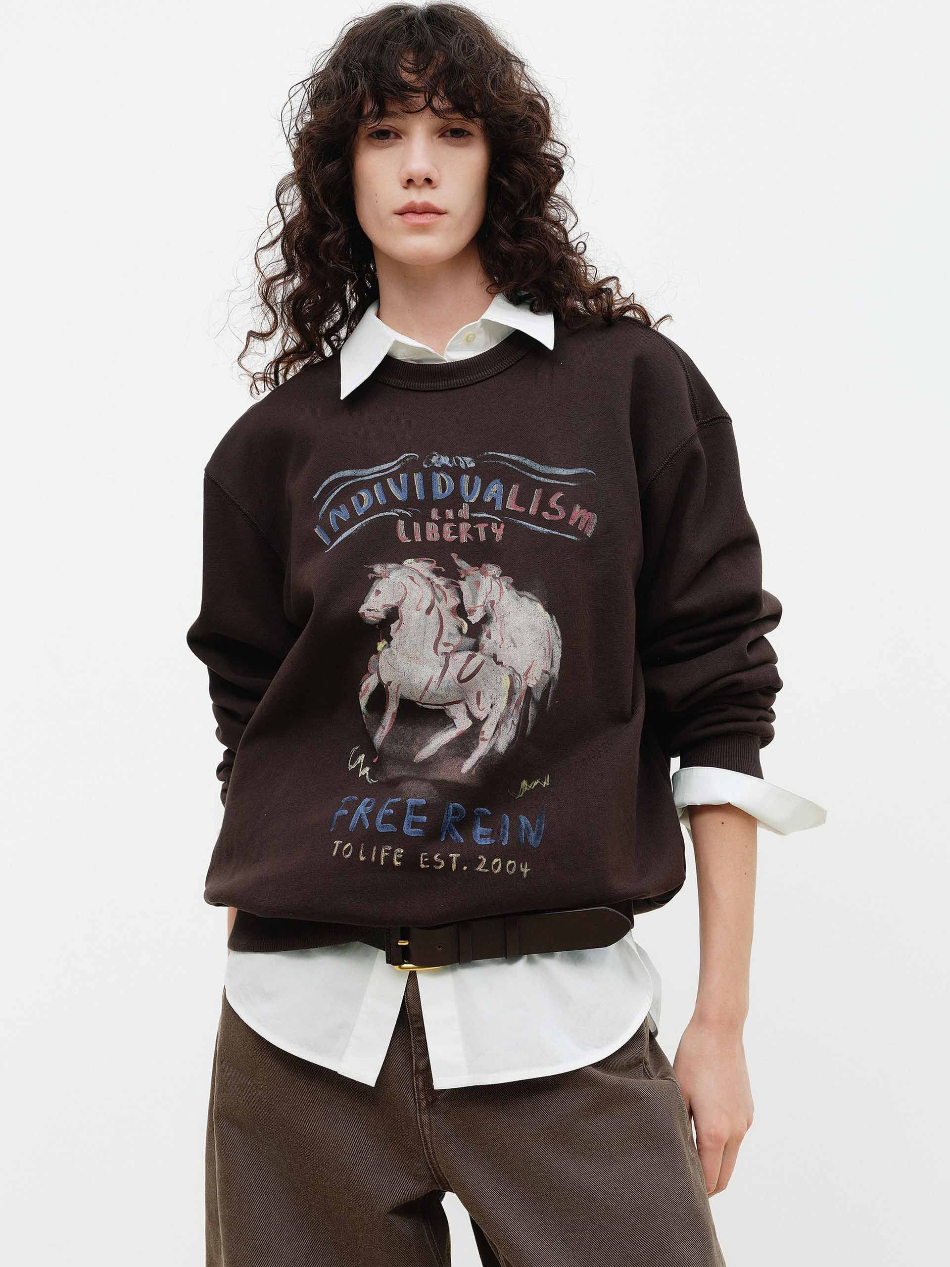 Horse Pattern Cotton Sweatshirt