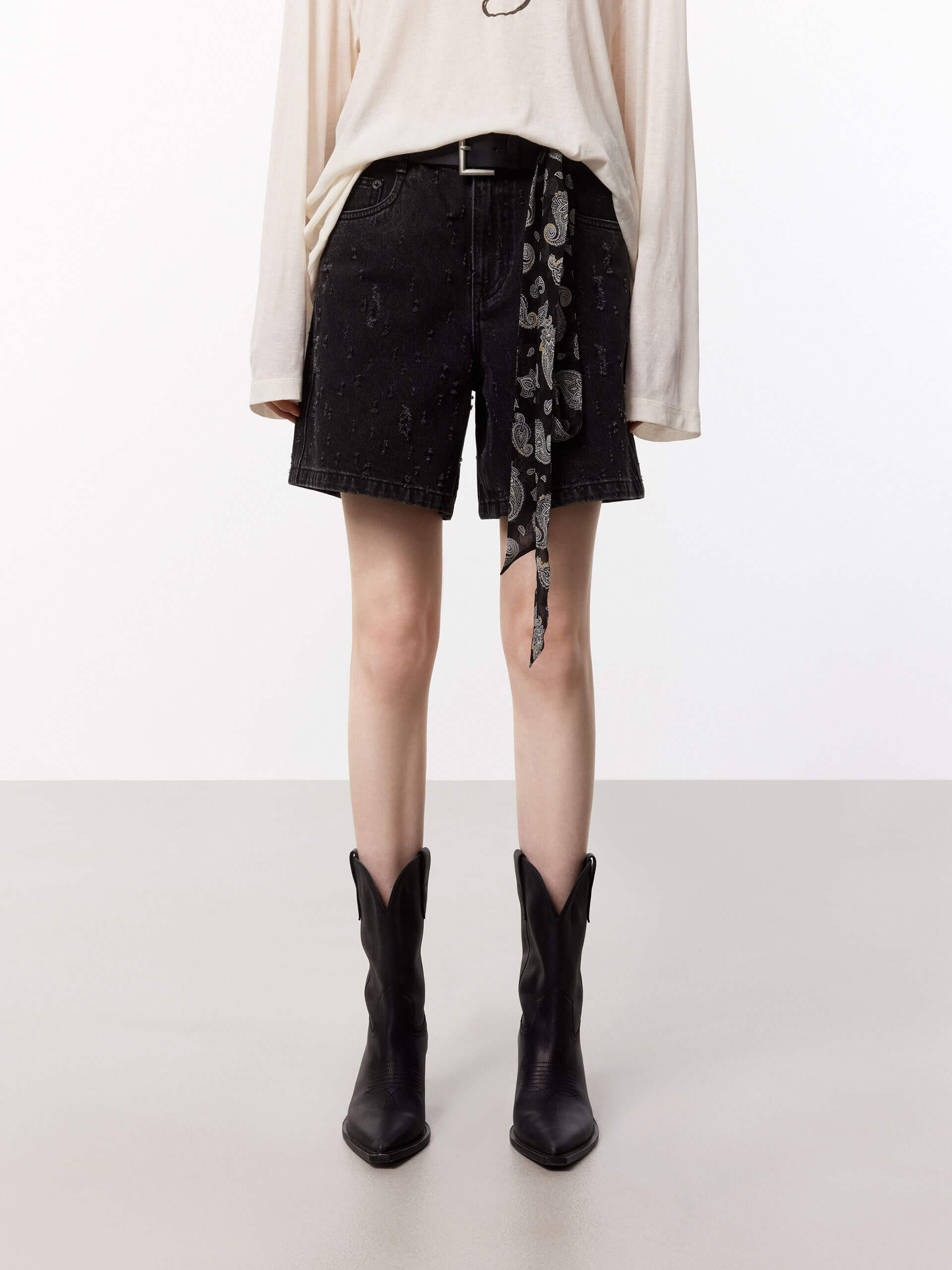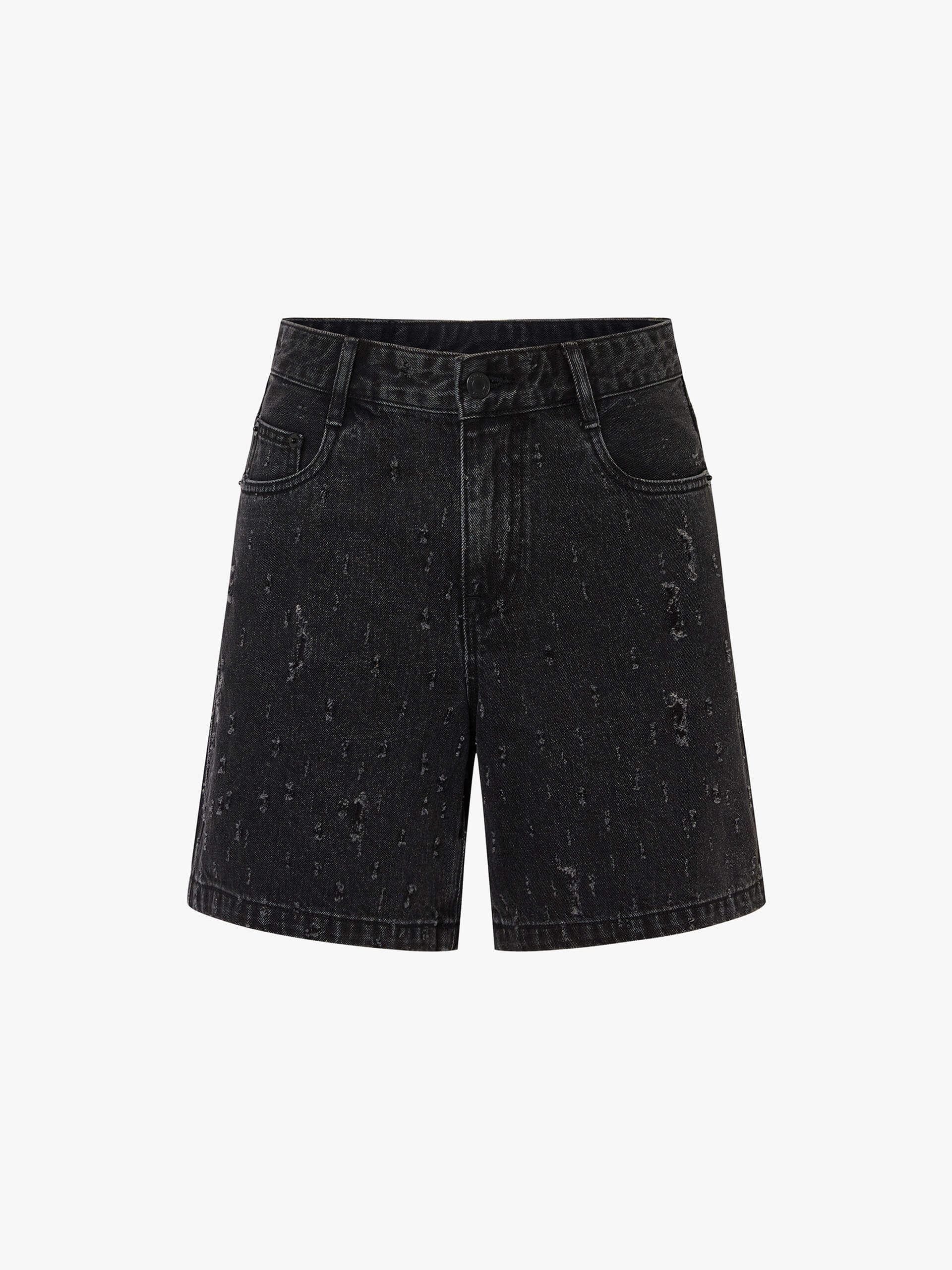 These denim shorts have a relaxed, wide-leg cut that hits right at the knee providing a looser, more boyfriend-inspired fit rather than being skin-tight. Feature distressed detailing on the denim adds a stylish and edgy touch, making these shorts perfect for pairing with a cute crop top or tucked-in t-shirt.