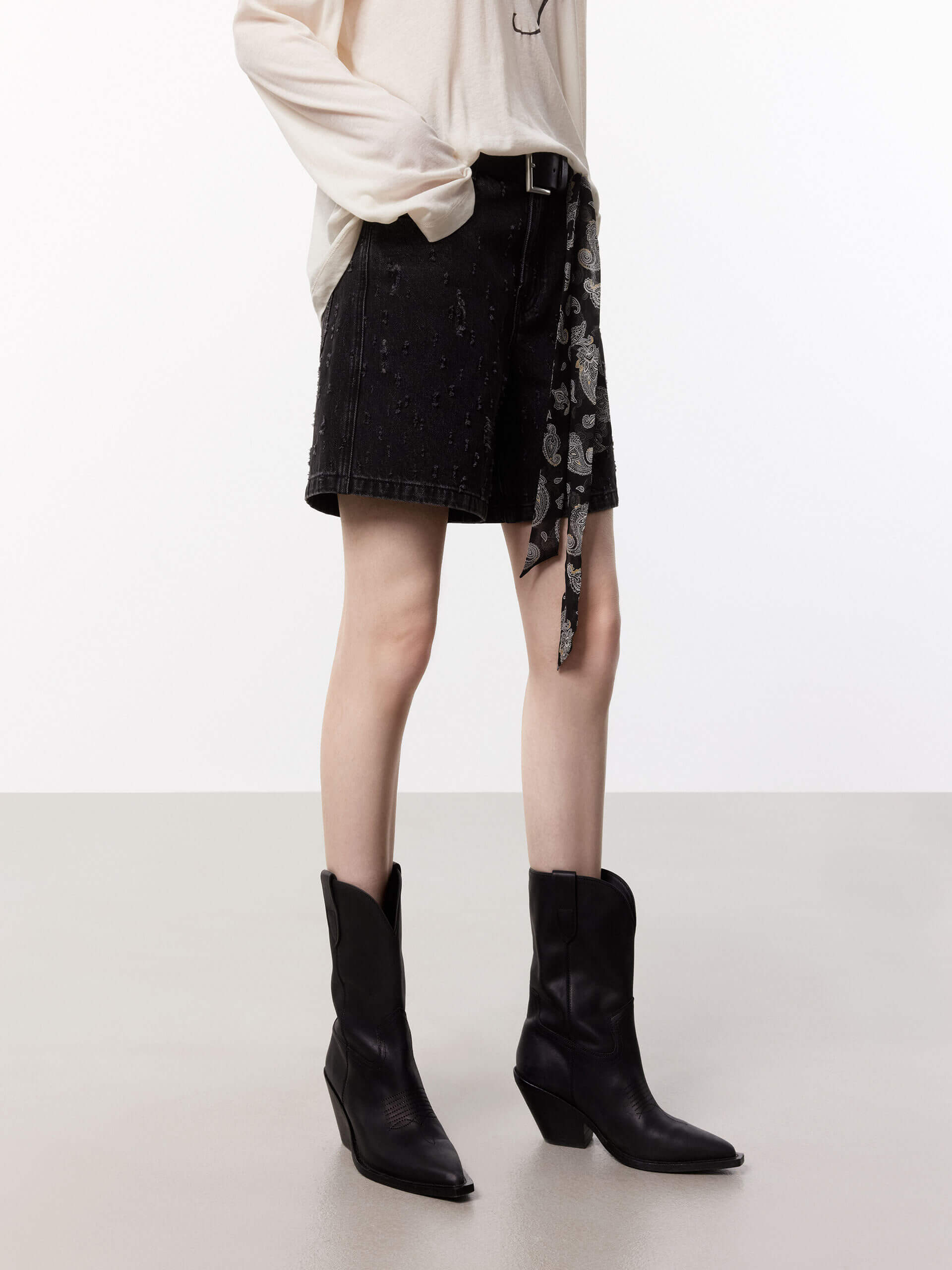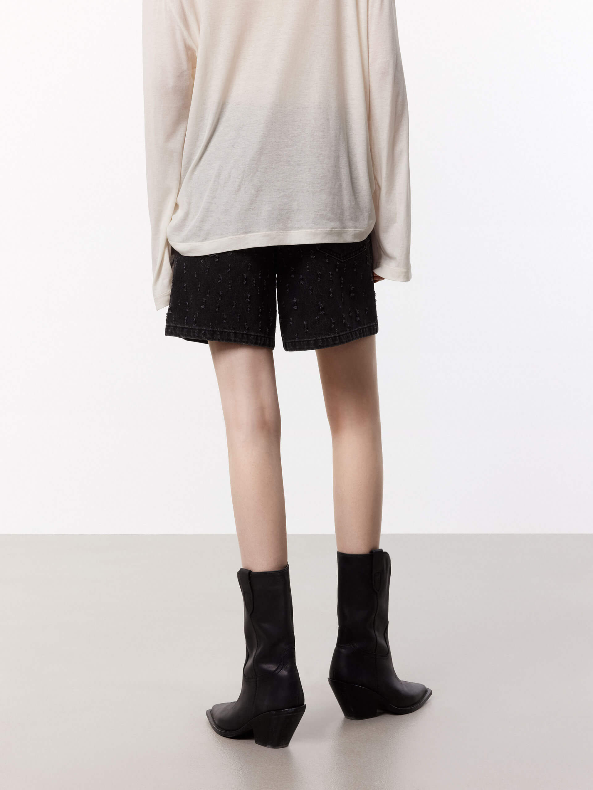 MO&Co. Women's Cotton Distressed Detail Shorts