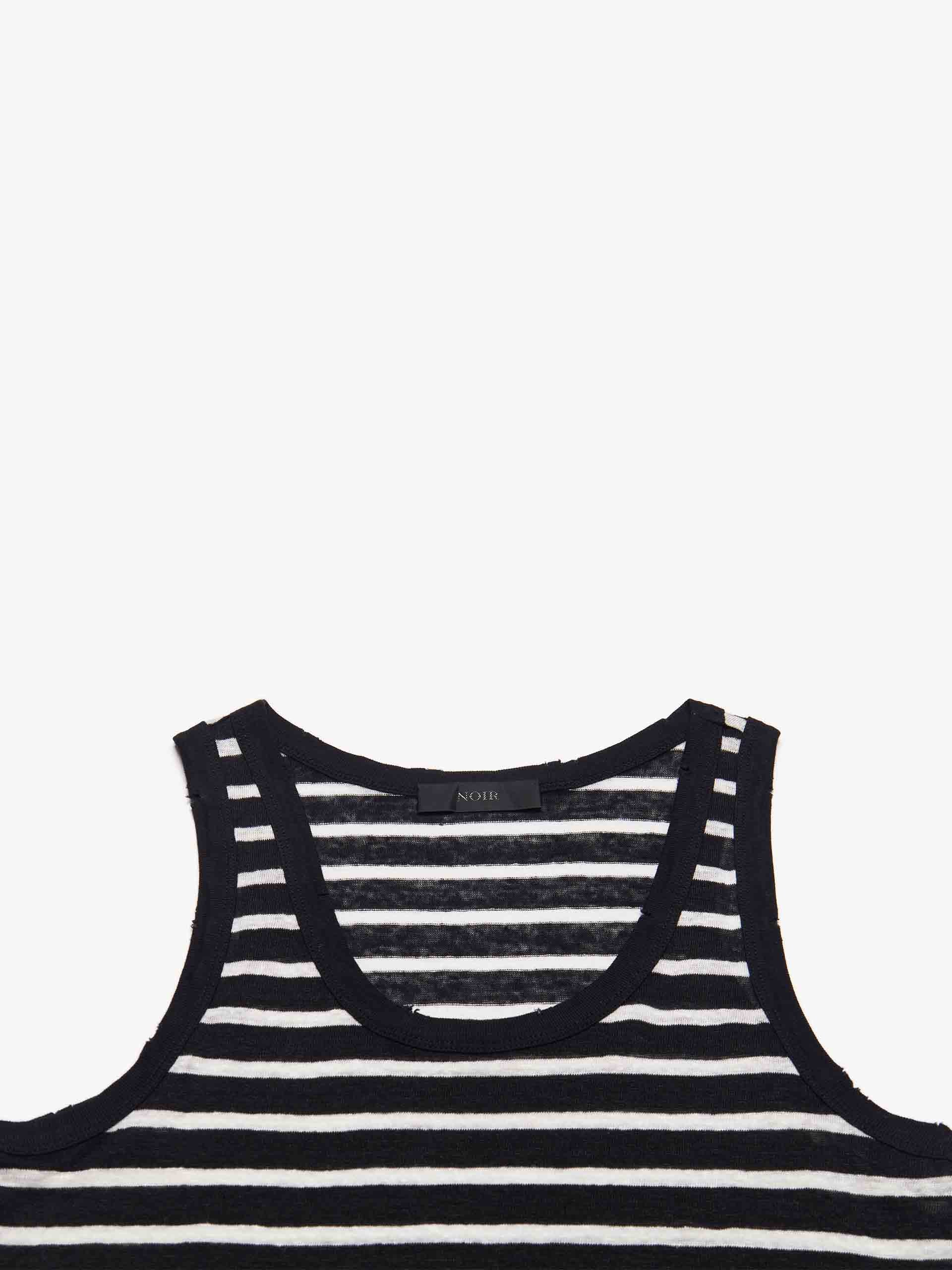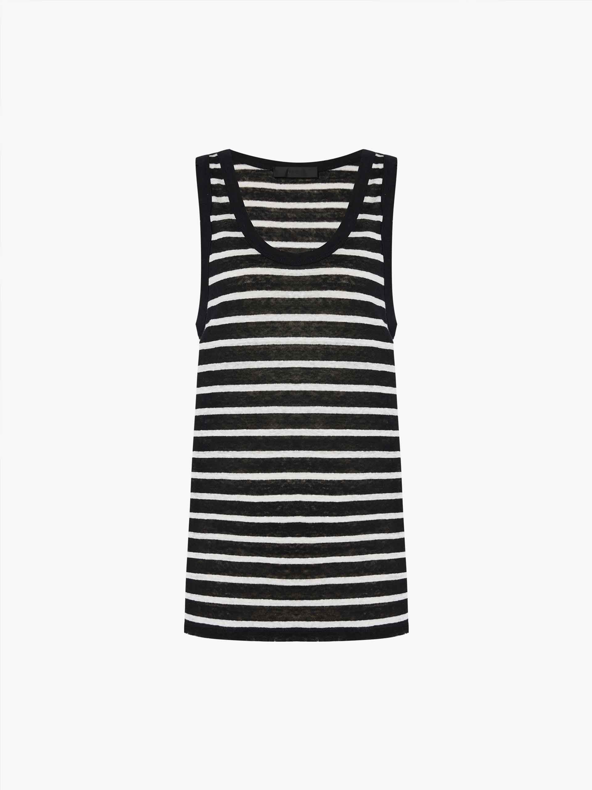 This tank top is made of 100% linen, which a breathable and lightweight, making it perfect for warm weather. Features a U-neck and racer-back design. The classic black and white stripes are a timeless pattern that can be easily paired with a variety of bottoms. Whether you're lounging at home or running errands, it is a chic choice.