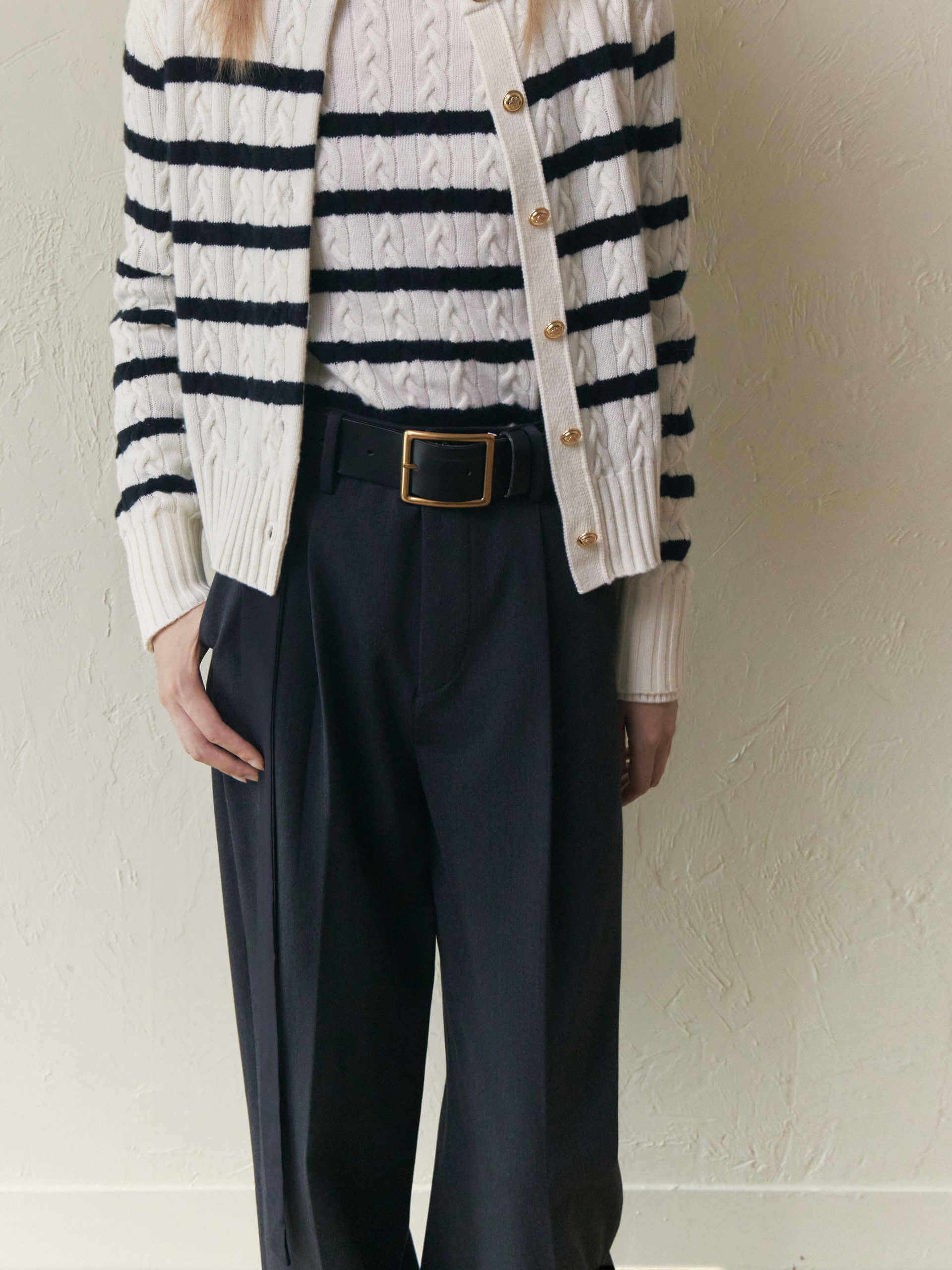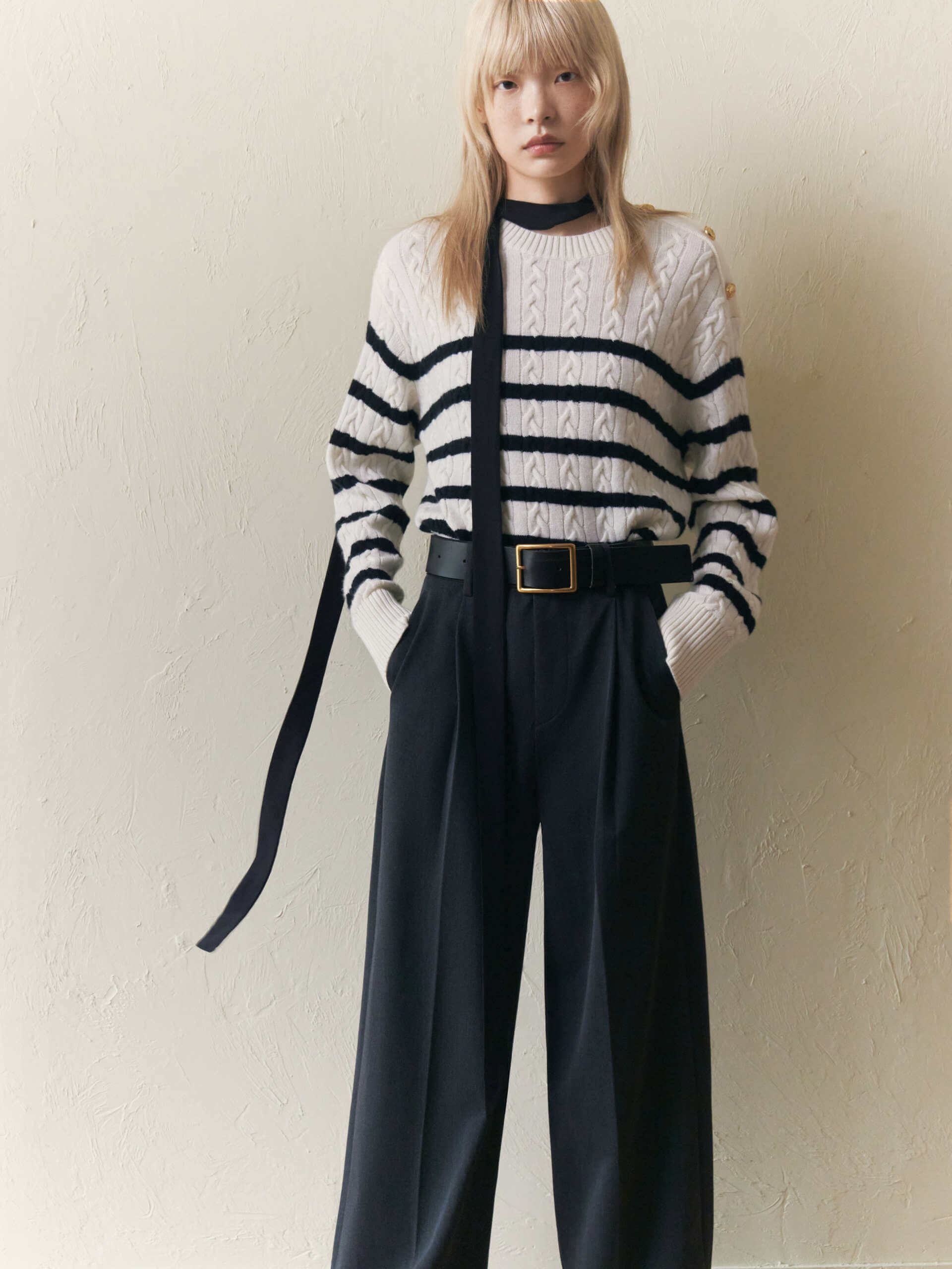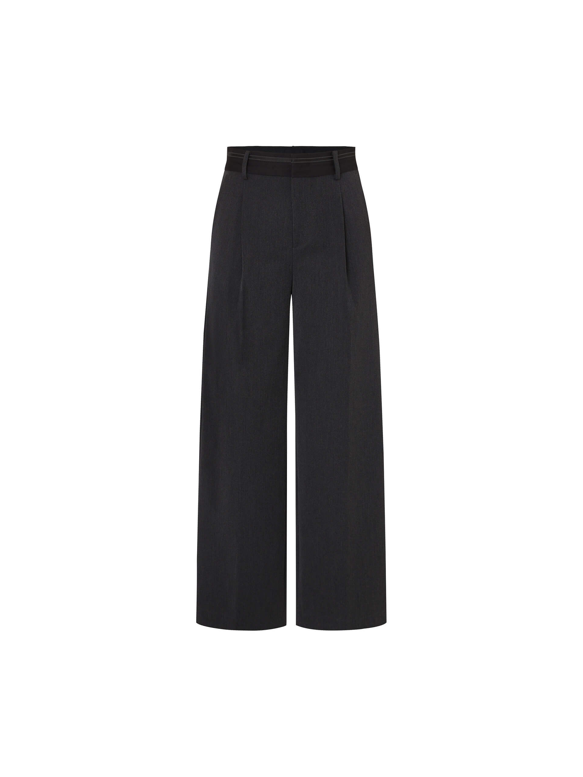 Crafted from comfy fabric with a suiting finish, these wide-leg trousers are expertly tailored for a loose silhouette. They're shaped with front pleats and center folds for a tailored style.