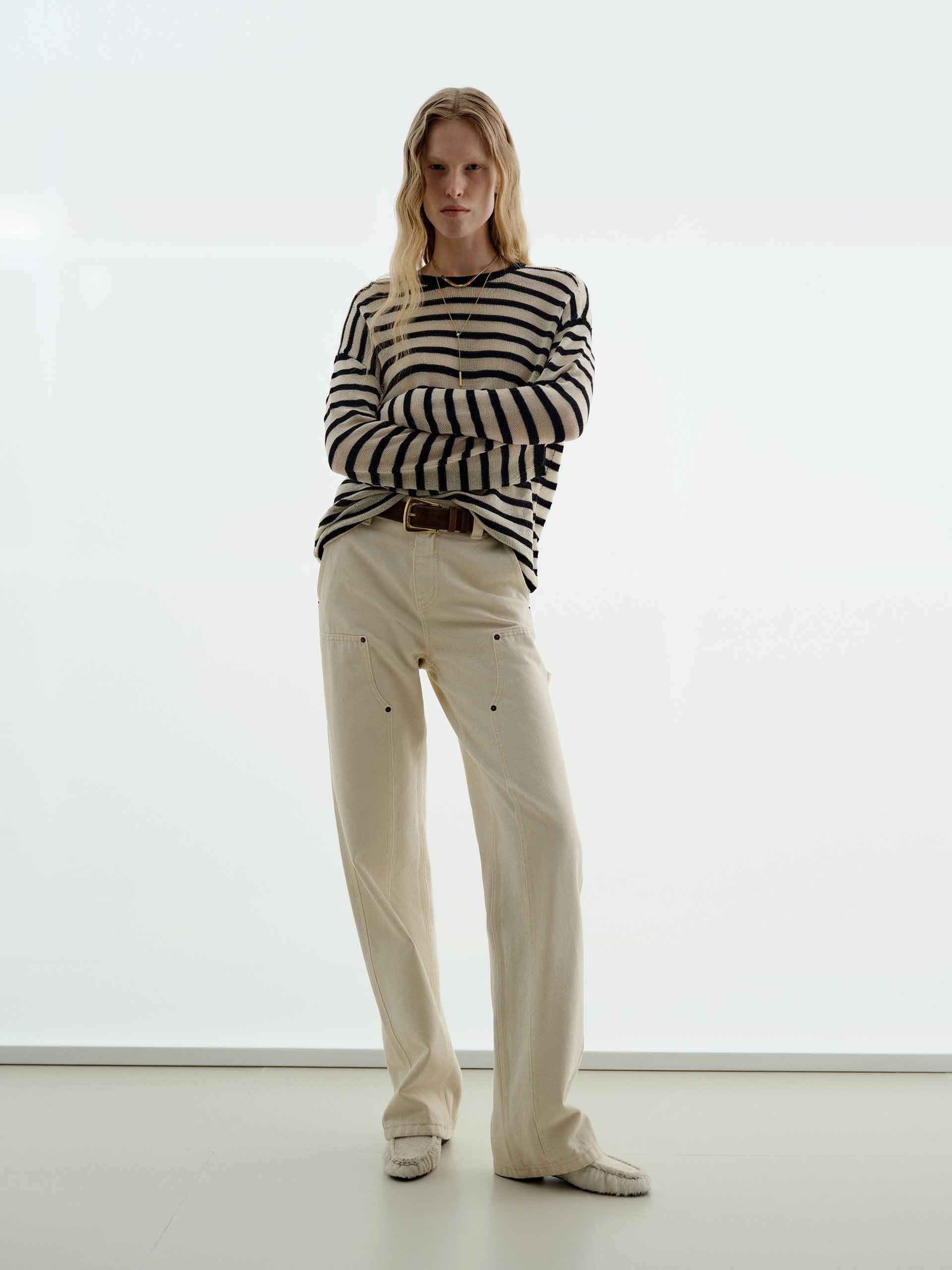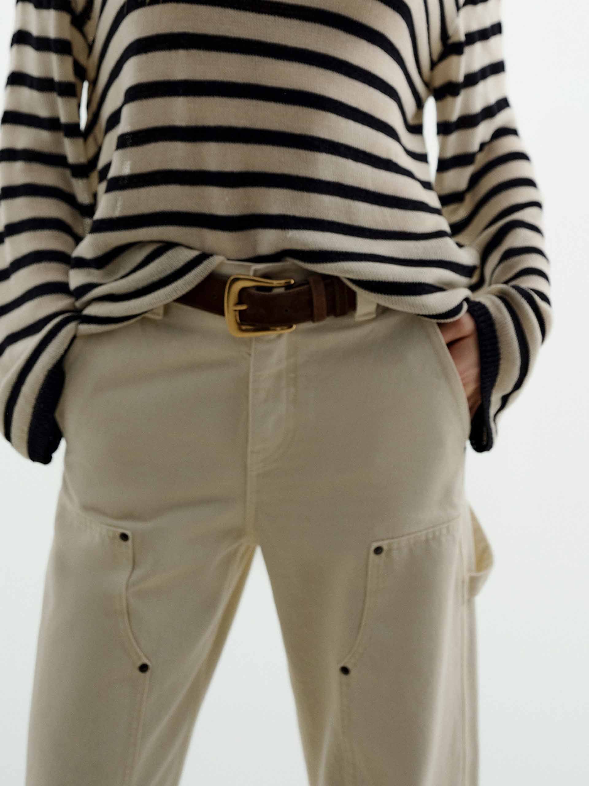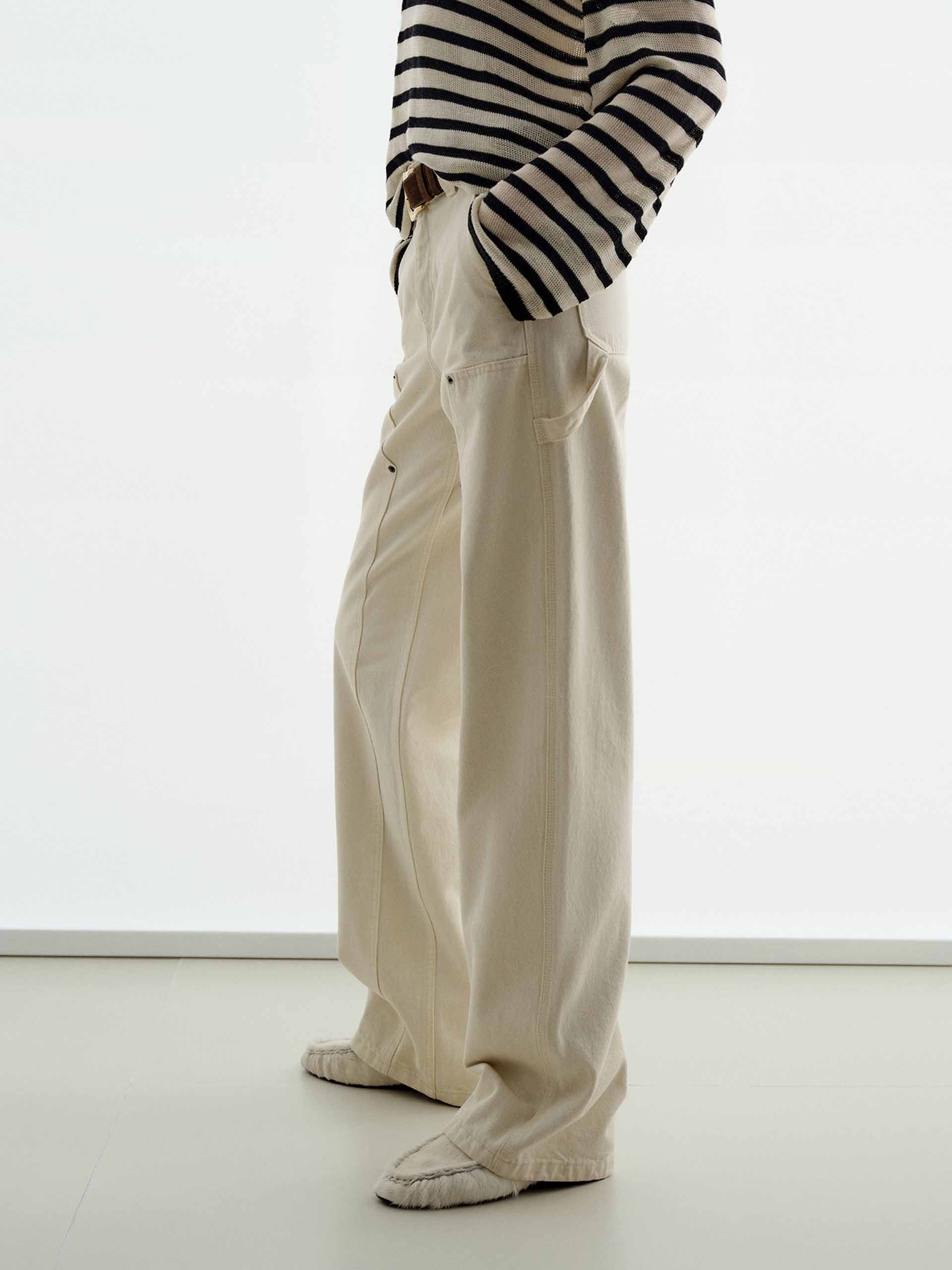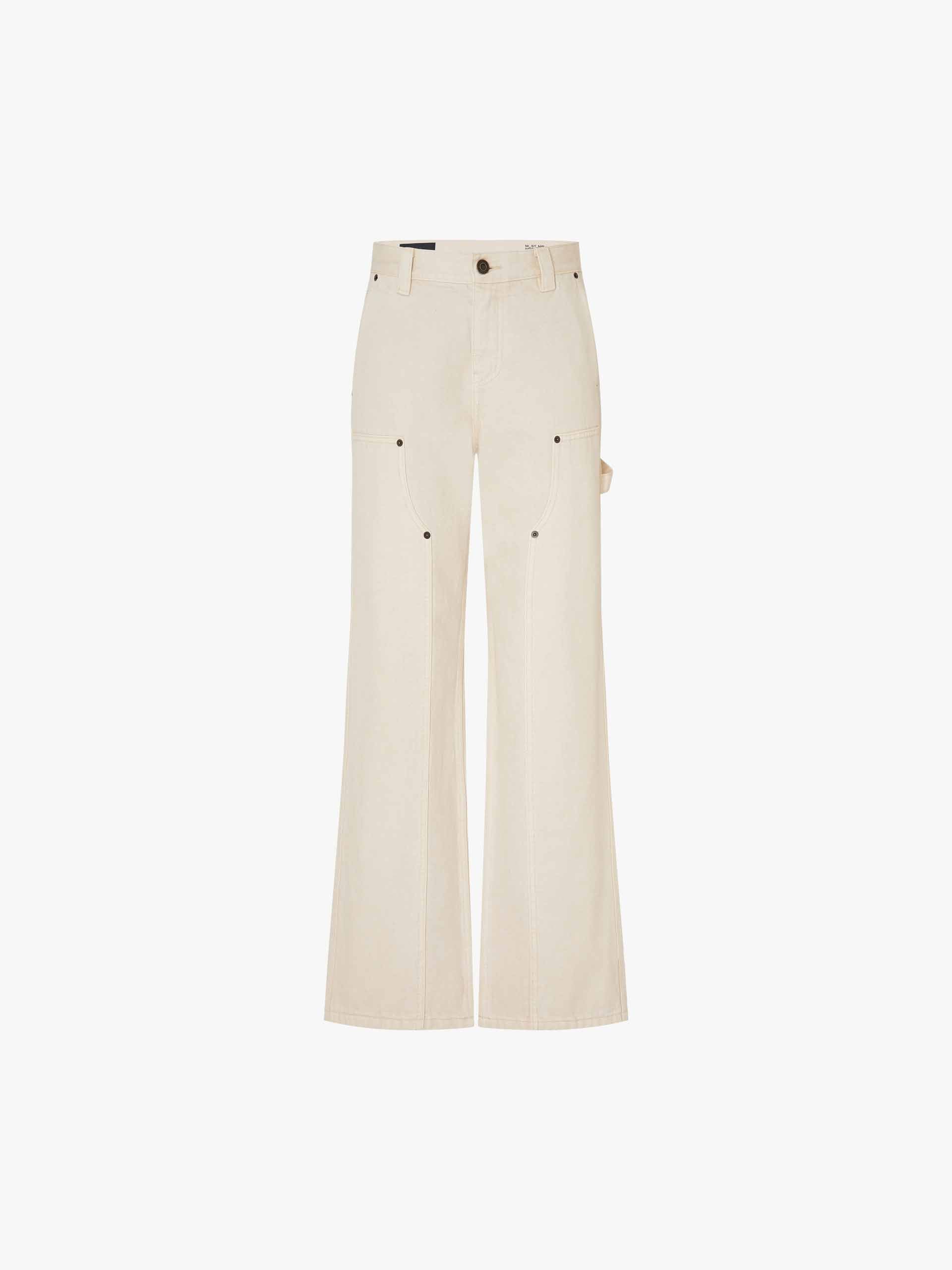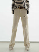 Blending workwear toughness with retro flair, these jeans redefine utilitarian style with their reinforced front panels and slightly flared hem—a nod to both durability and 70s-inspired silhouettes. The regular fit strikes a balance between relaxed and tailored, while duty rivets anchor the pocket layout, ensuring these jeans are as functional as they are fashionable.