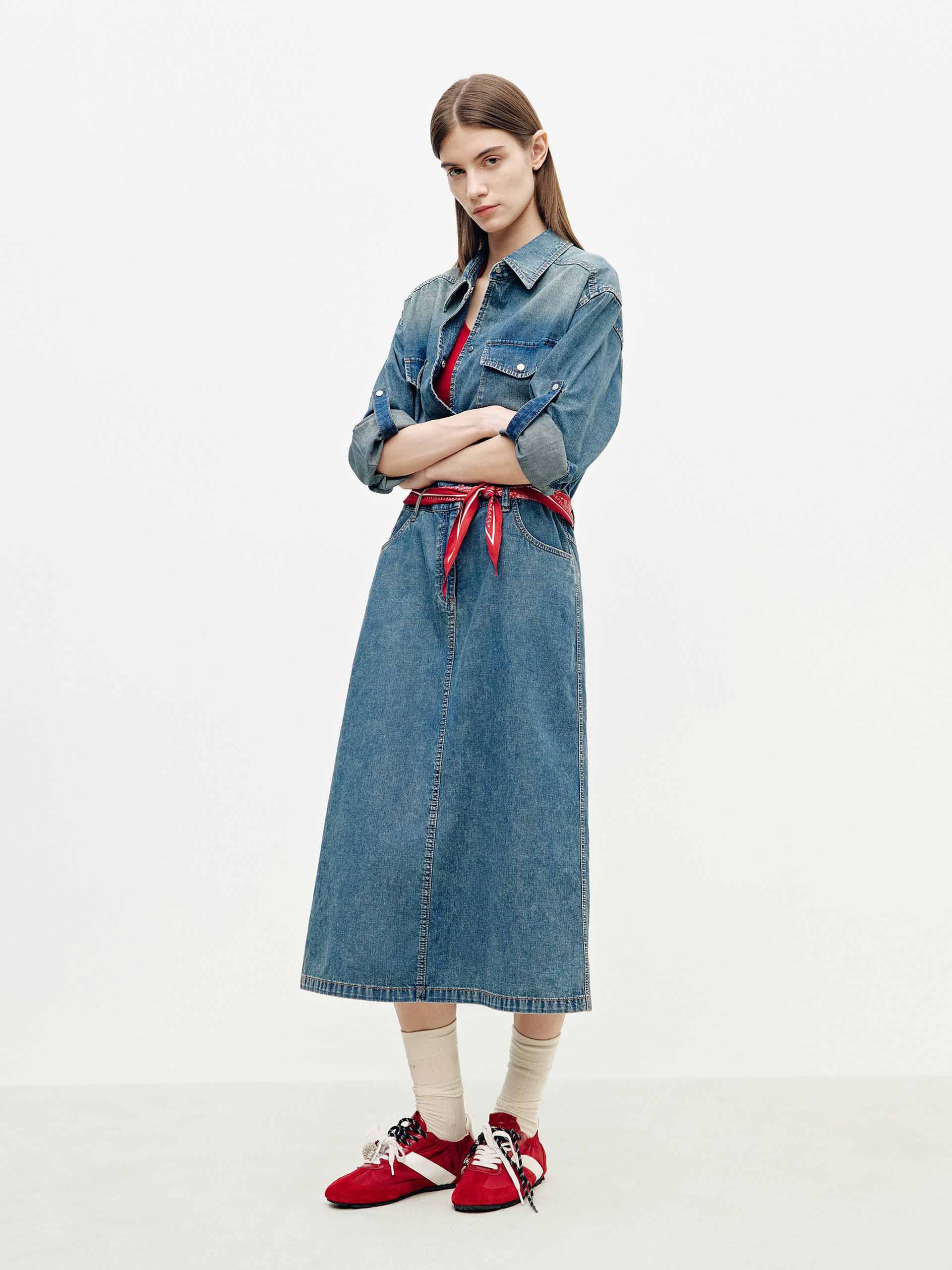 Cotton Denim Shirt Dress