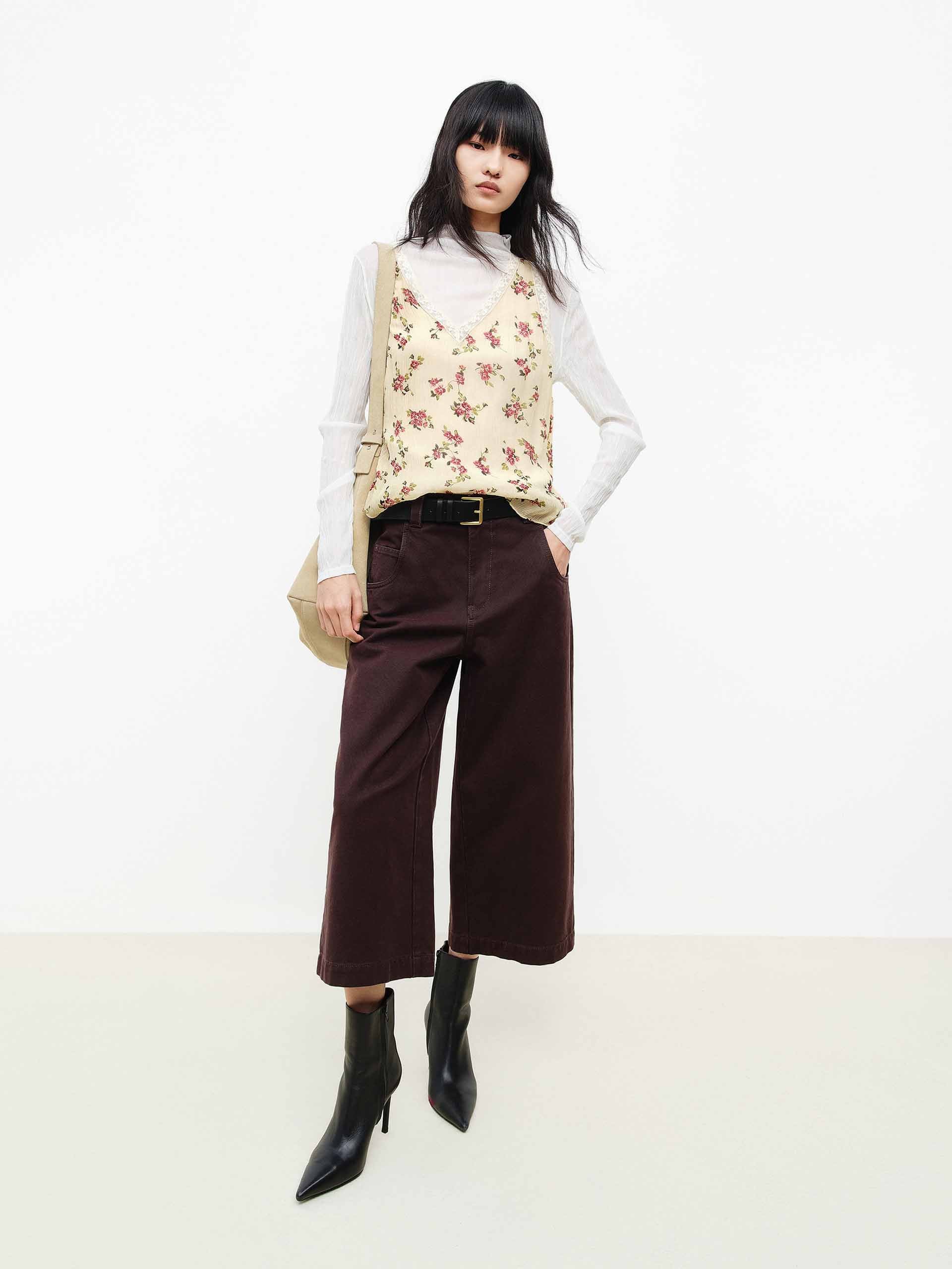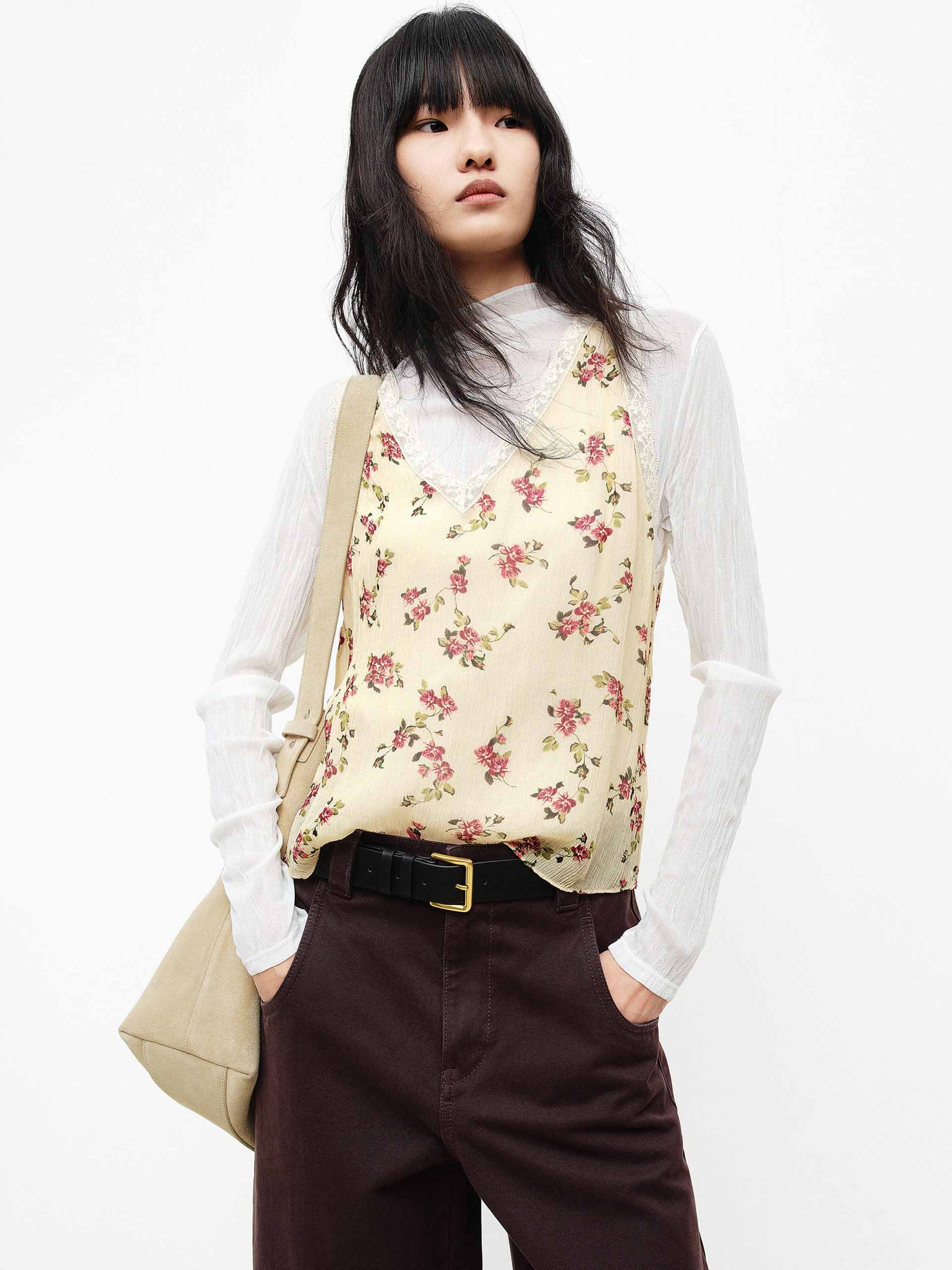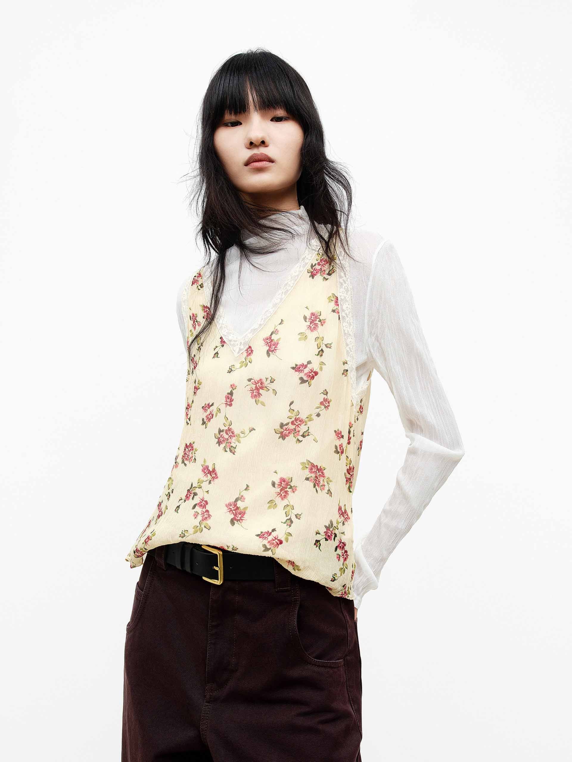 Floral Pattern V-neck Tank
