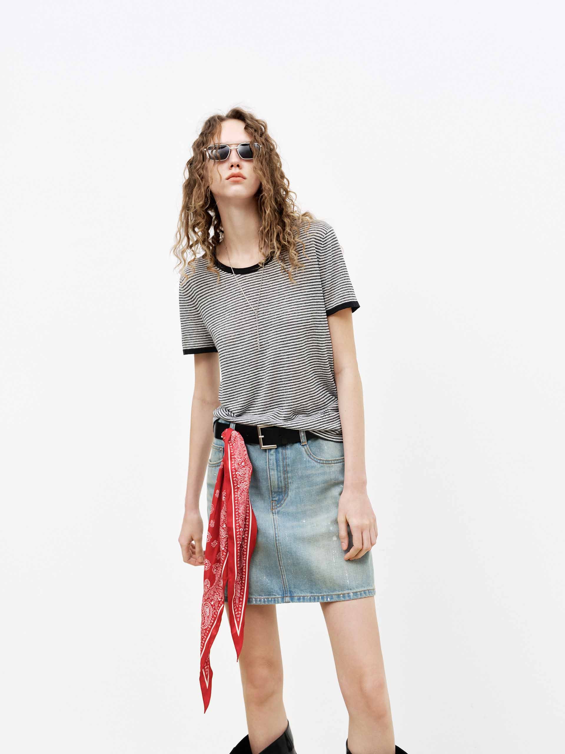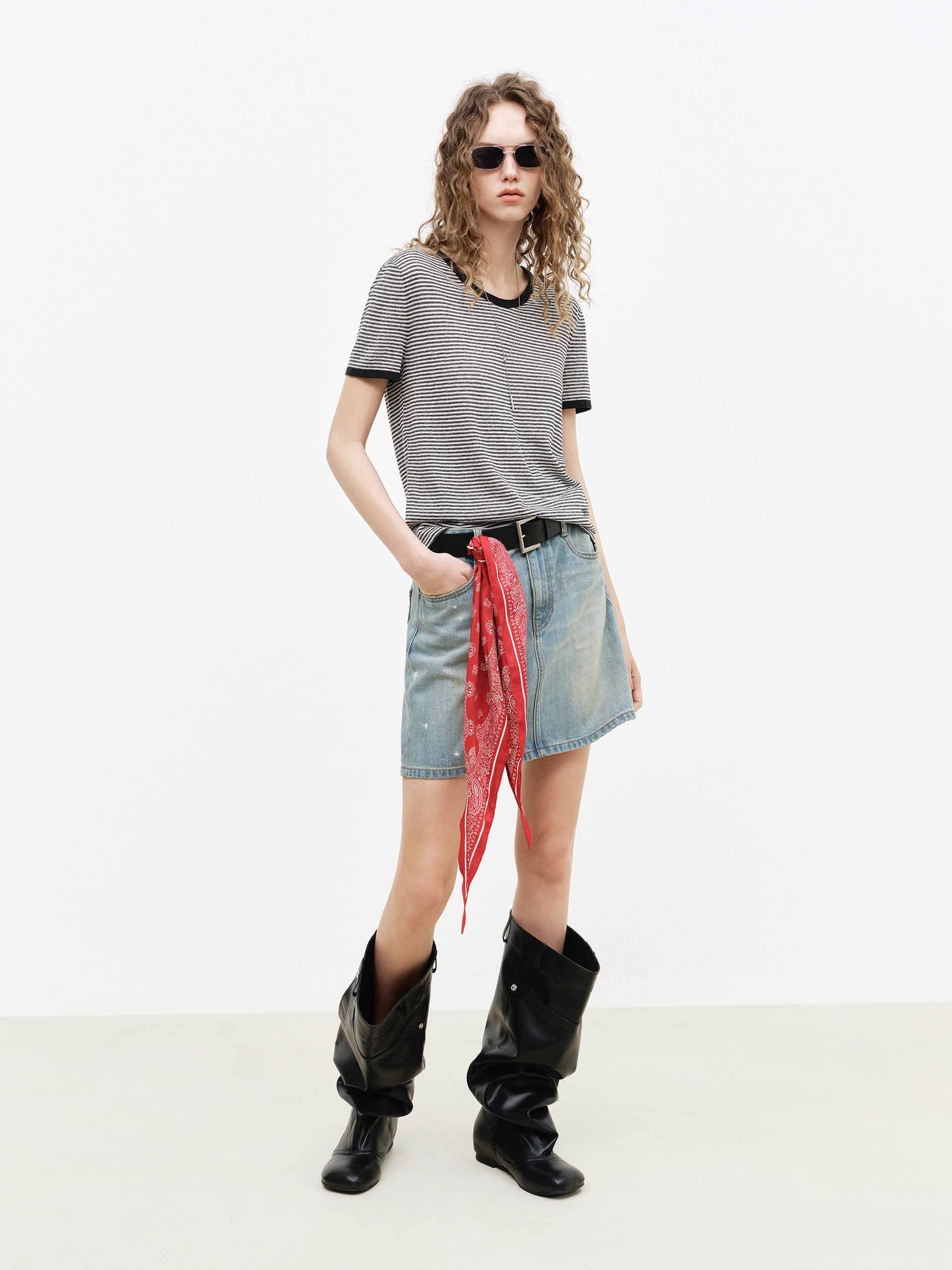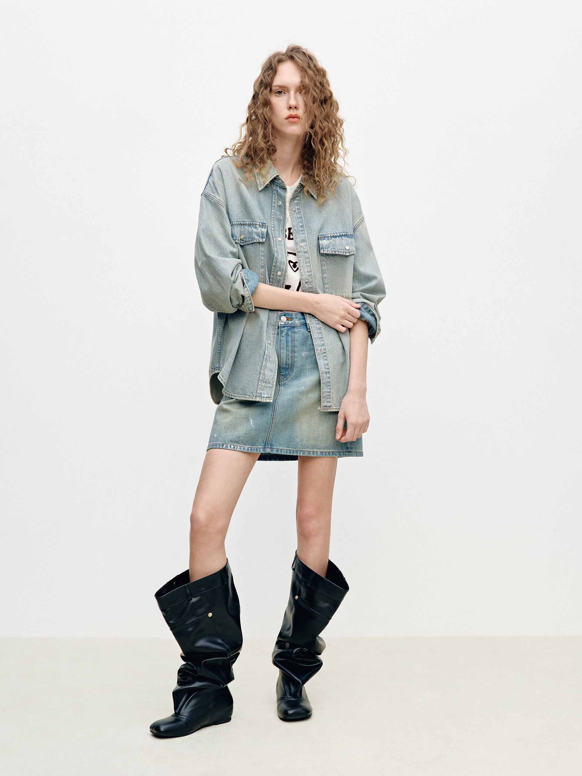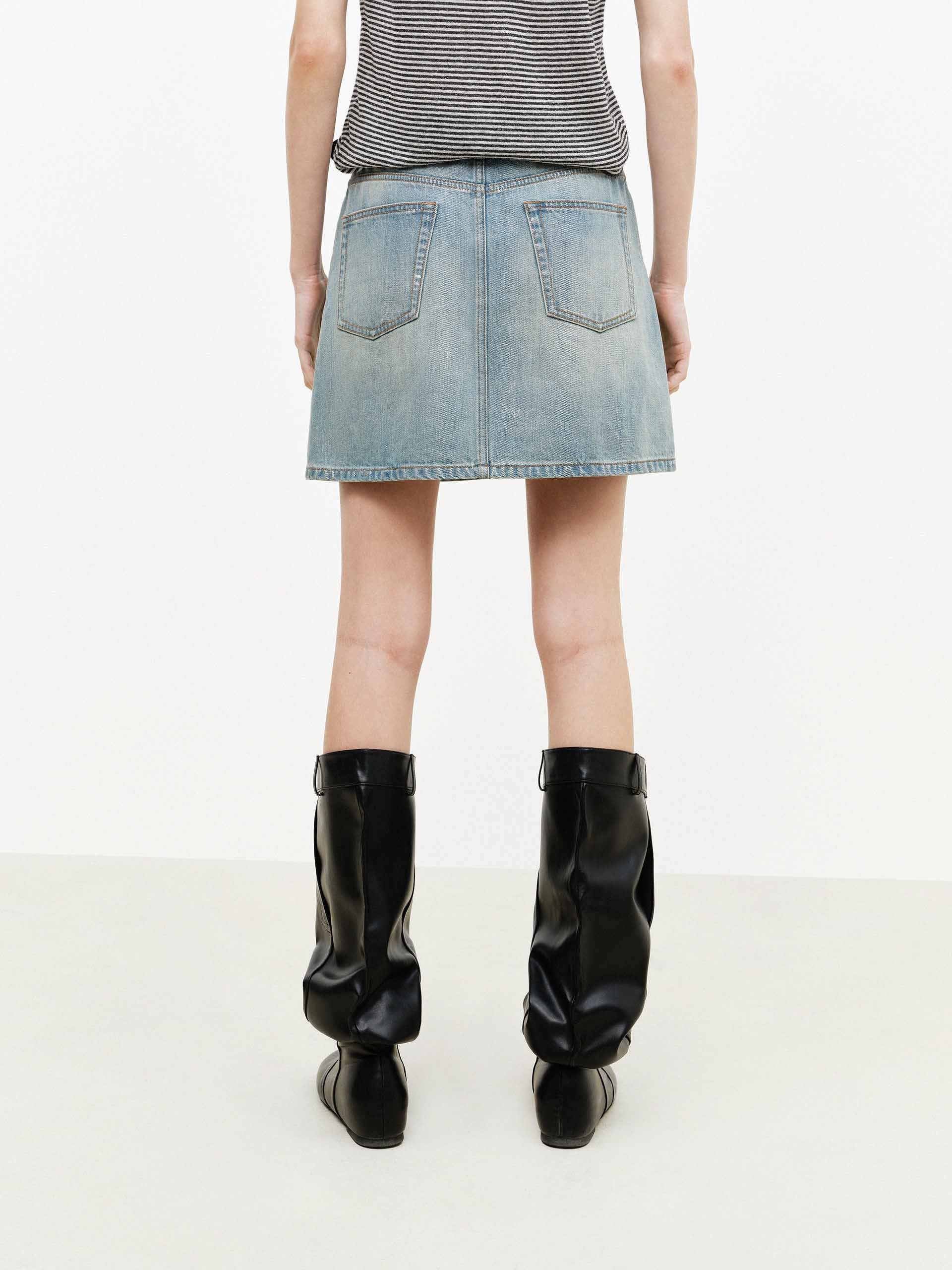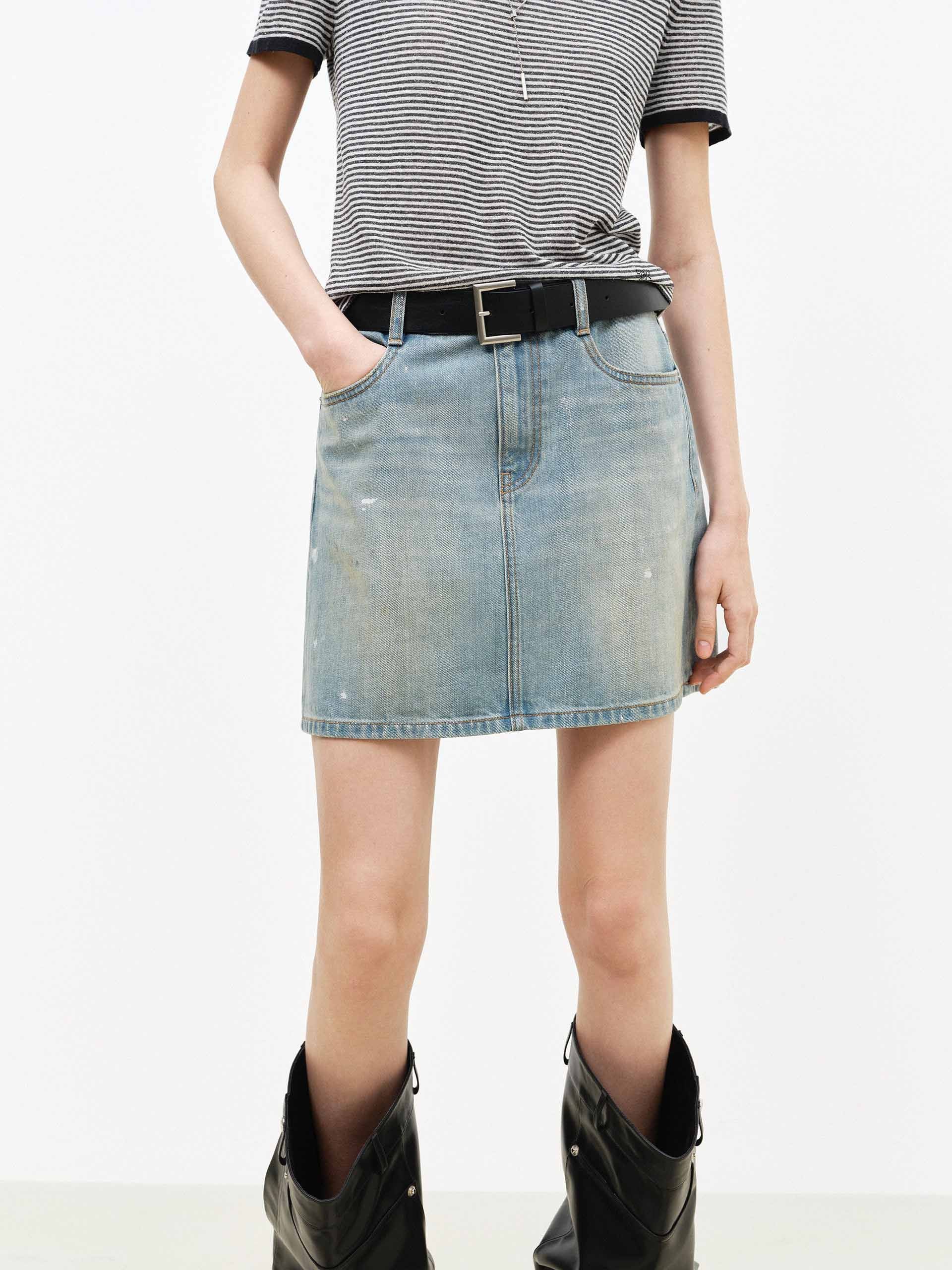 Ink-splatter Denim Mini Skirt