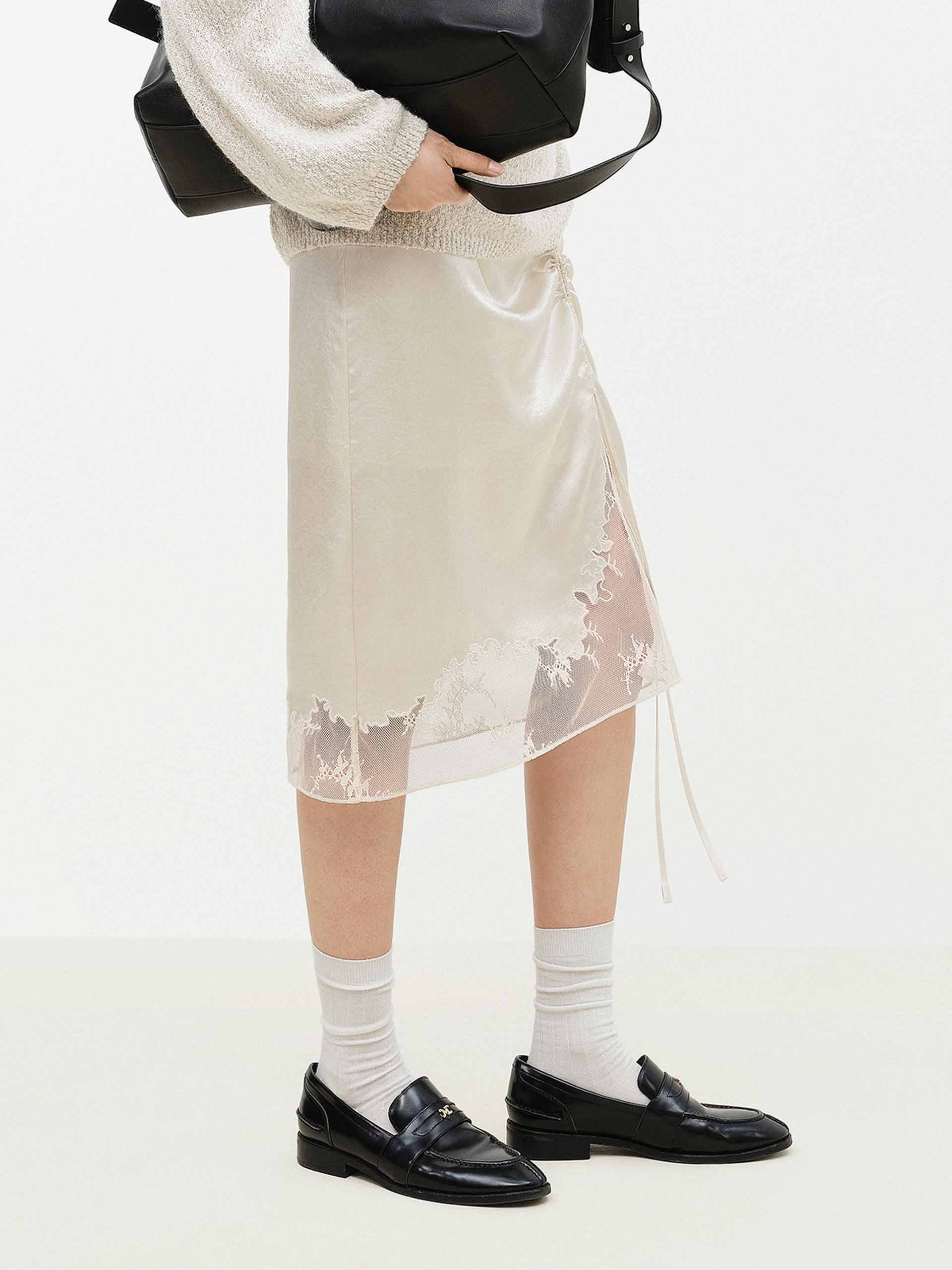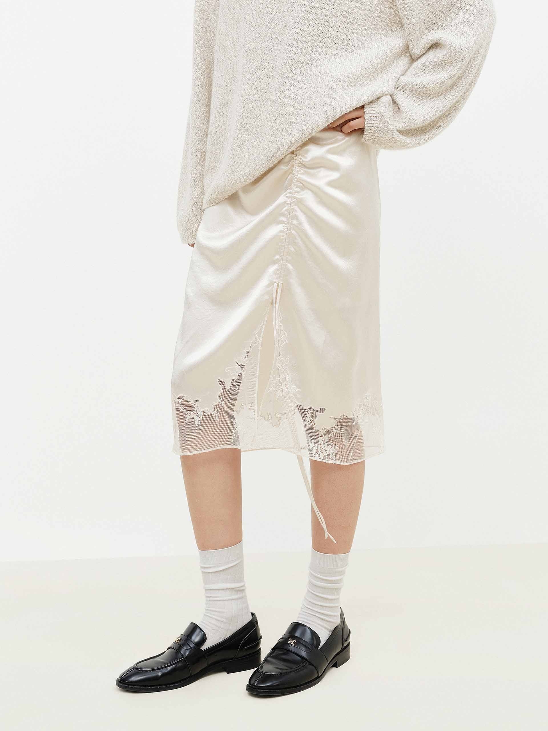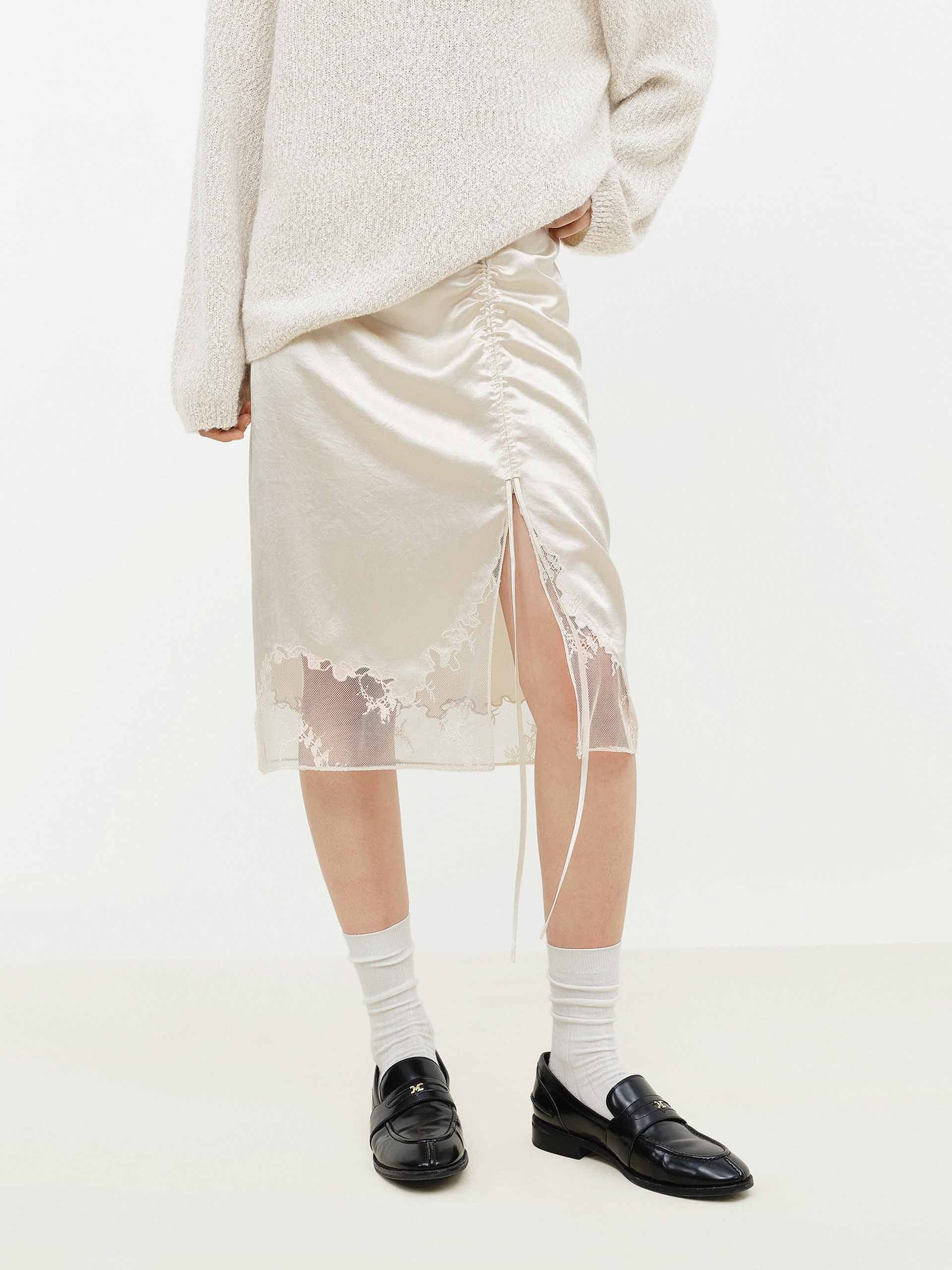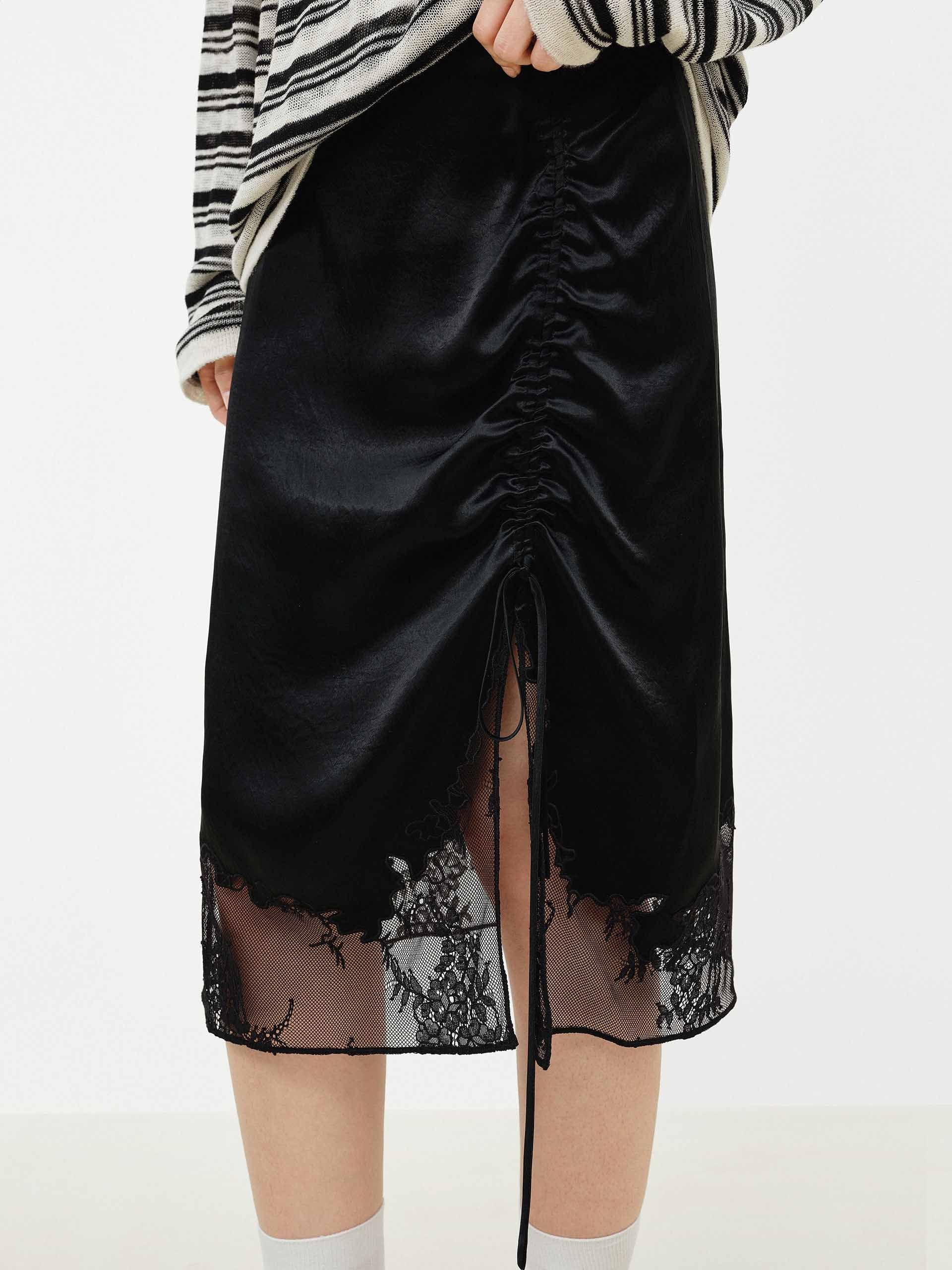 Lace Hem Satin Midi Skirt
