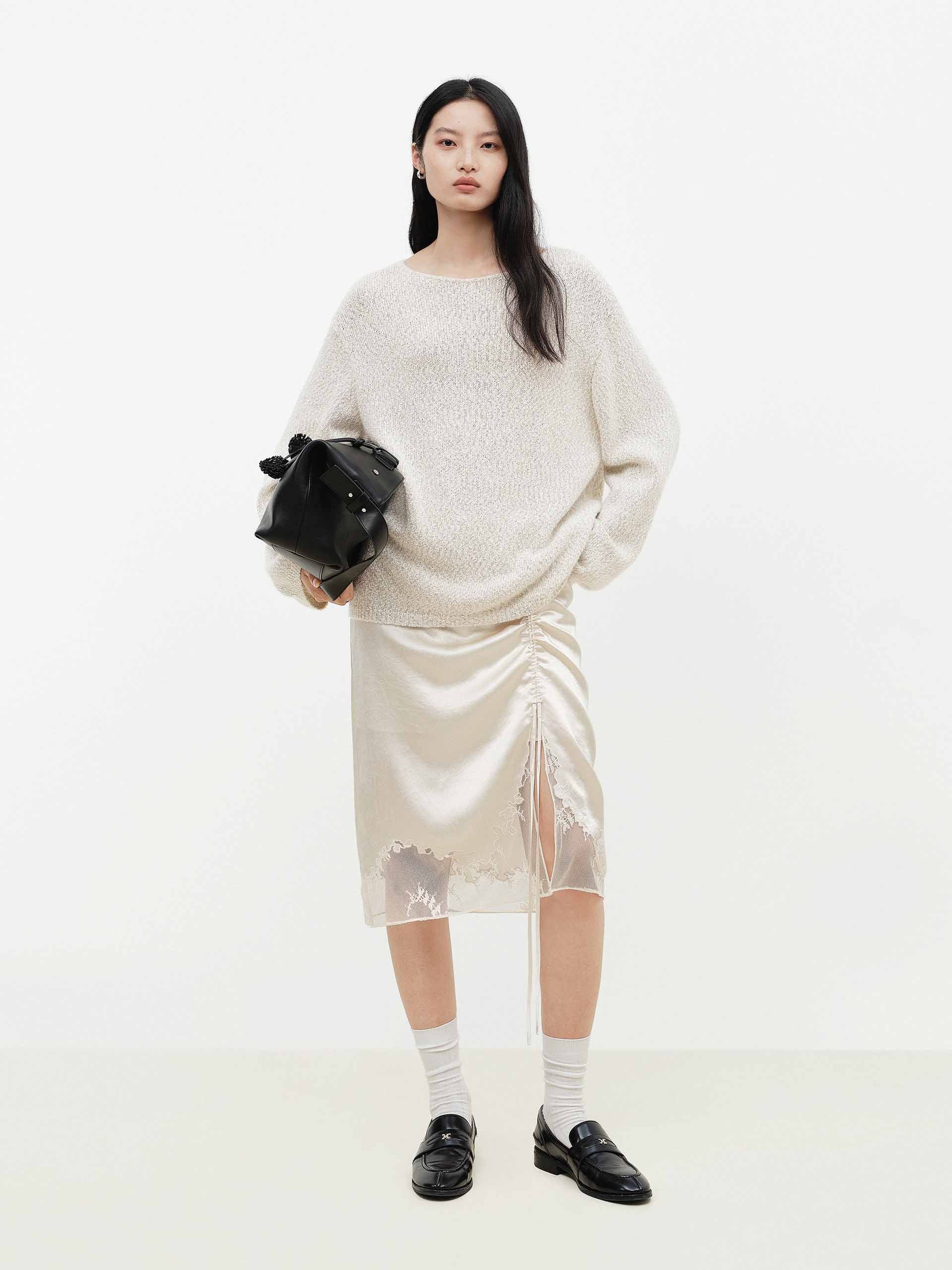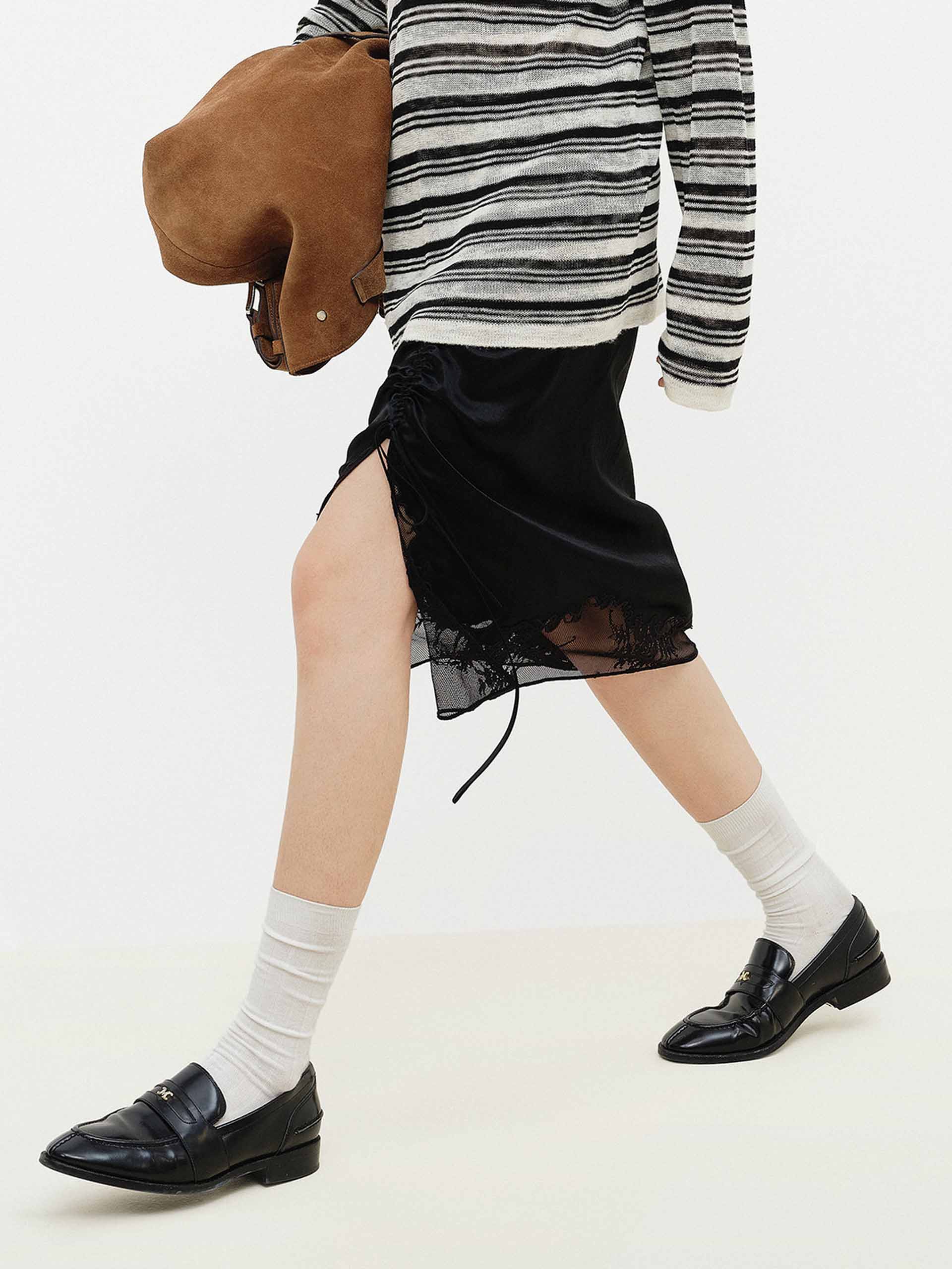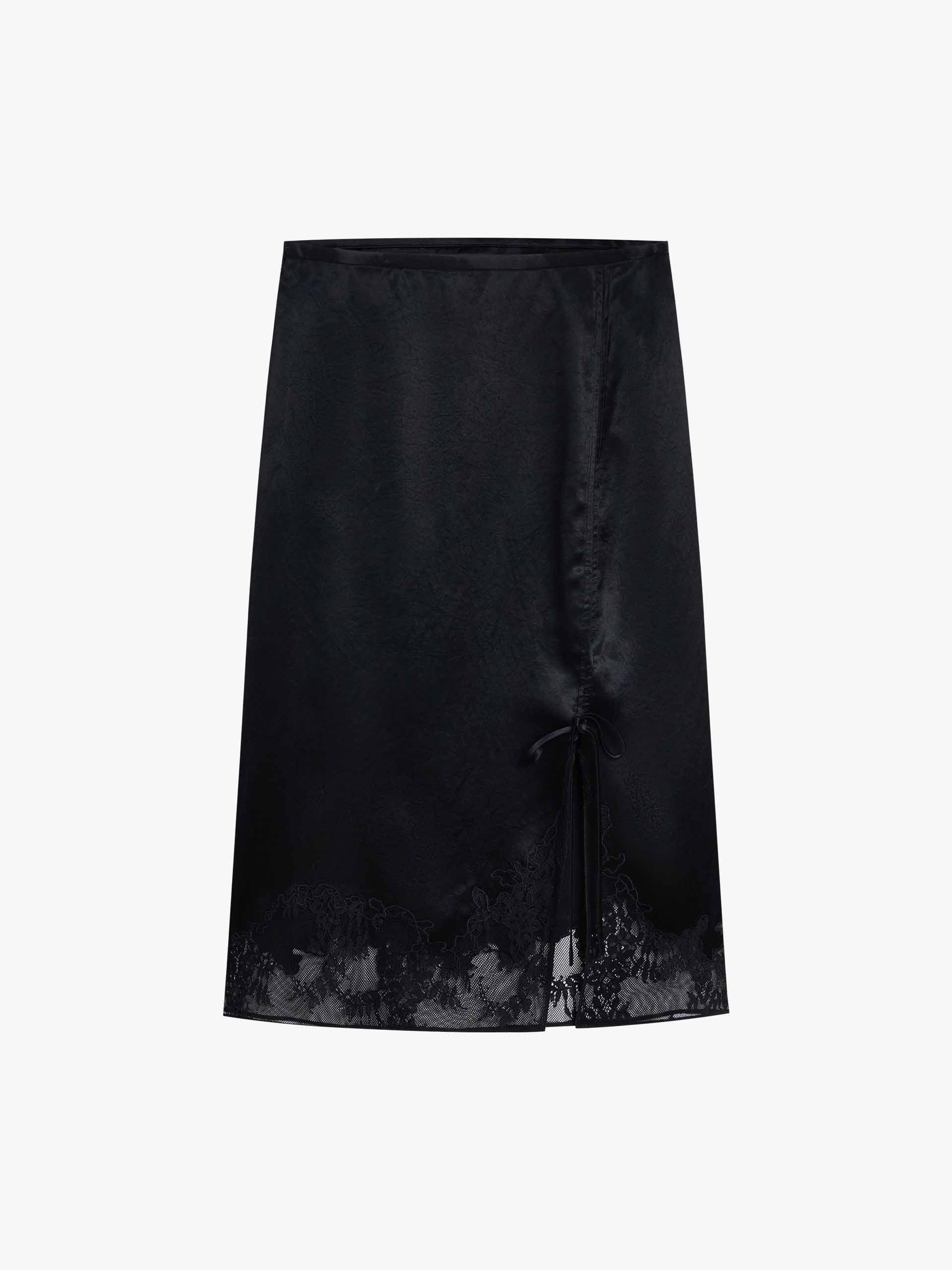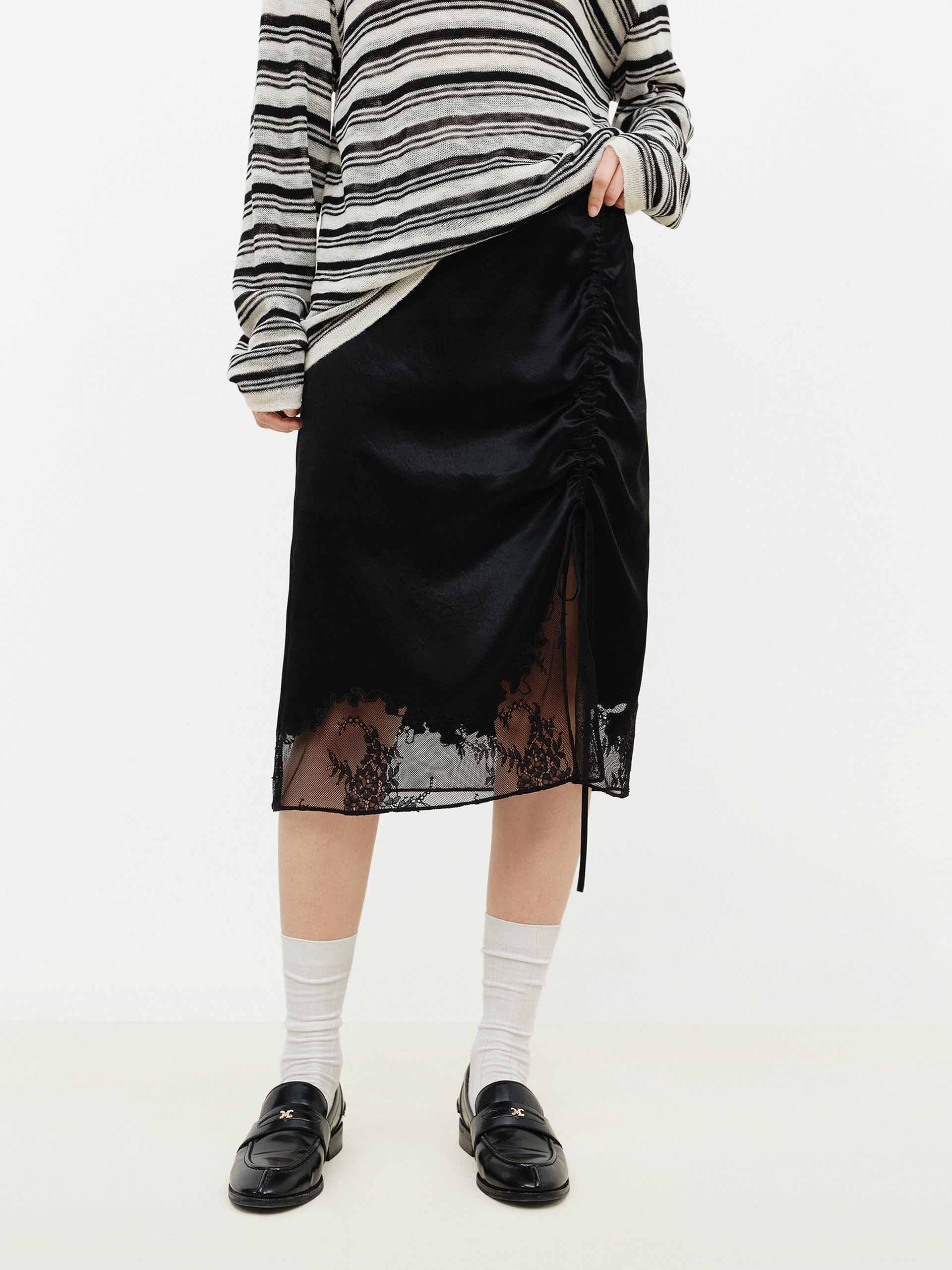 Lace Hem Satin Midi Skirt