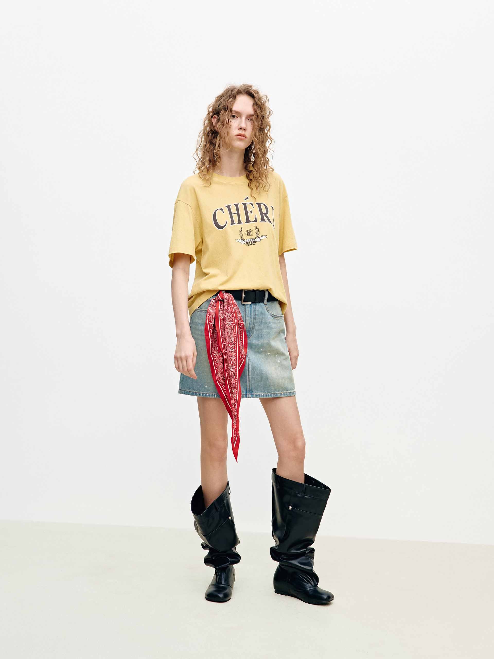 Letter Printed Faded T-shirt