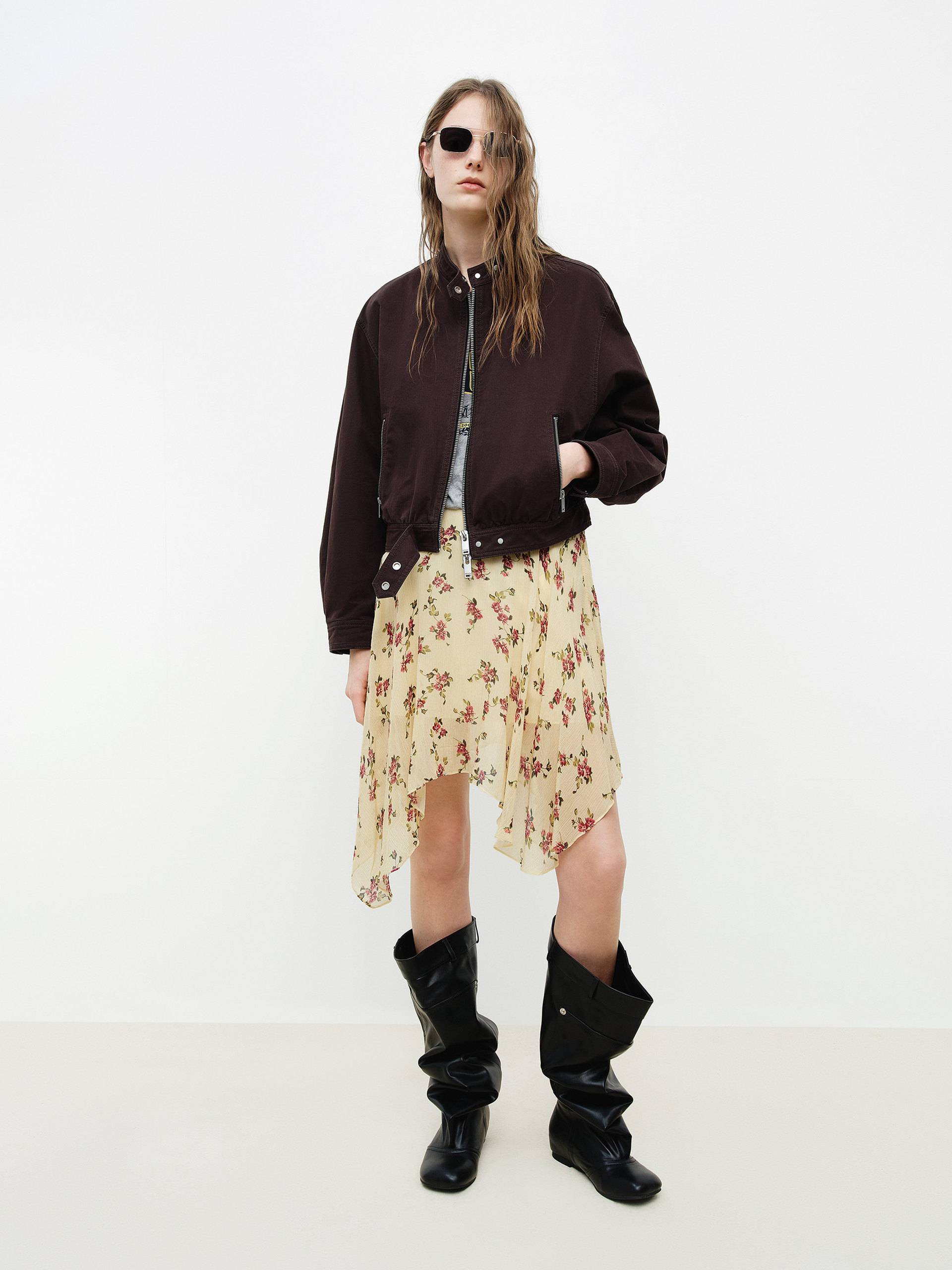 Asymmetrical Hem Floral Skirt