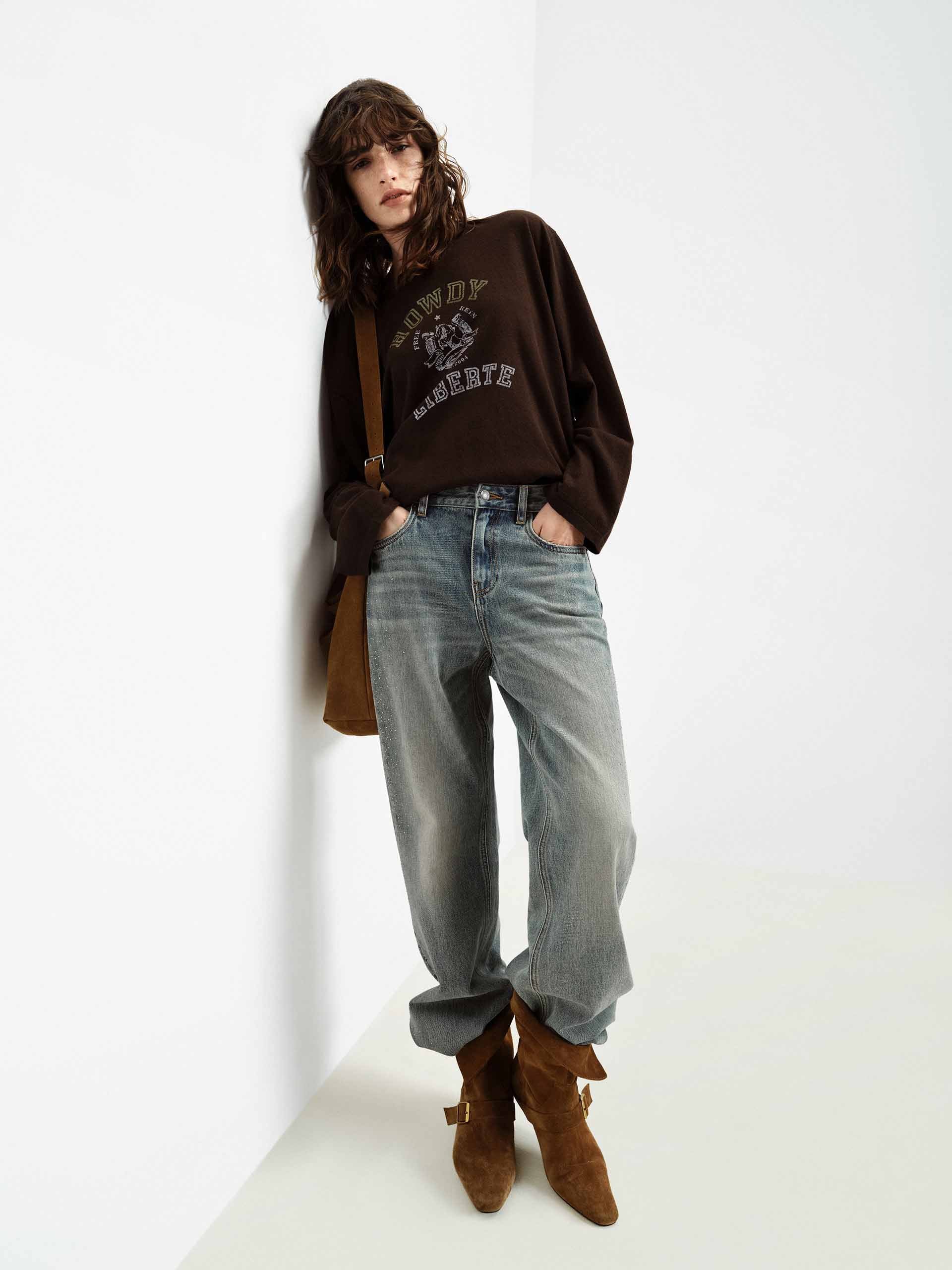 Cotton Rhinestone Detail T-shirt