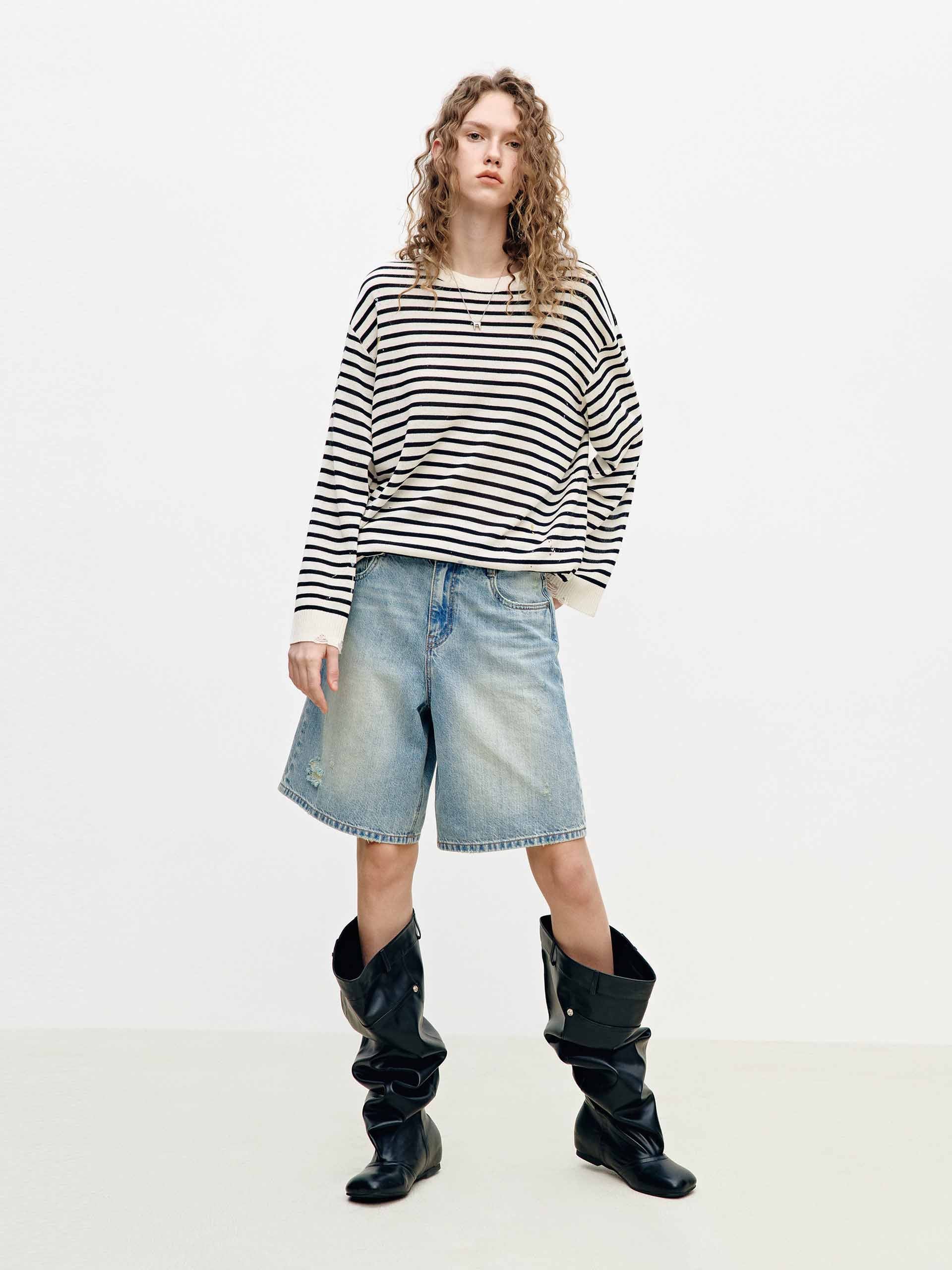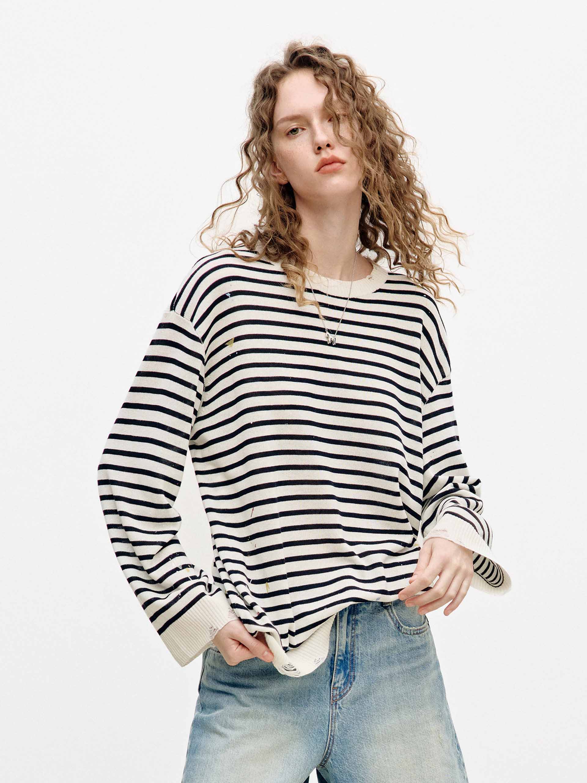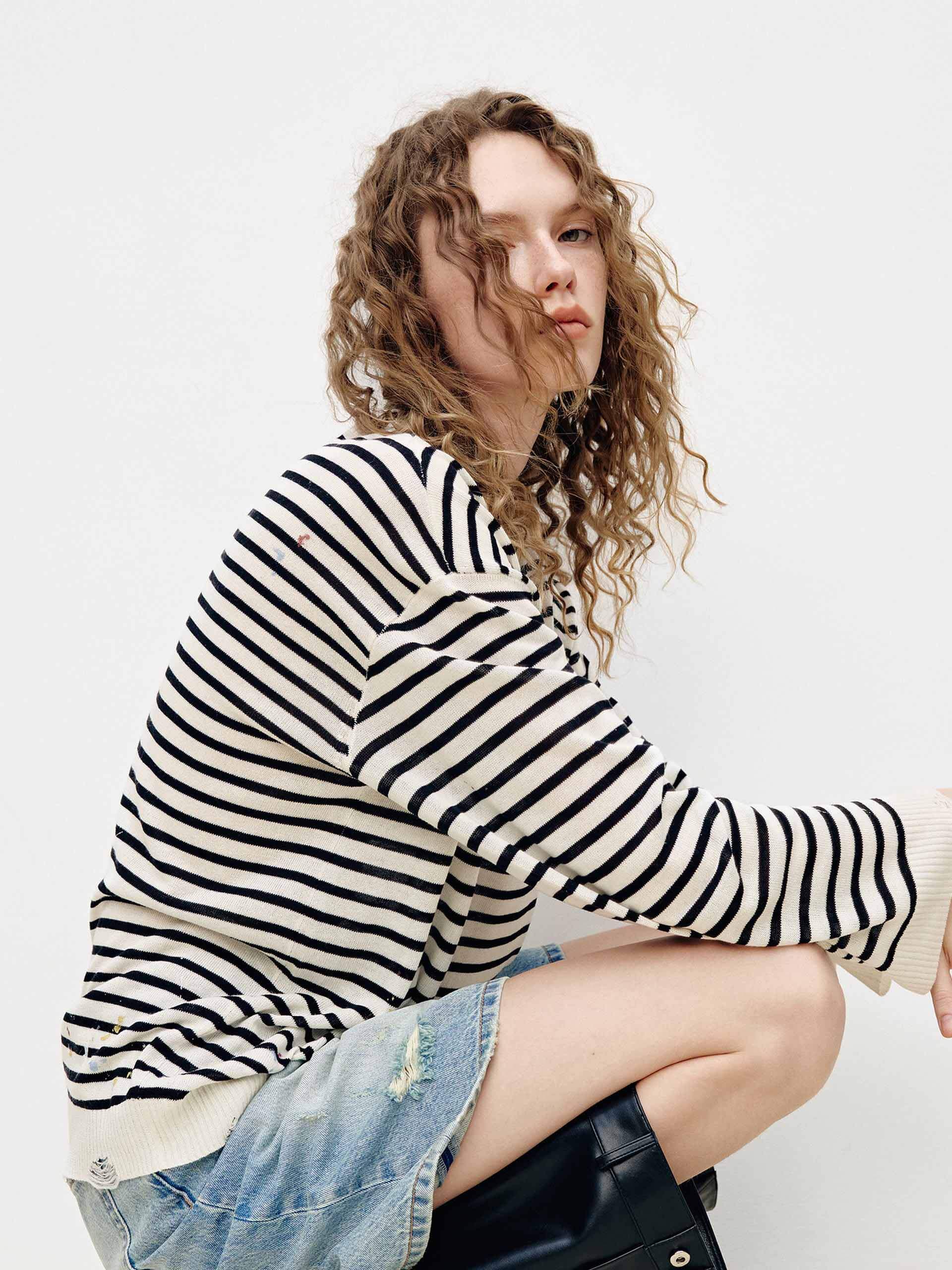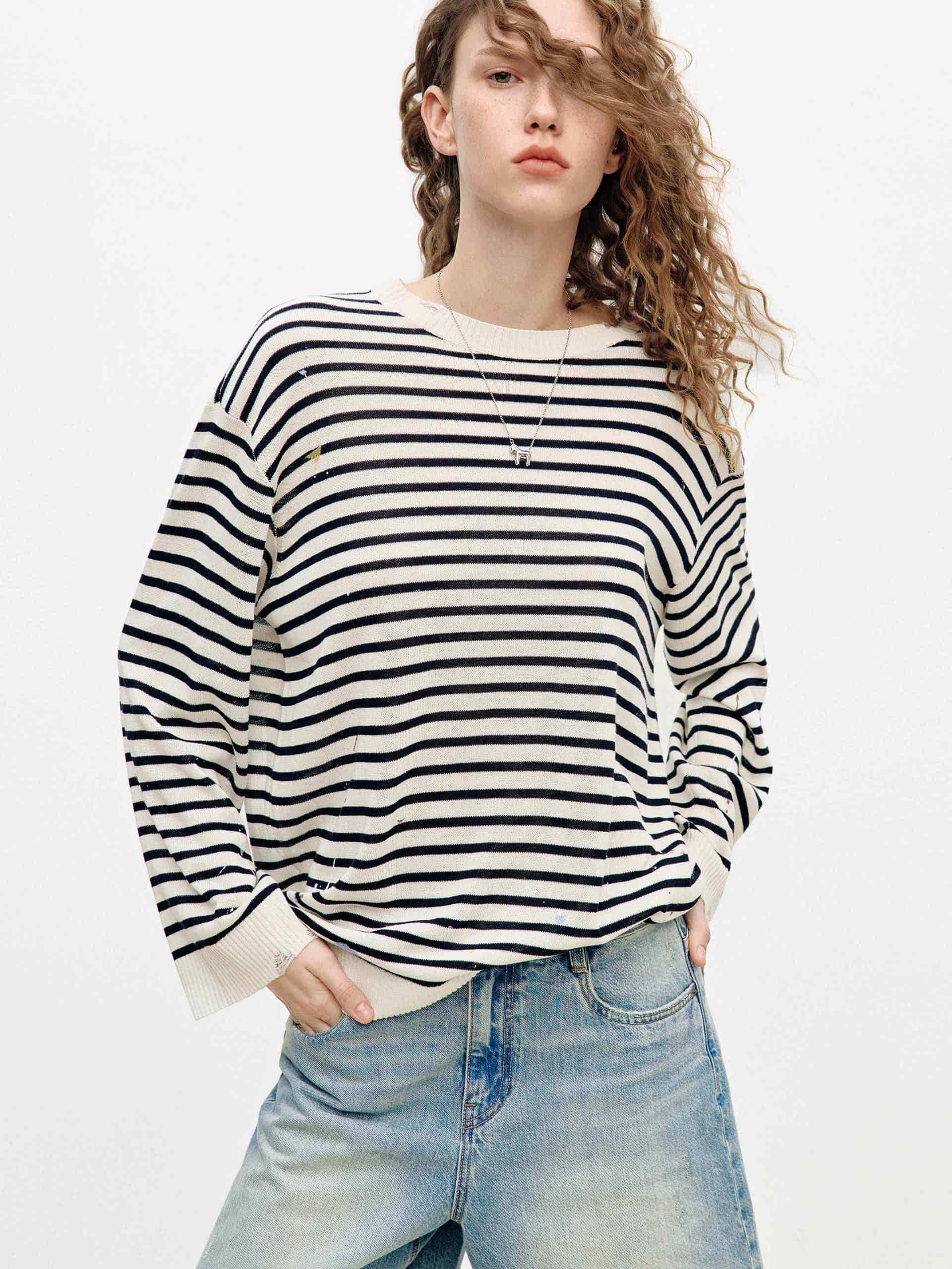 Splatter Detail Striped Knit Top