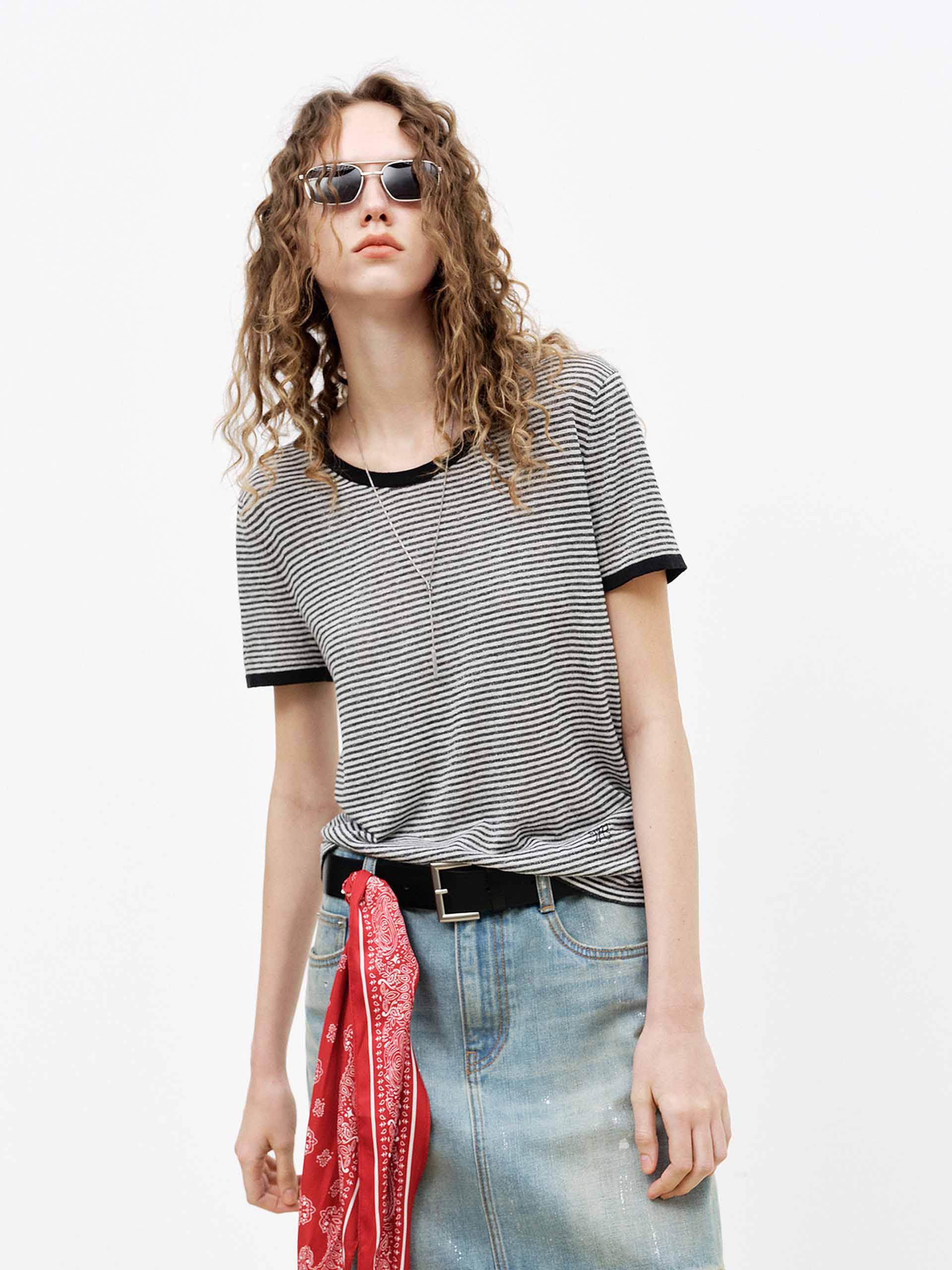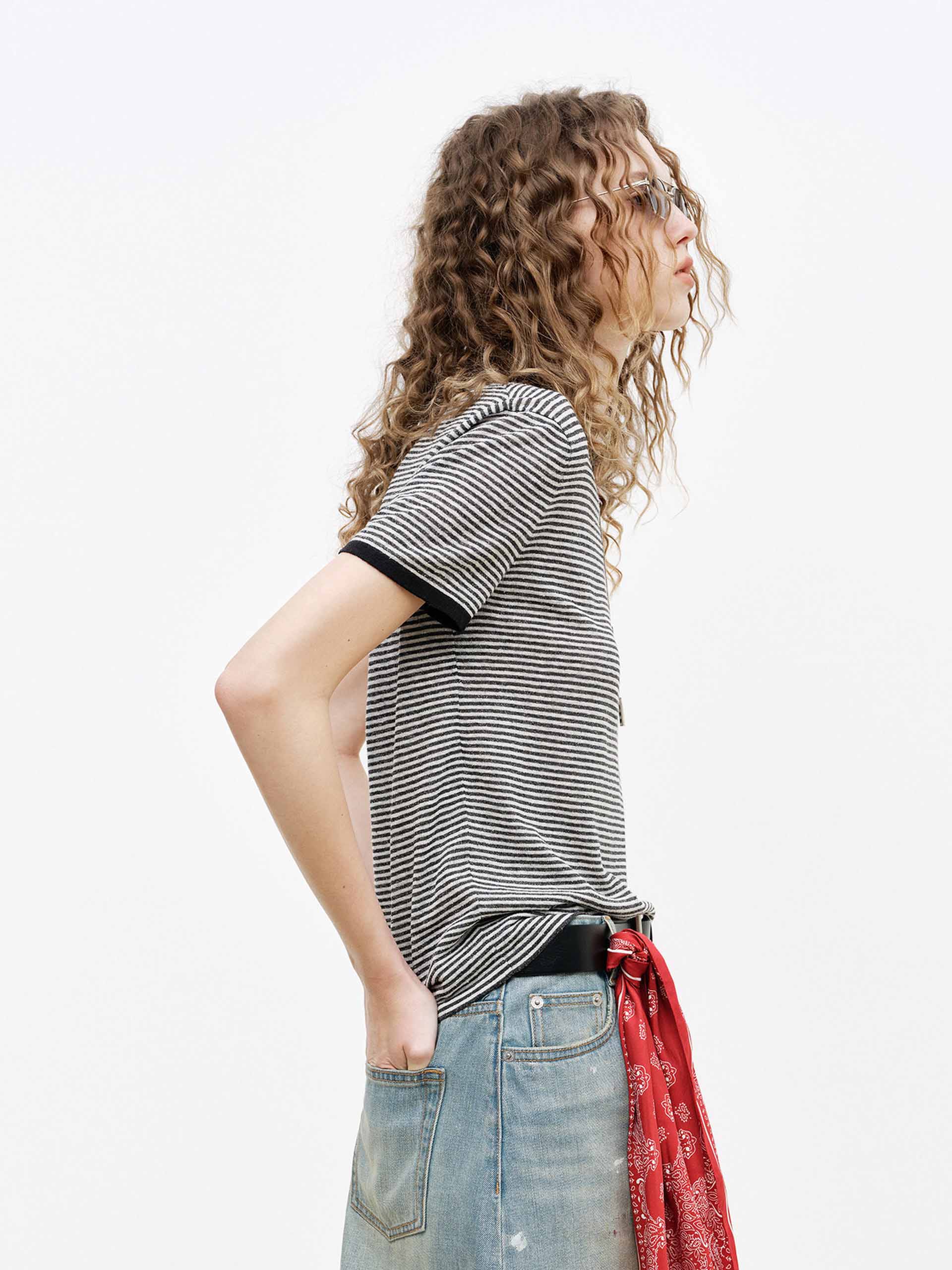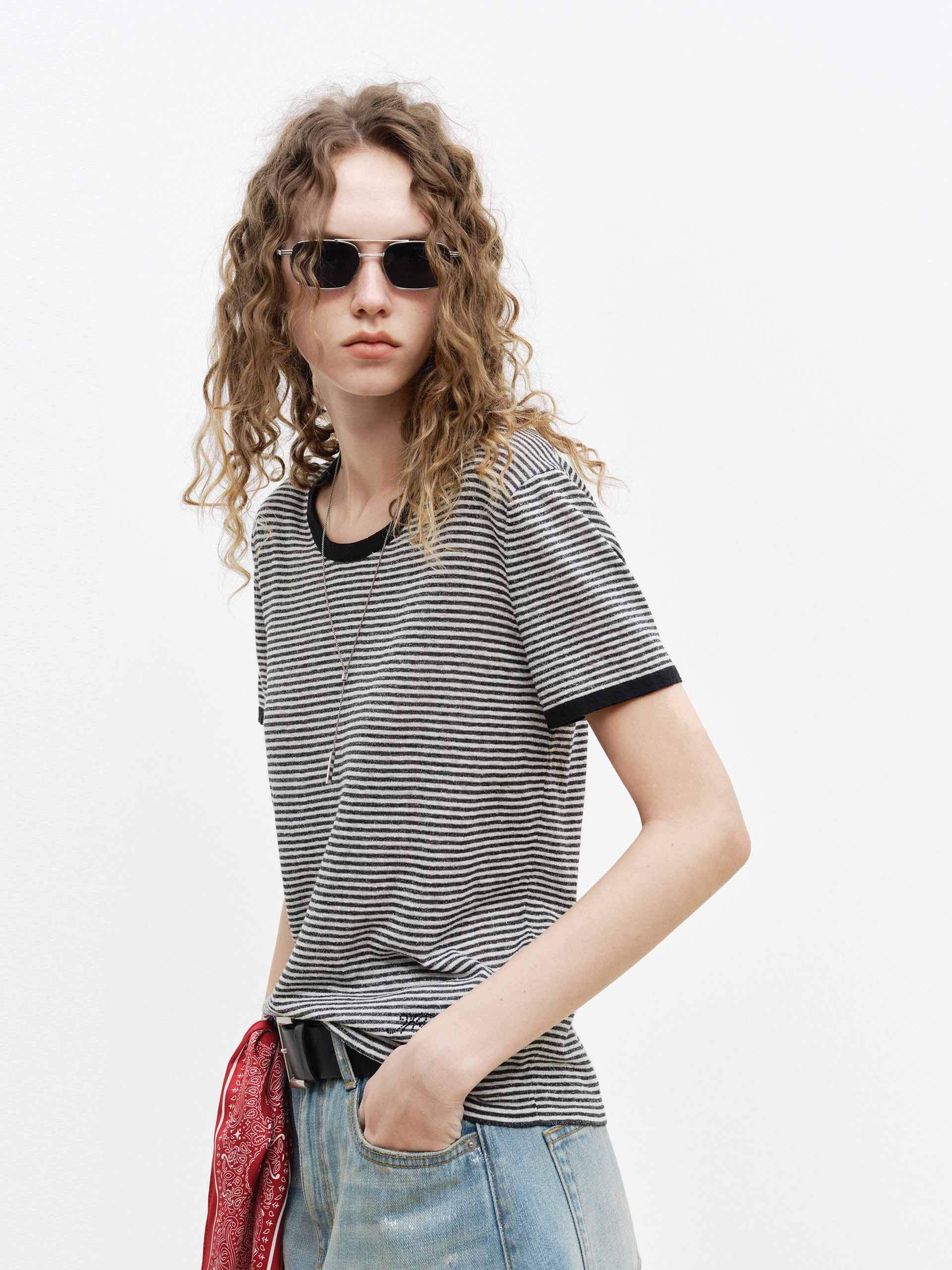 Contrast Detail Striped Top
