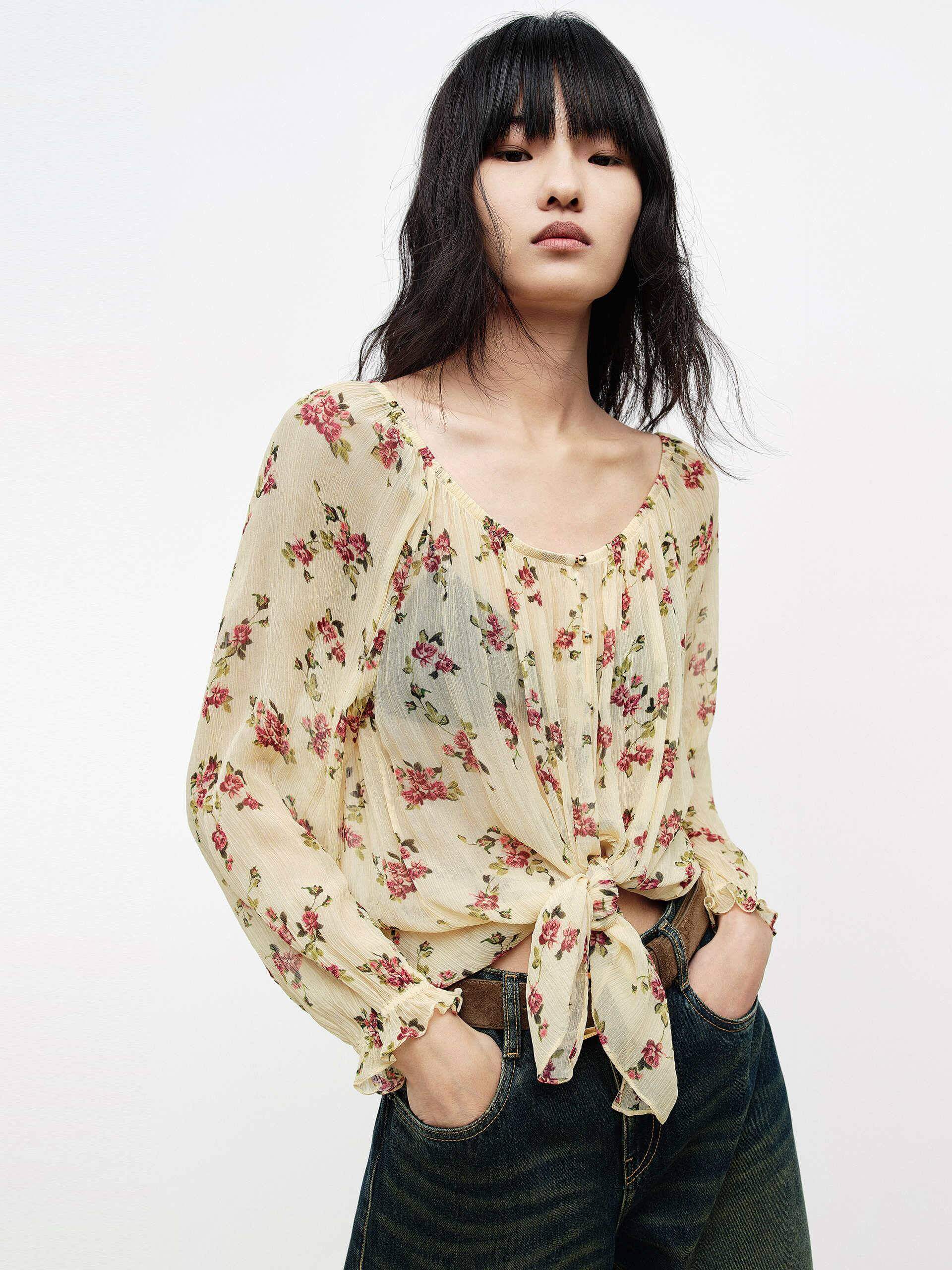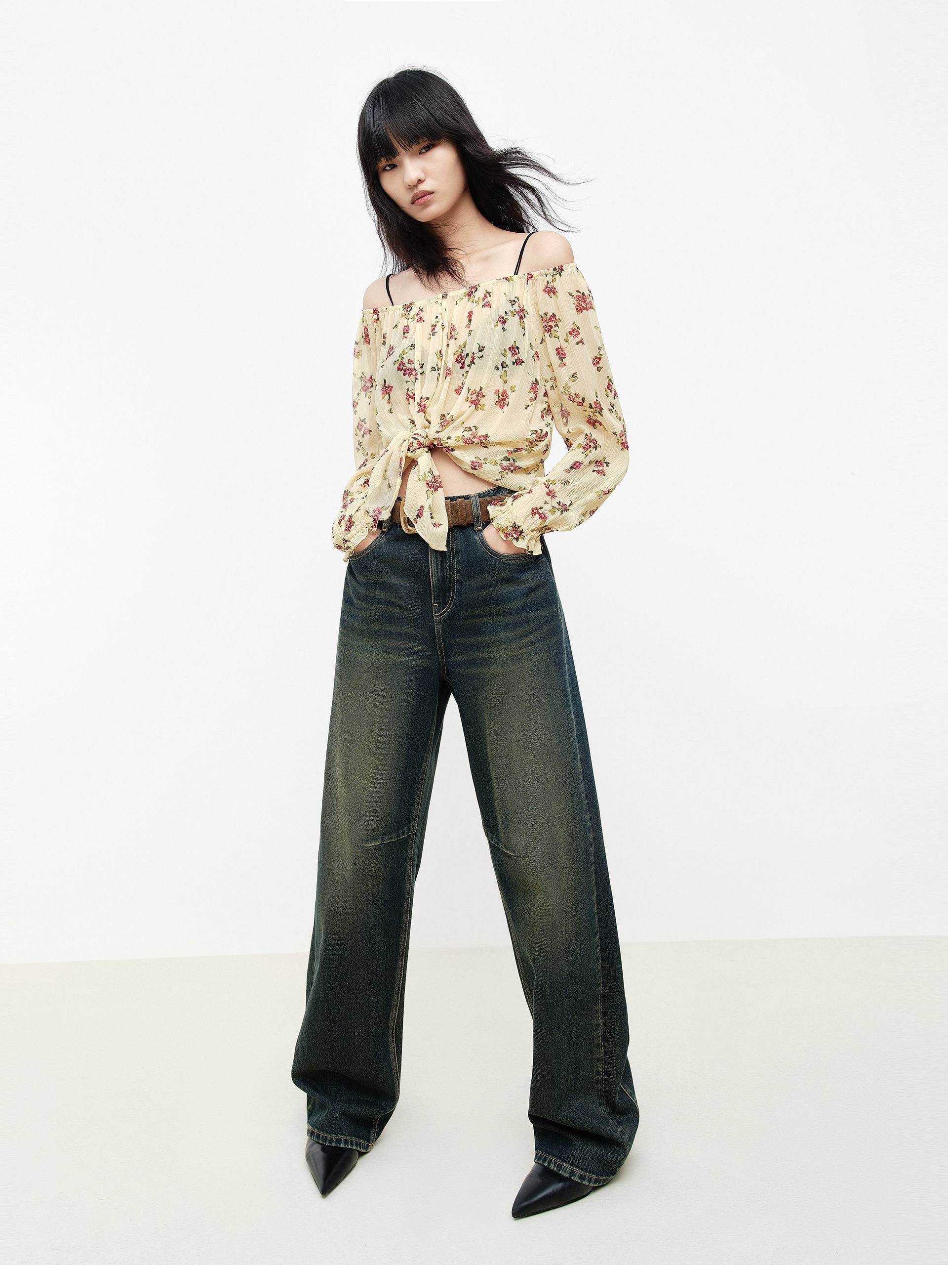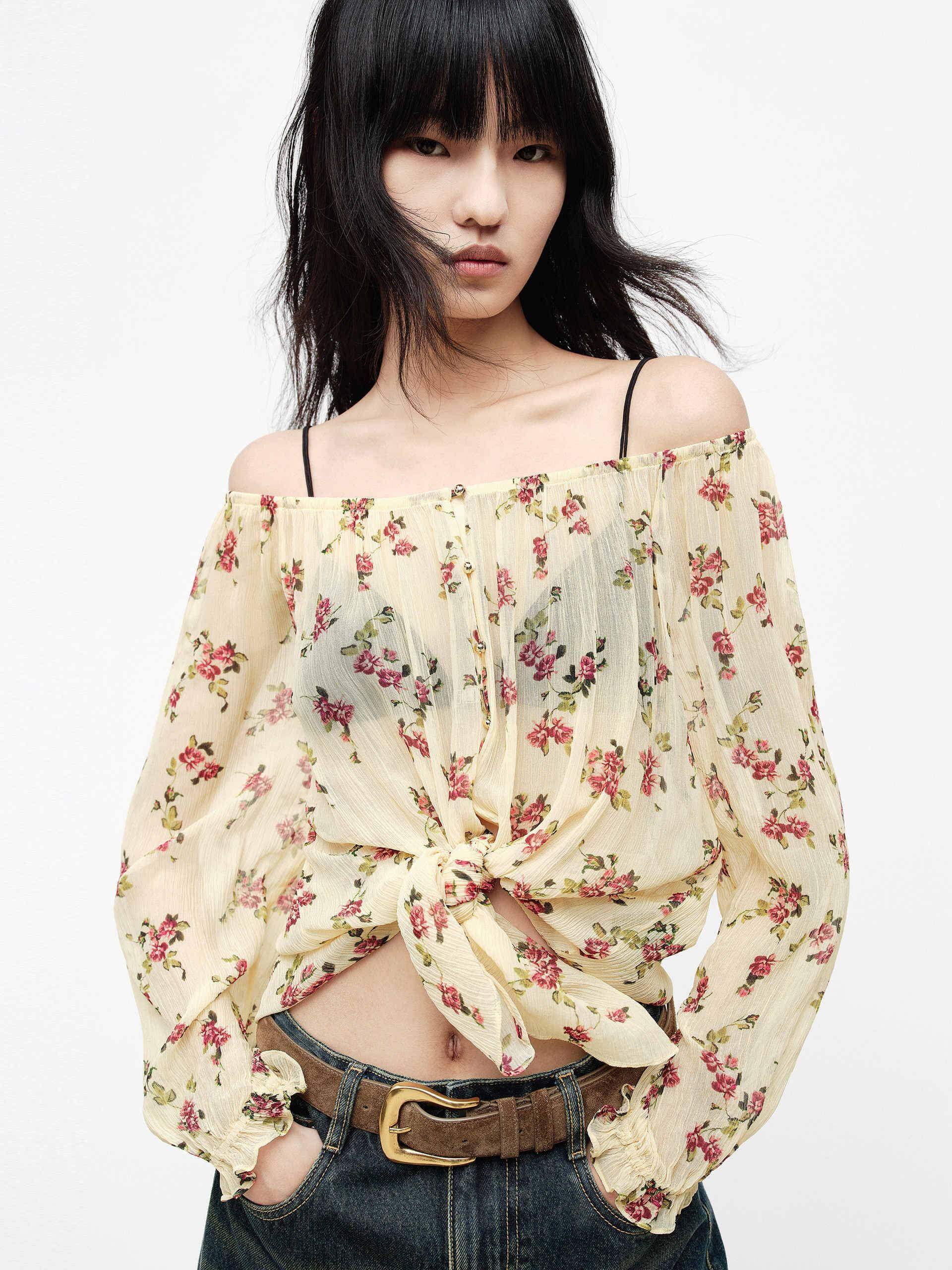 Off-shoulder Floral Blouse