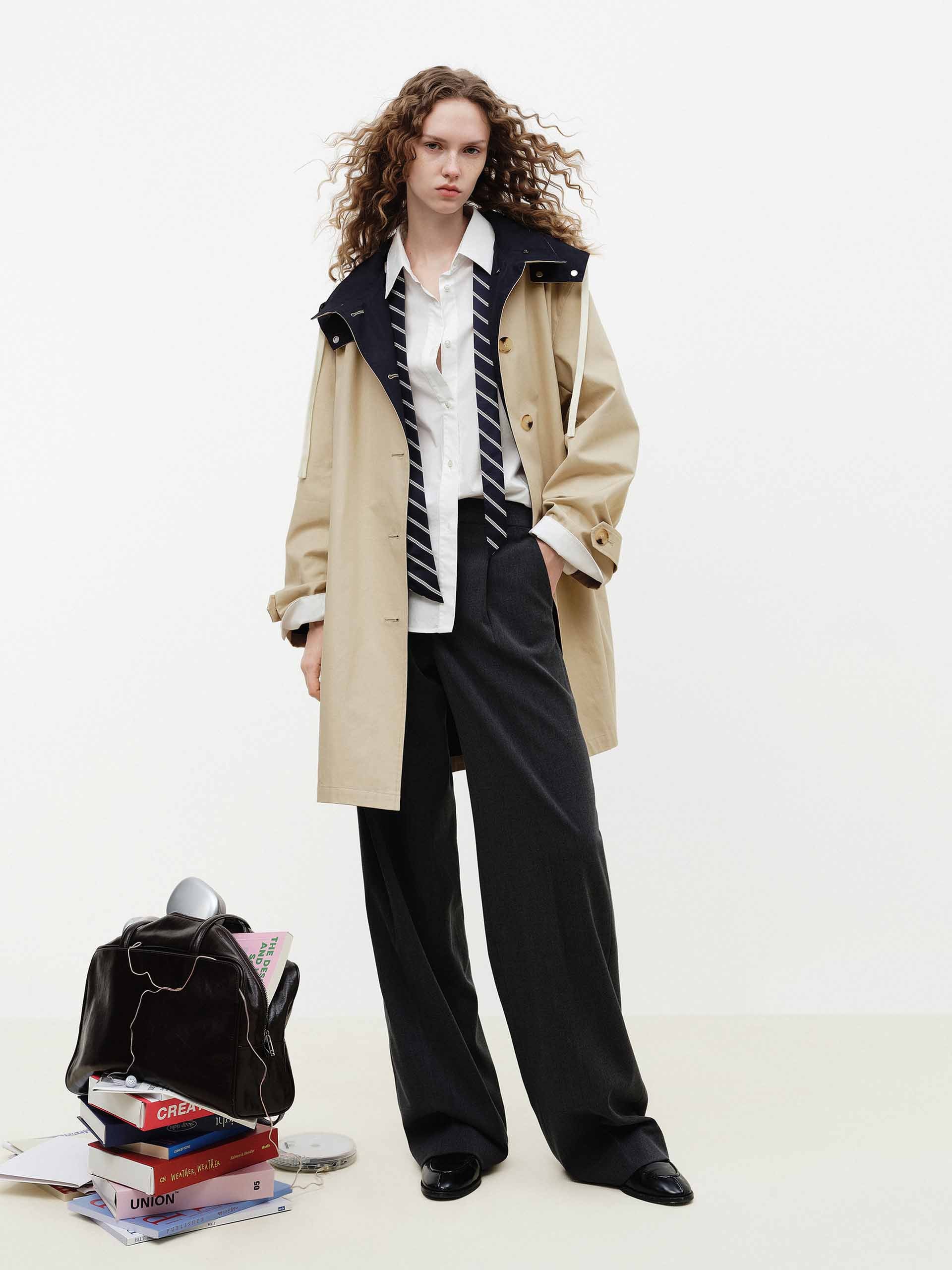 Contrast Detail Hood Trench Coat