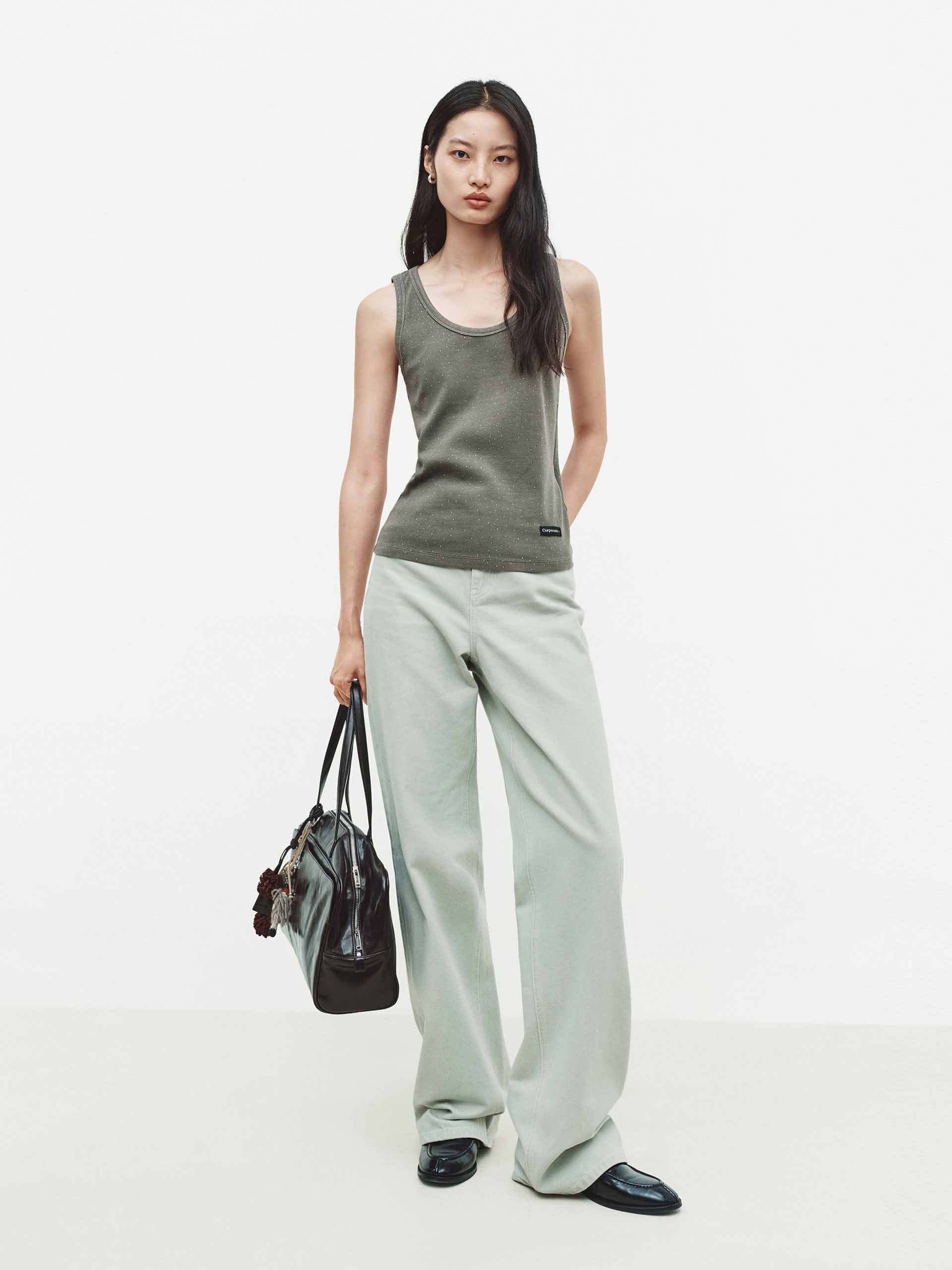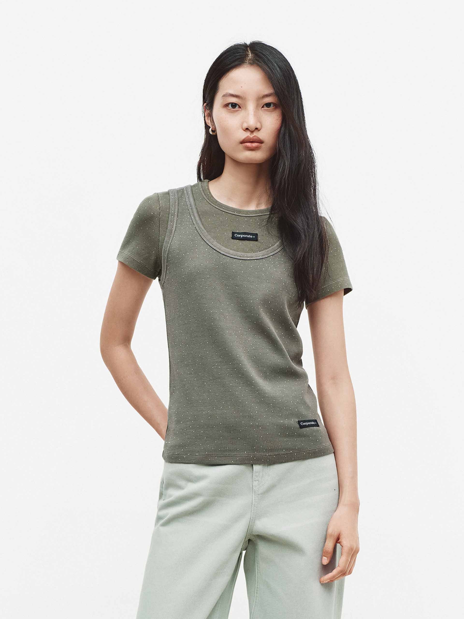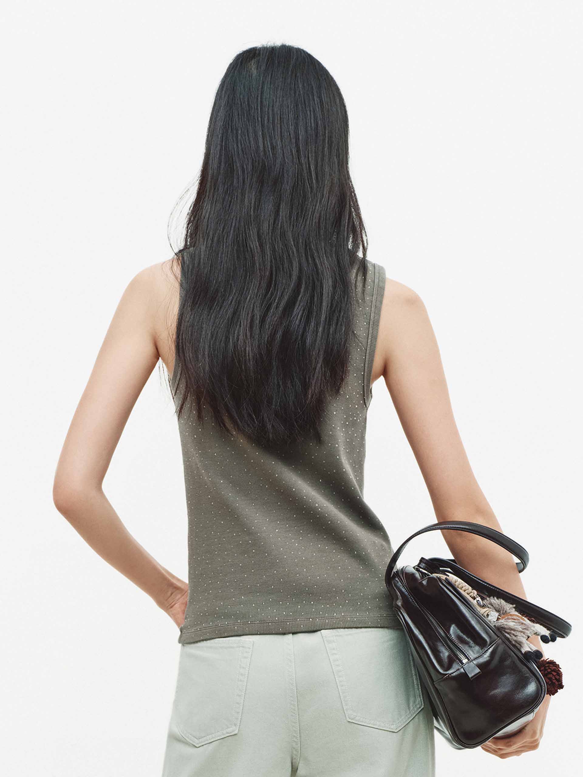 Rhinestone U-neck Tank