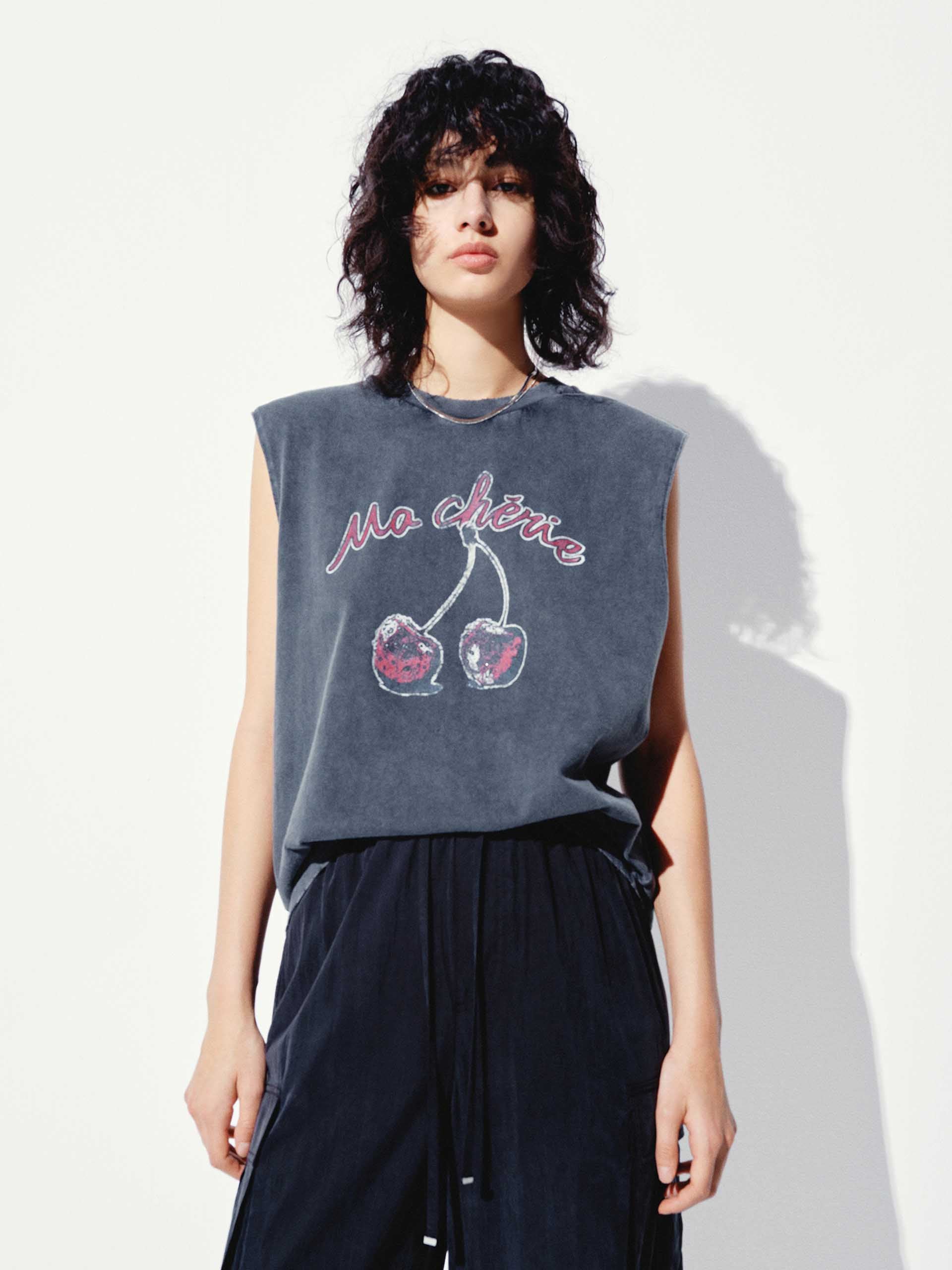 MO&Co. Women's Cherry Sleeveless Cotton T-shirt